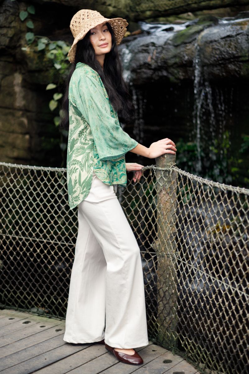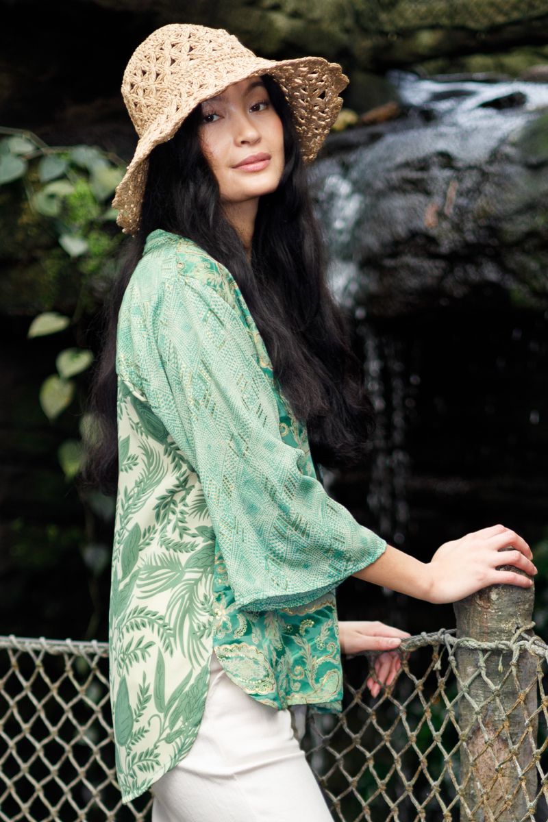 Luna Flared Sleeve Blouse | Floral Green Mix