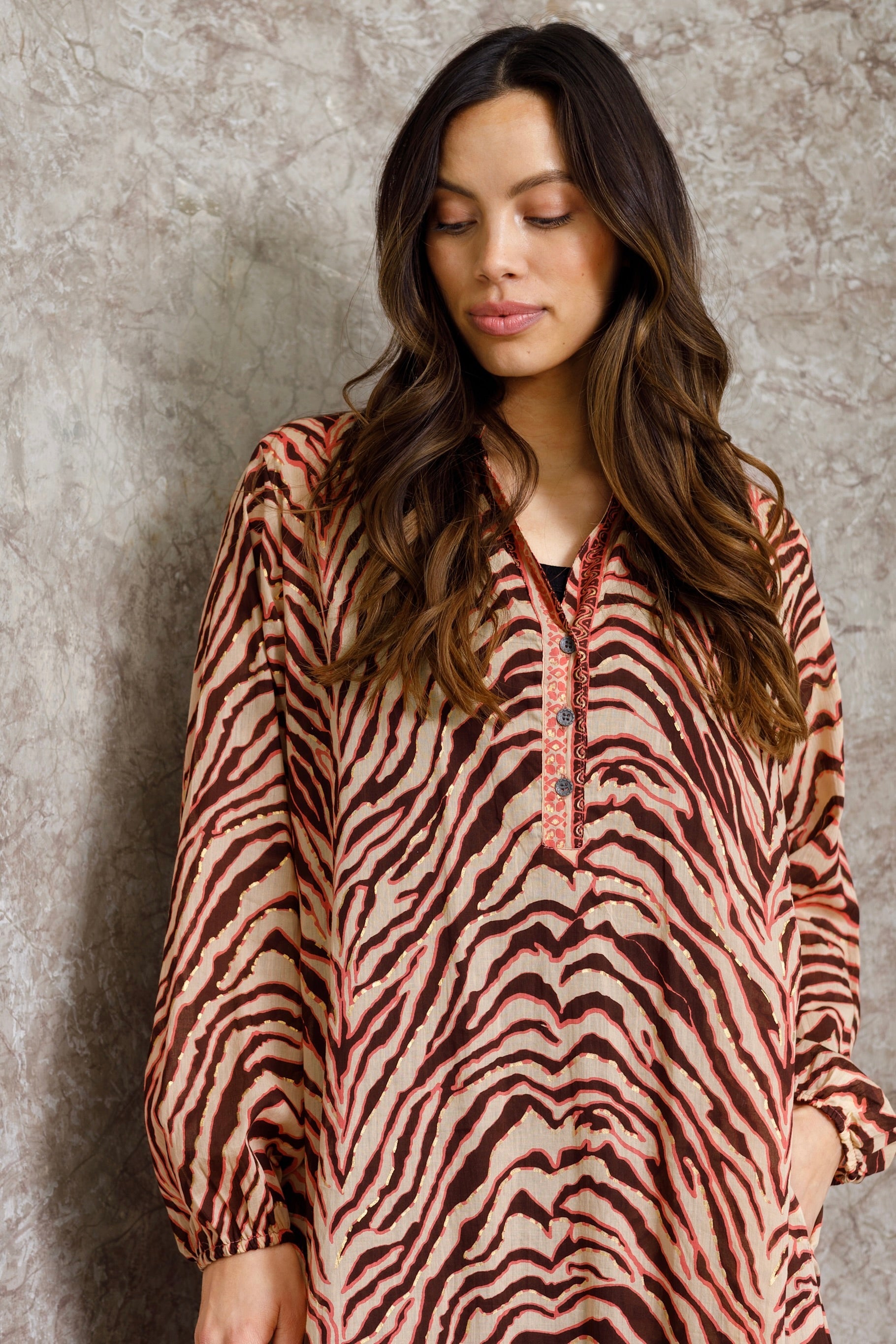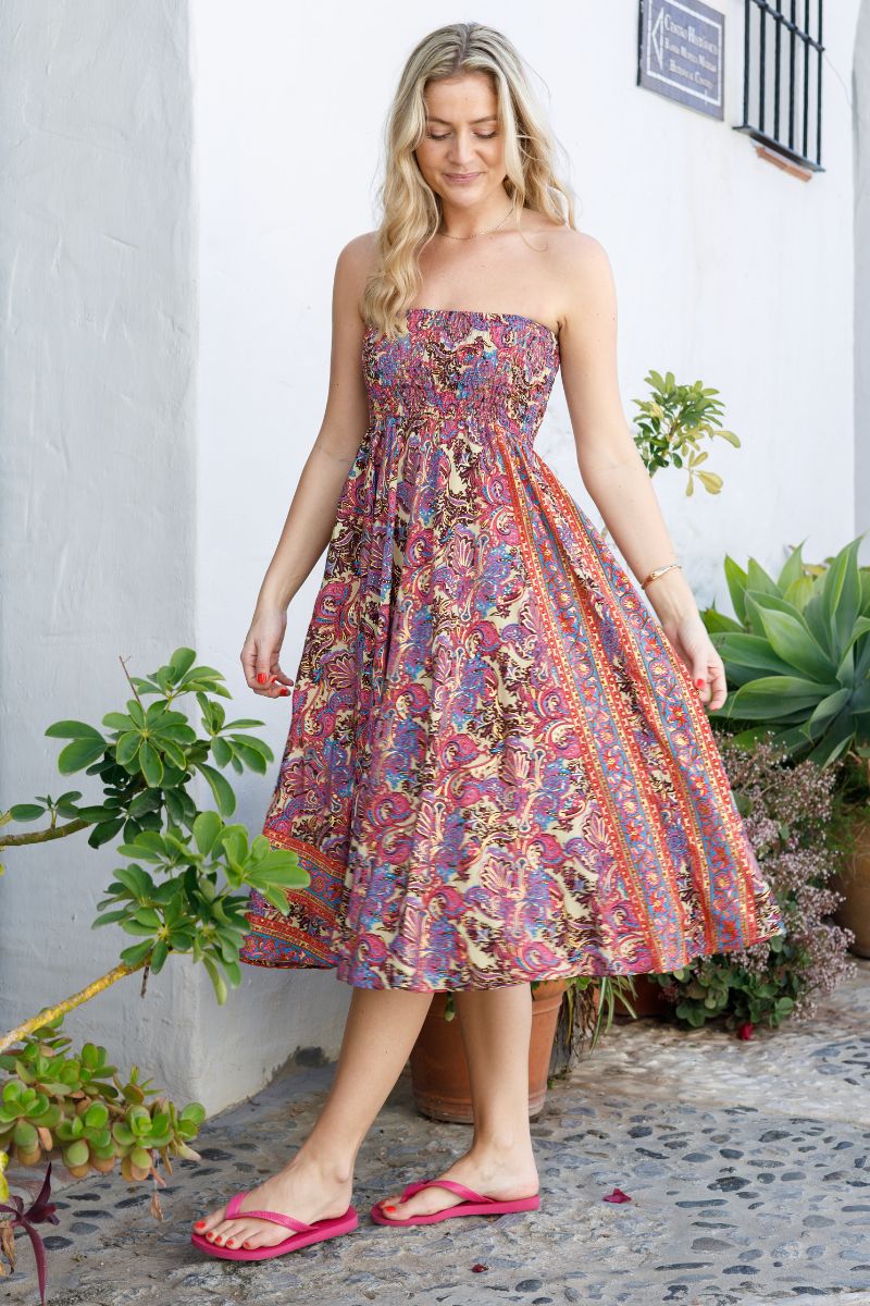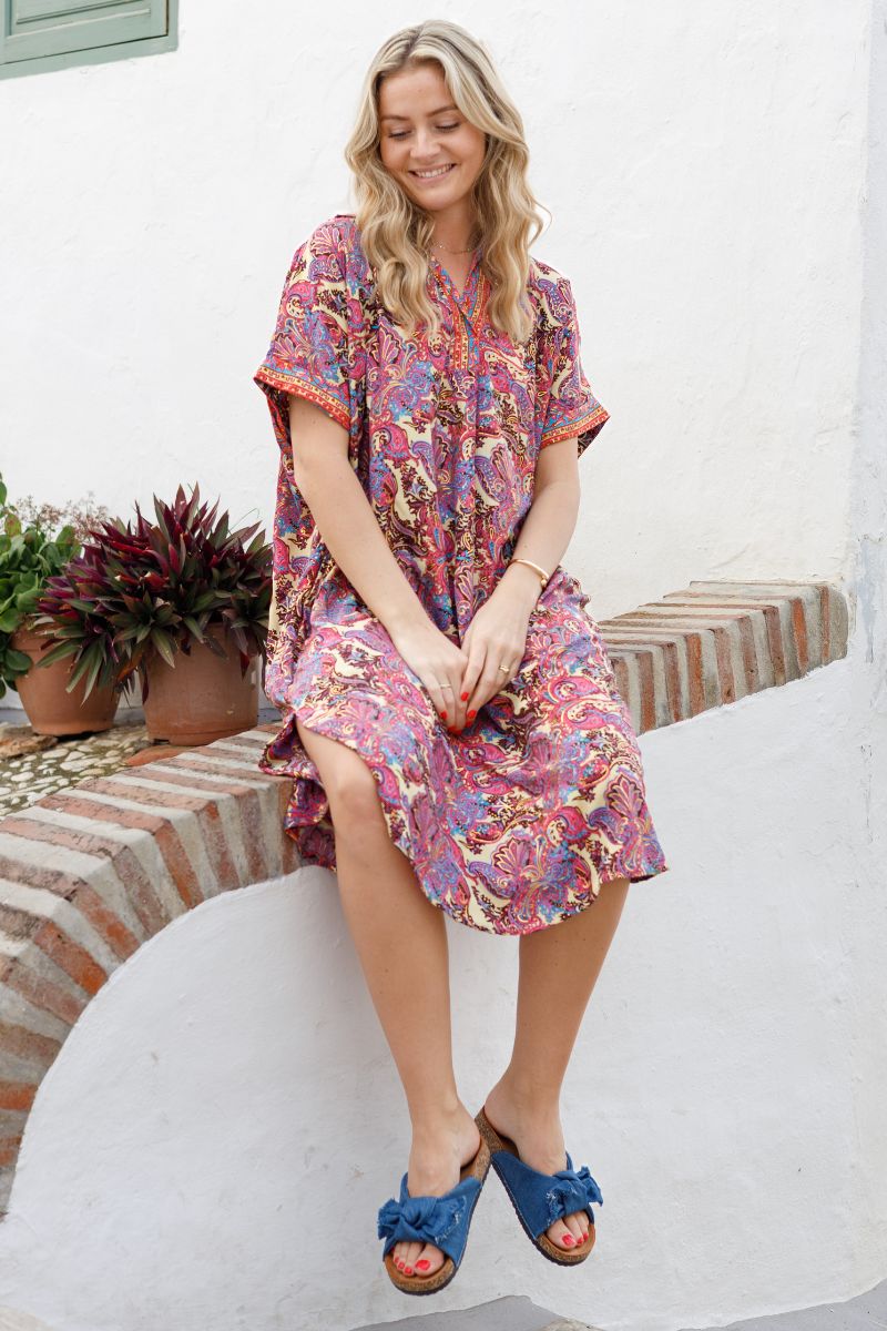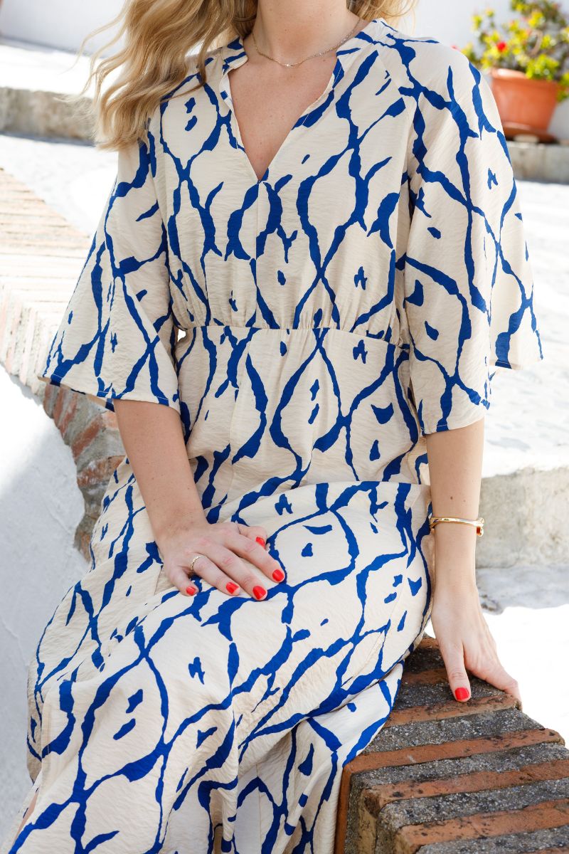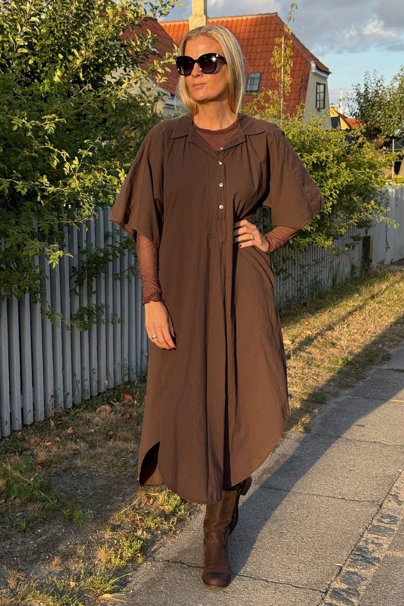 - Luna Long V-Neck Dress i Sahara Moon: En lang kjole, der passer perfekt til både hverdagsbrug og festlige lejligheder.