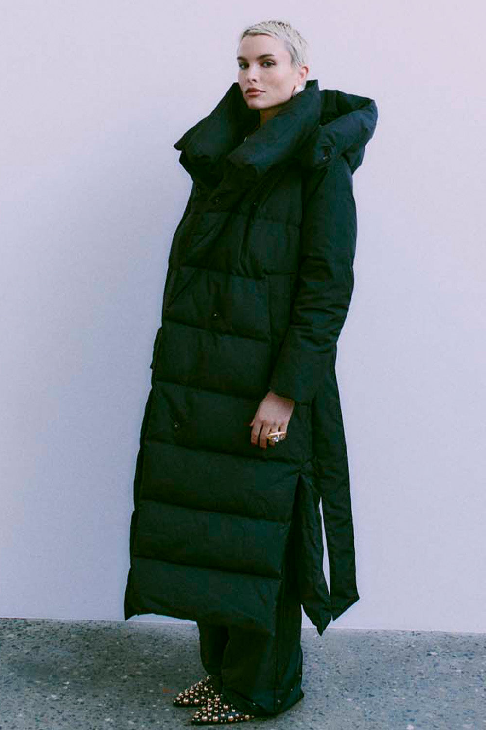 - Kombinér en oversized frakke med en tætsiddende nederdel for et modigt og kontrastfyldt look.