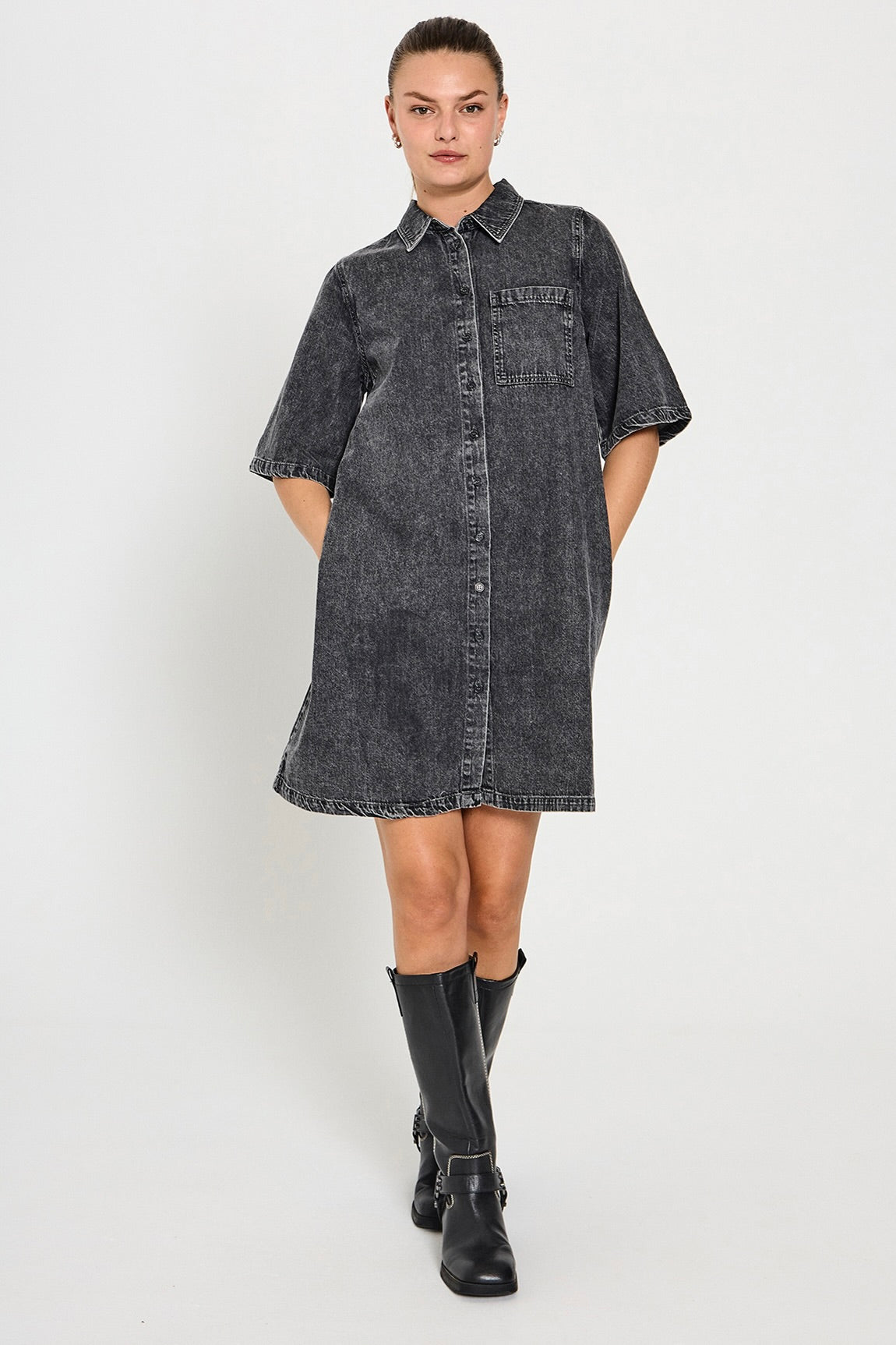 - Festlookét: Skal du til en fest eller et middagsselskab, kan du vælge en af Freequents elegante kjoler, som har et feminint og stilrent design. Kombiner kjolen med en flot cardigan eller en skindjakke for at tilføje et lag, der skaber dimension til dit outfit. For et mere sofistikeret look kan du tilføje statement-smykker som store øreringe eller et iøjnefaldende armbånd. Hæle og en lille clutch fuldender looket, og du er klar til enhver festlig lejlighed.