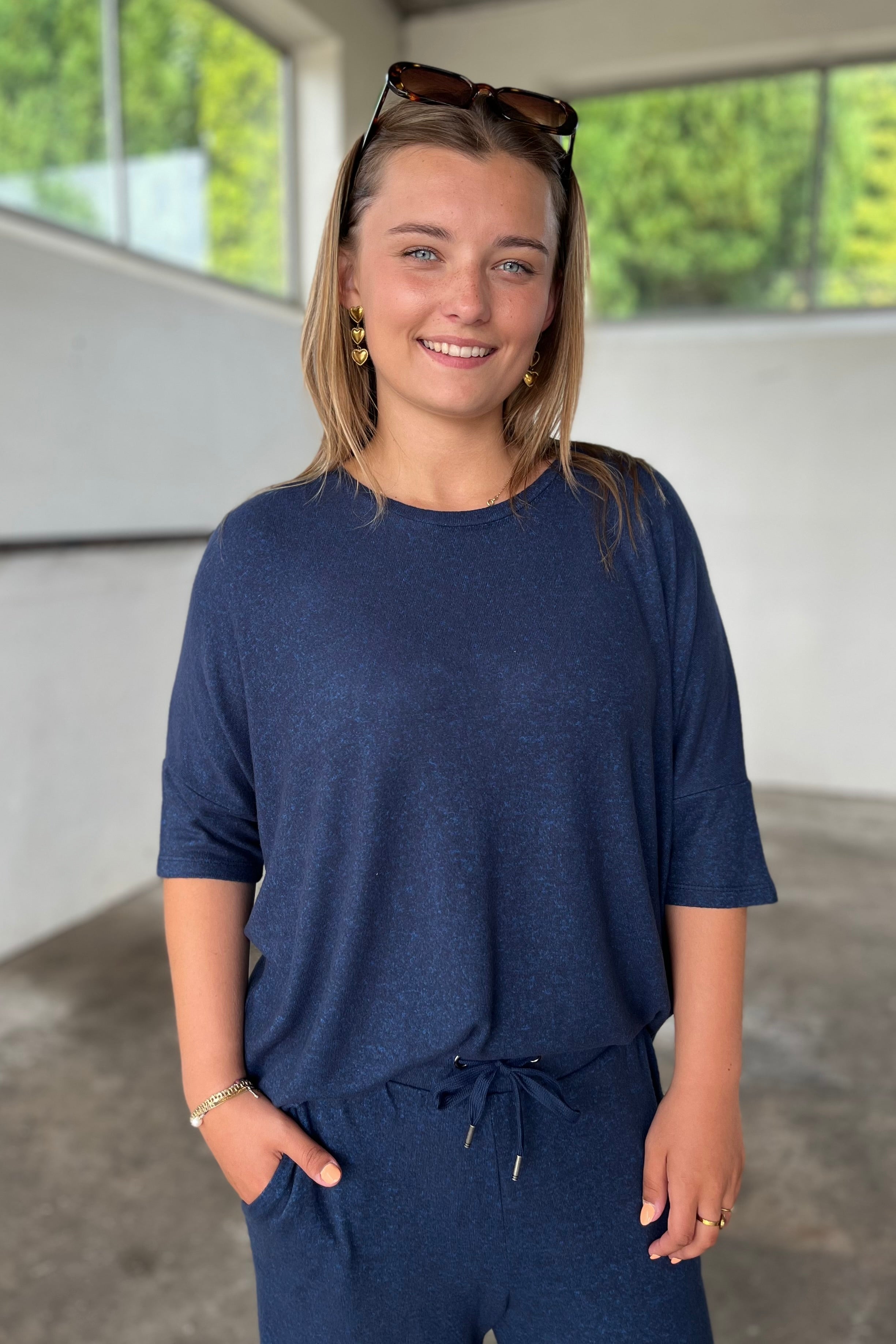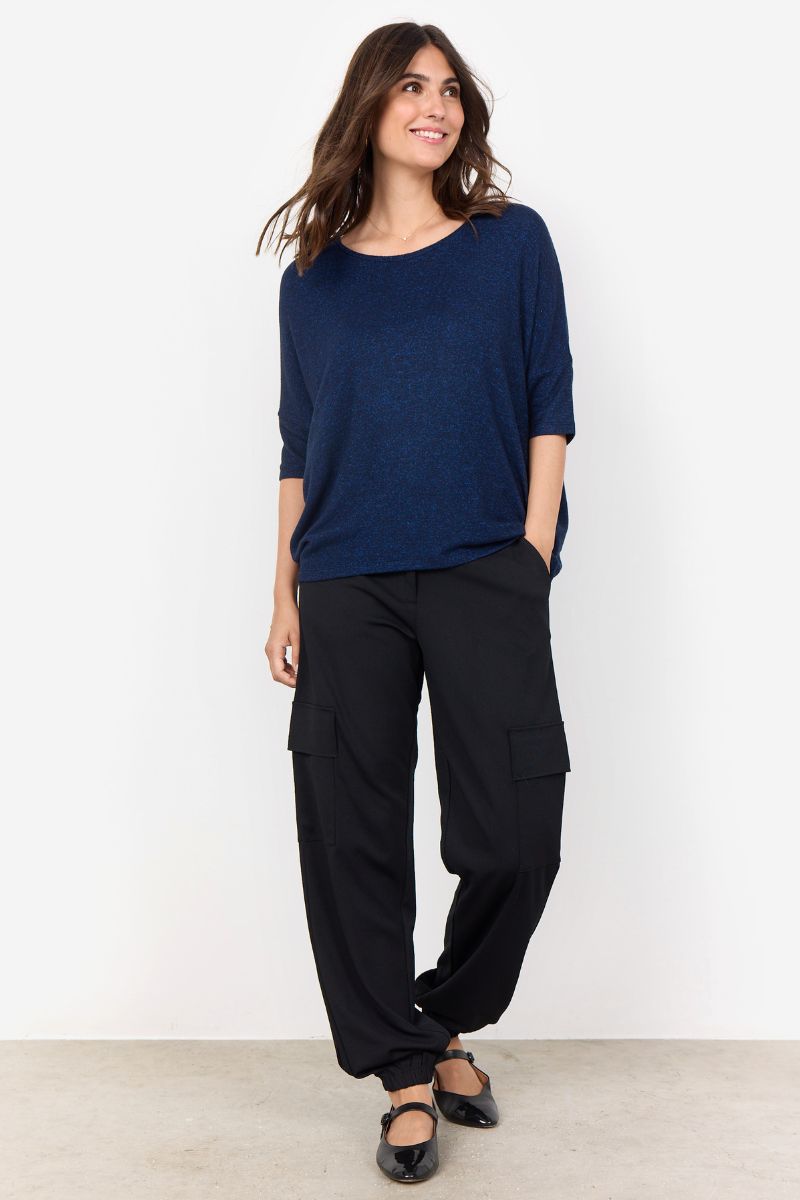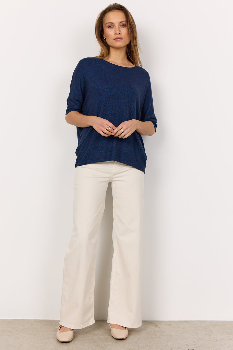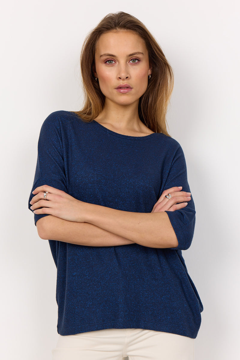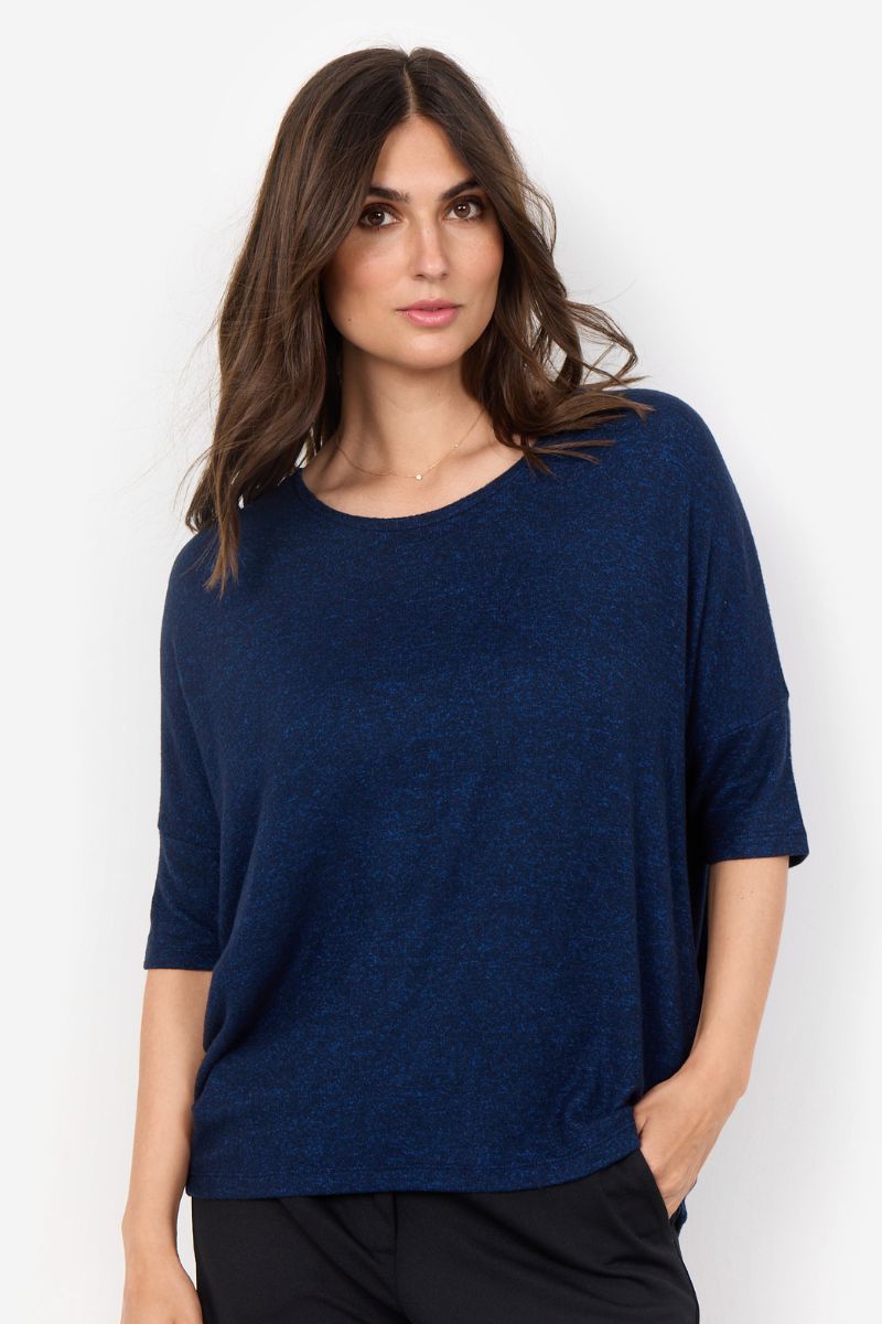 Lora Ss Blouse | Navy Melange
