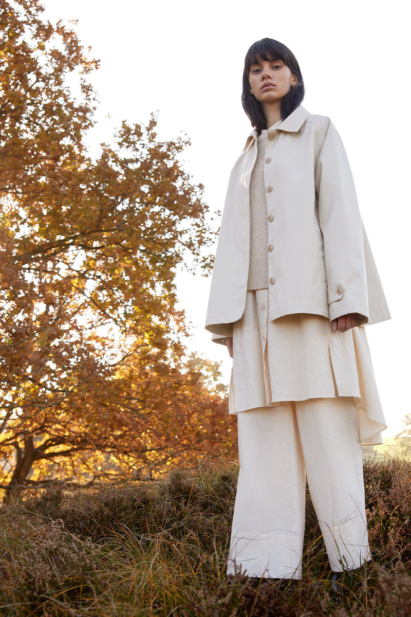 Ilse Jacobsens jakker og frakker er kendetegnet ved deres nøje udvalgte materialer, som både beskytter mod elementerne og sikrer et stilfuldt udseende. De er skabt med tanke på det travle liv i byen, men fungerer lige så godt i naturen eller til rejser. Hver enkelt jakke er designet med detaljer, der gør dem funktionelle i både mildt og barskt vejr.