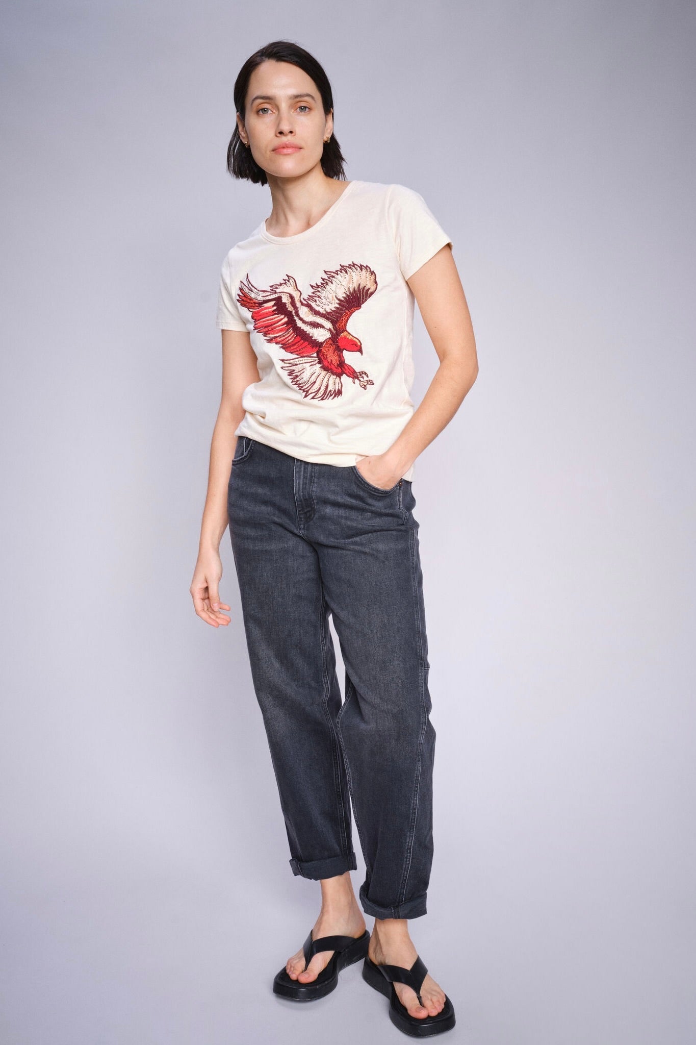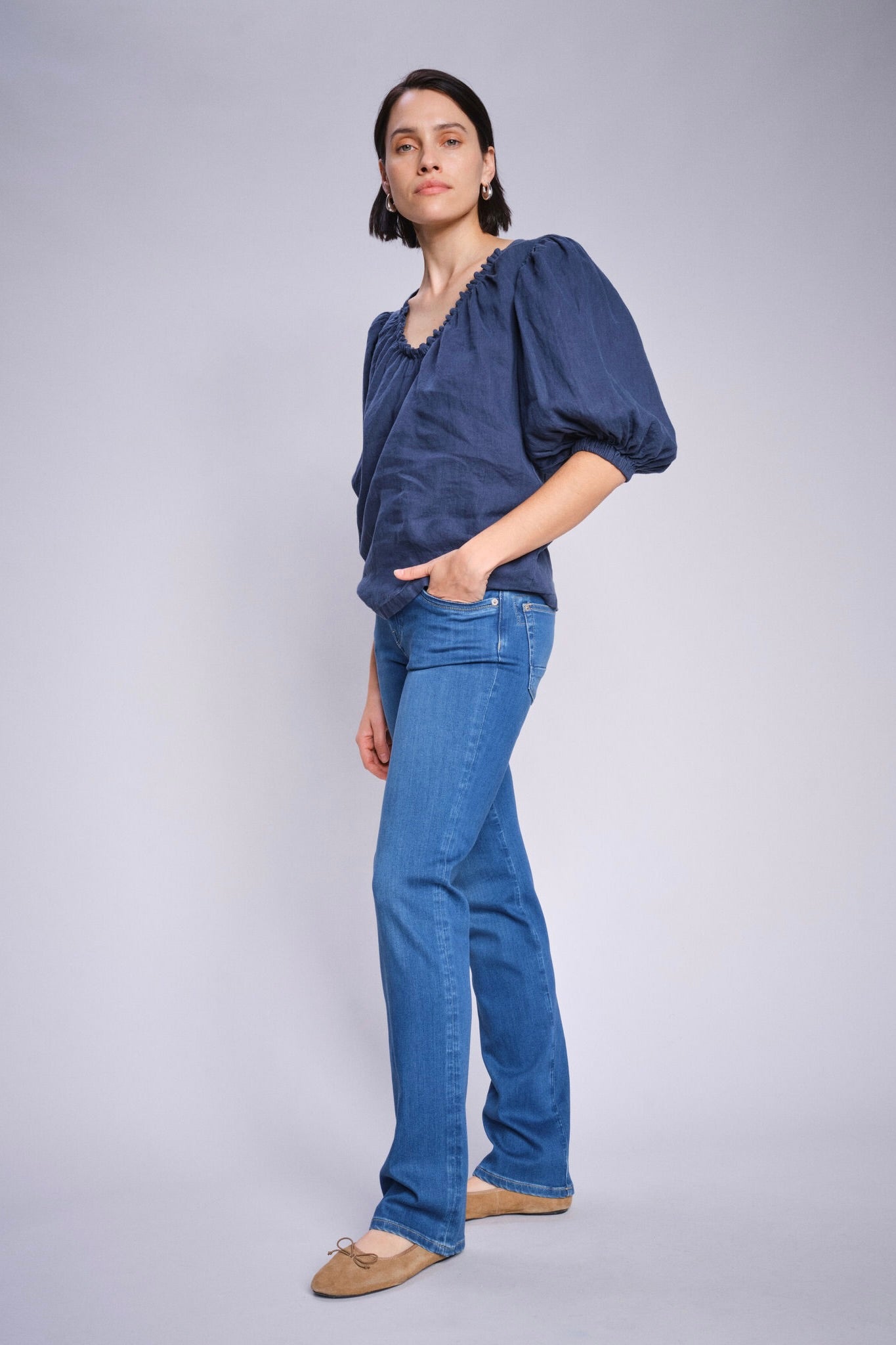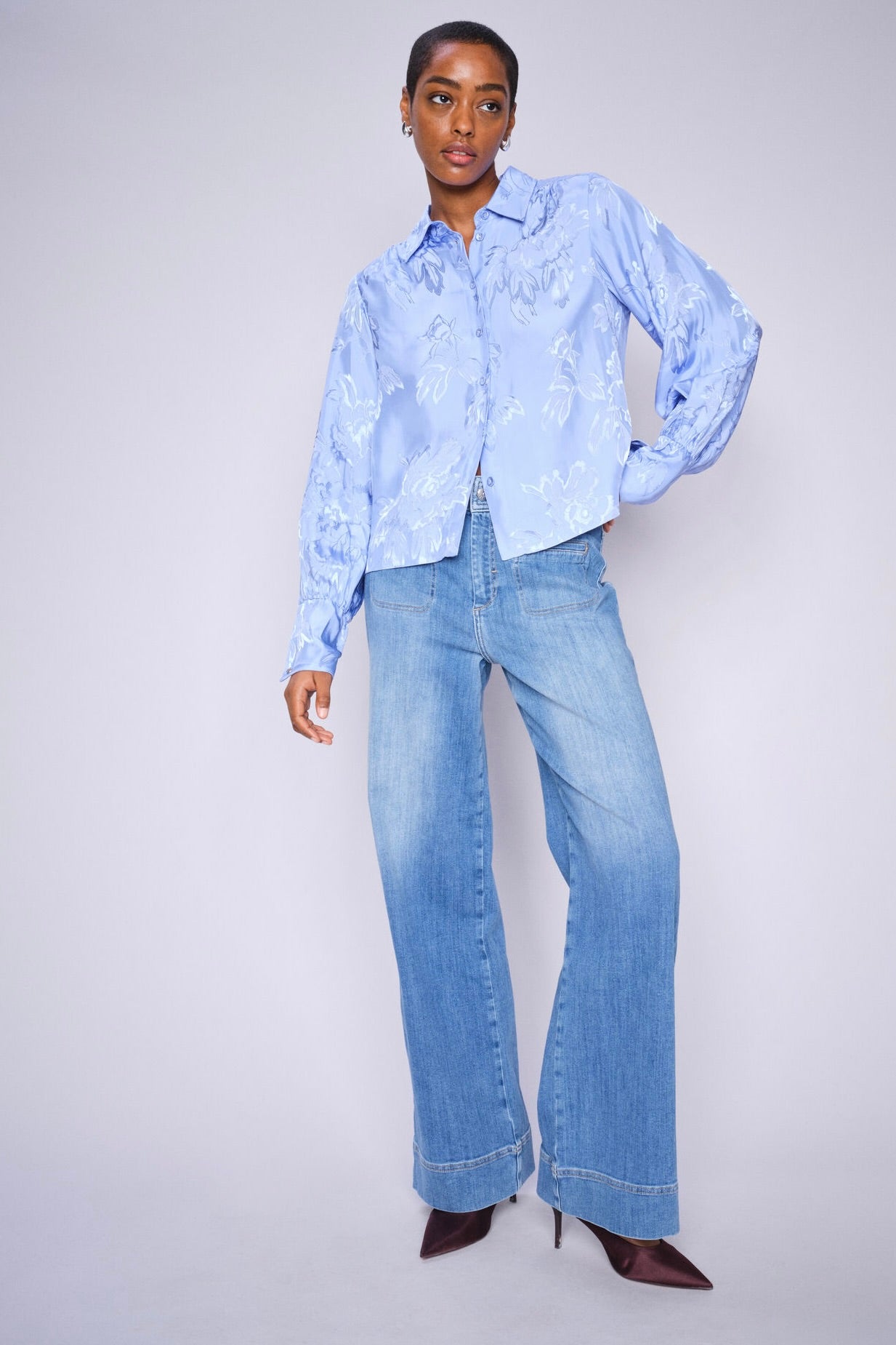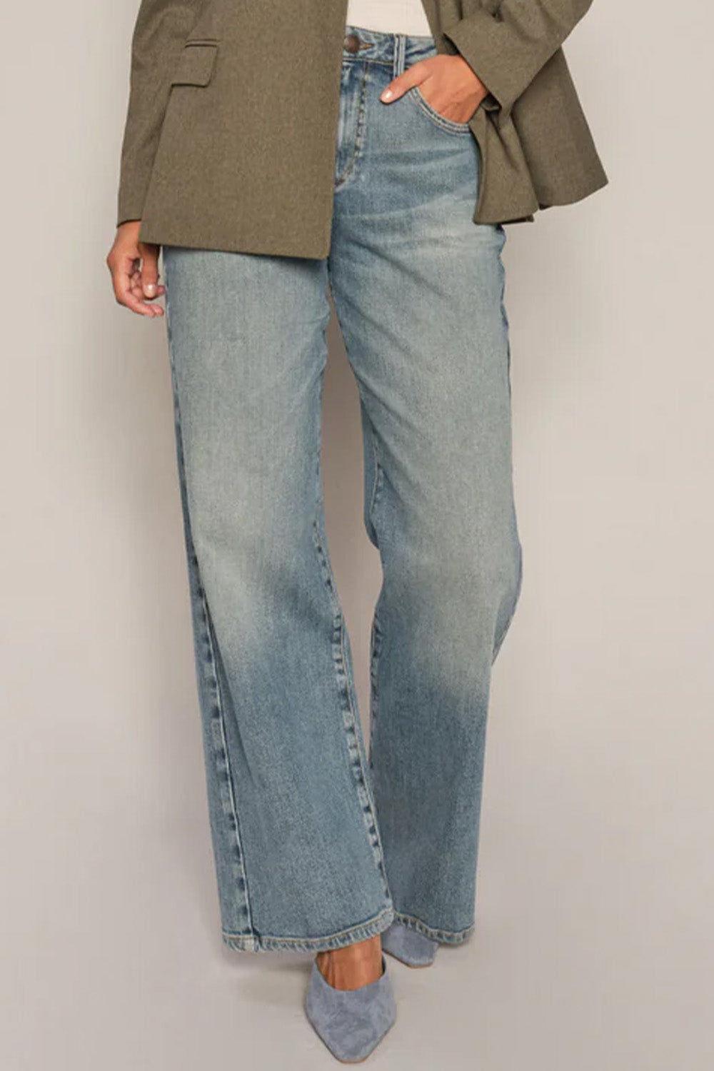 - Støvler eller høje hæle: Her kan du vælge en længere længde, især ved bootcut eller flared jeans, for at give et elegant udtryk, hvor jeansene netop når ned til skoens kant.