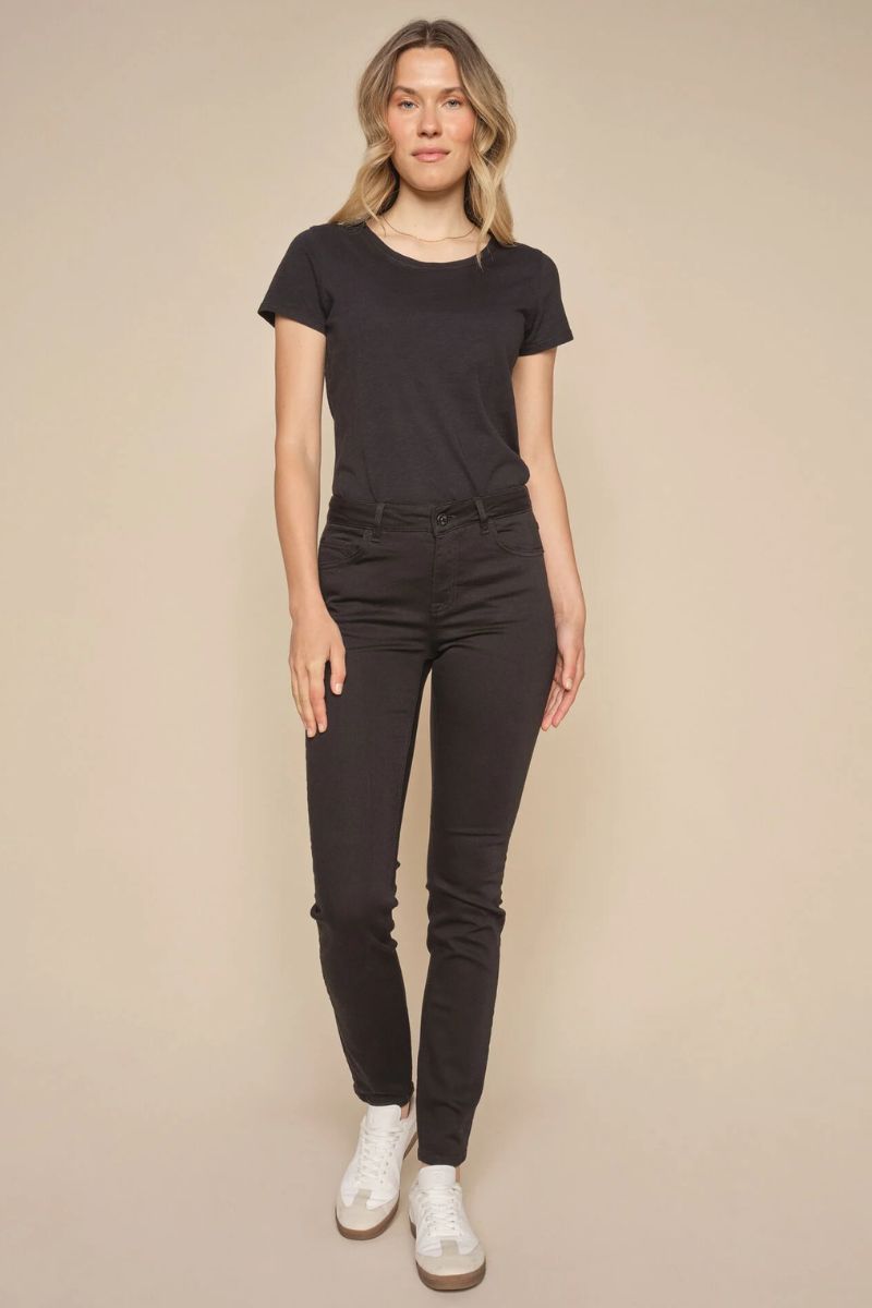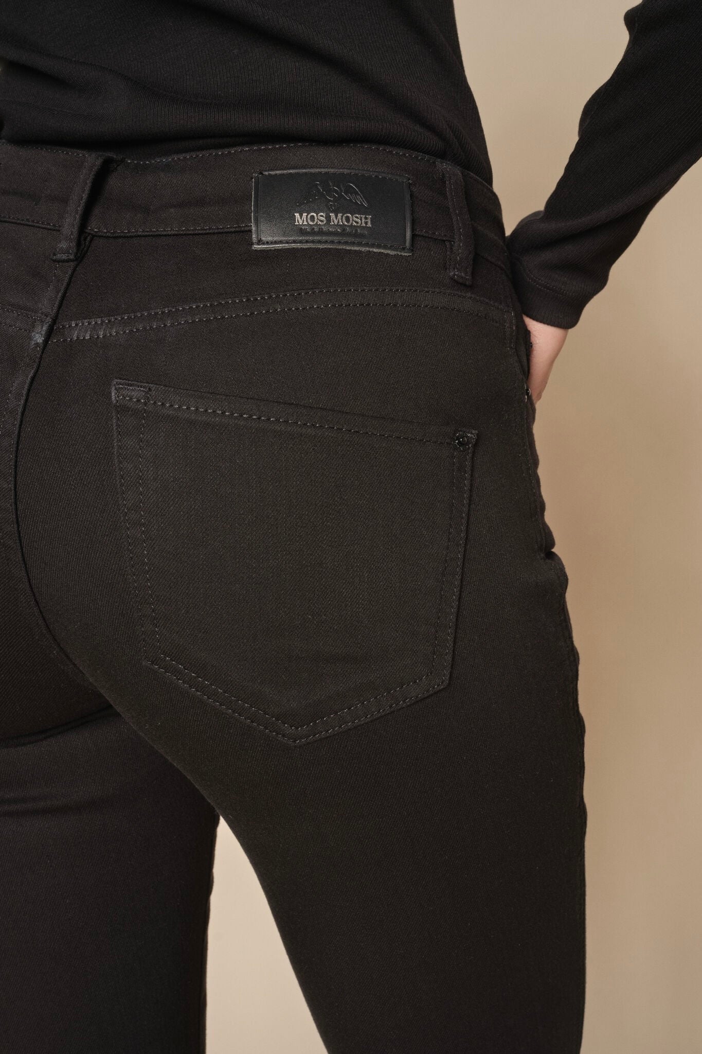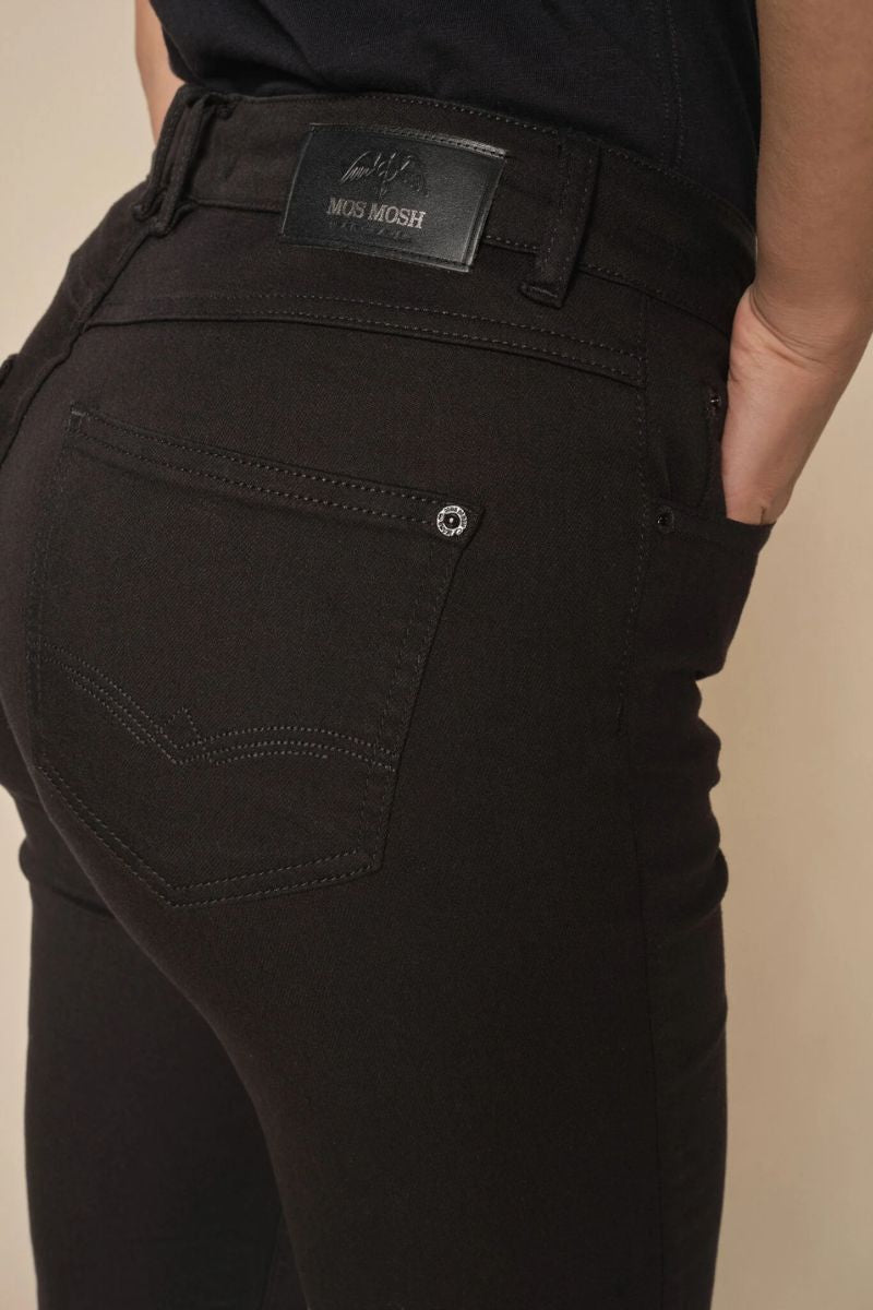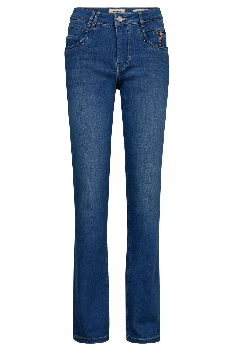 - Mos Mosh: Jeans som "Alli Cover Jeans" har et strammere snit, og pasformen kan derfor kræve mere præcise mål.
