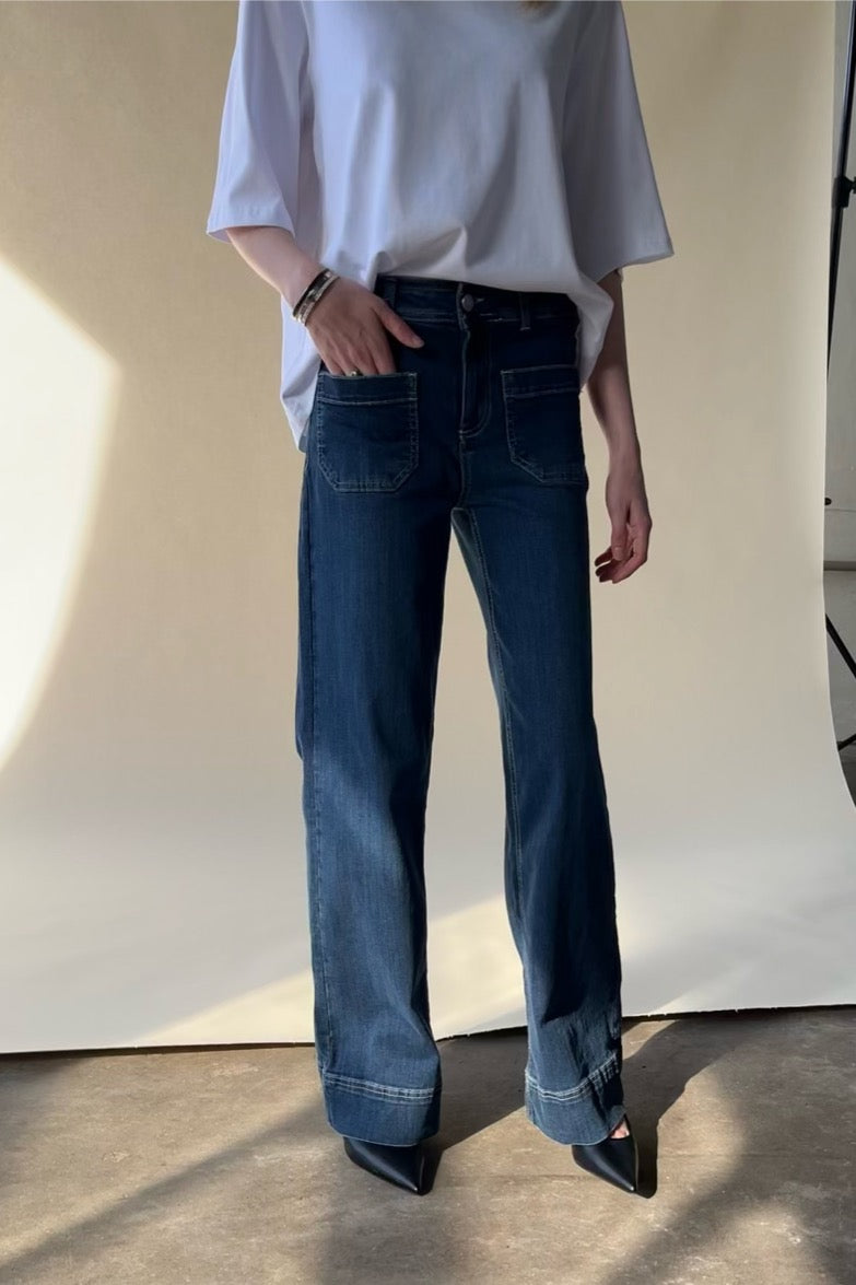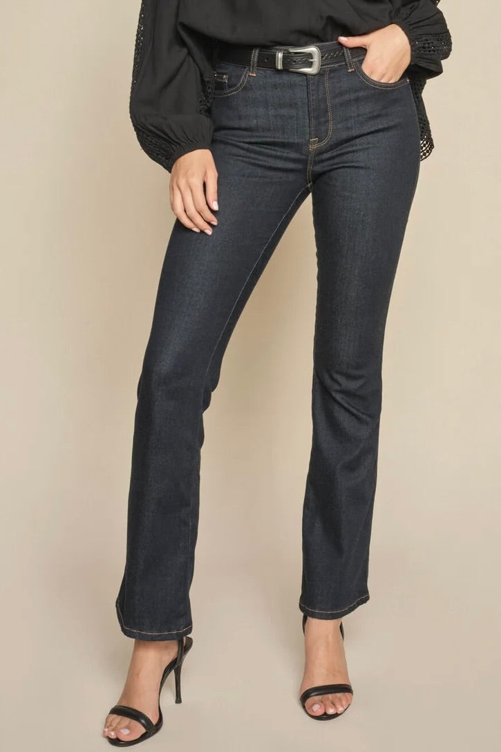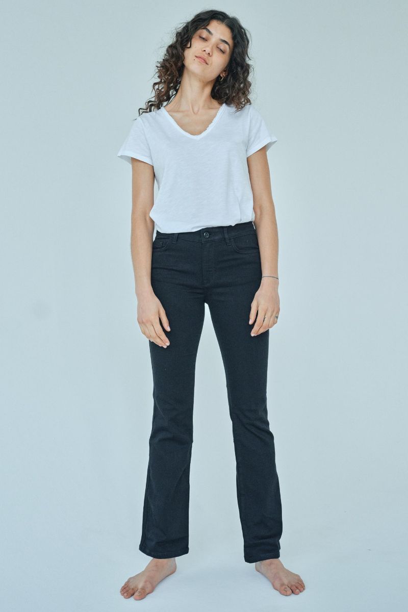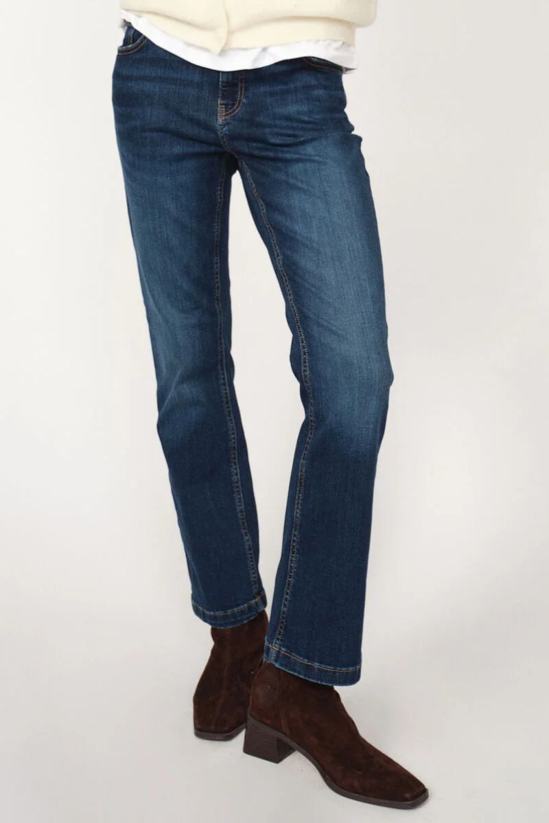 - Bootcut jeans: En pasform, der er tætsiddende på lårene og let udvider sig ved anklen. Denne stil er perfekt til dig, der ønsker at skabe balance i din silhuet og forlænge benene visuelt.
