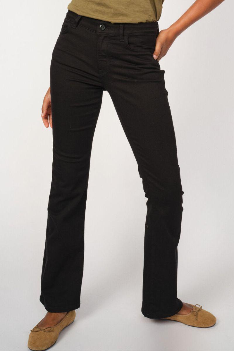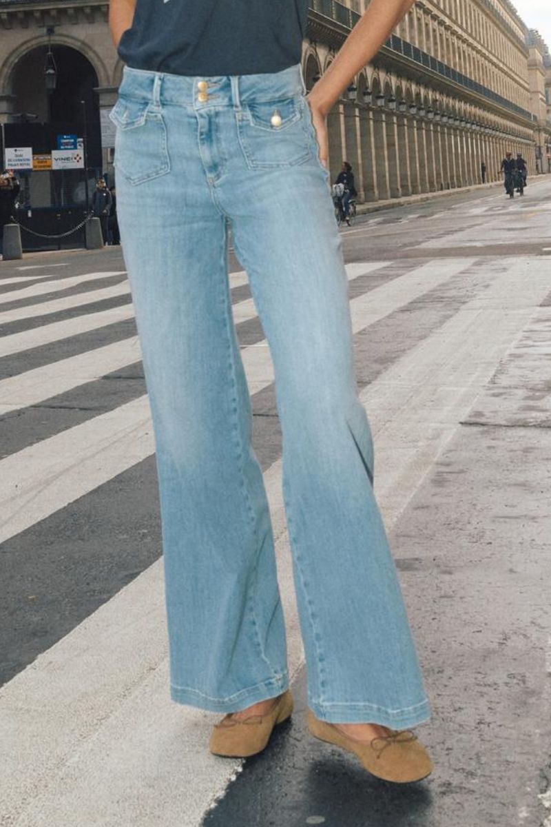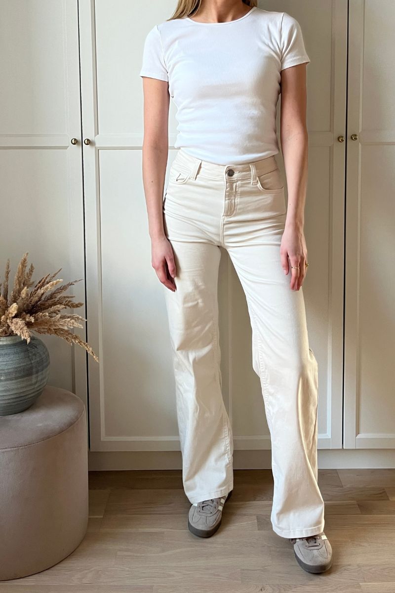 - Flared jeans: En modefavorit, der giver et retro-inspireret udtryk med sin brede bund. Kombiner med høje hæle og en tætsiddende top for et stilfuldt og moderne look.