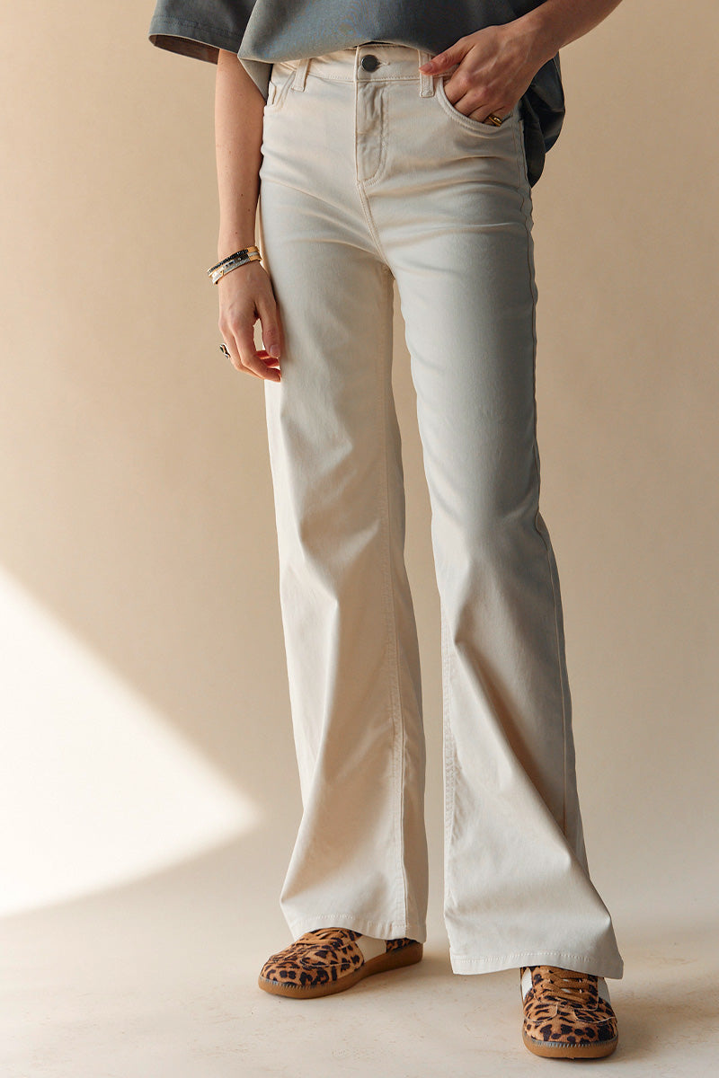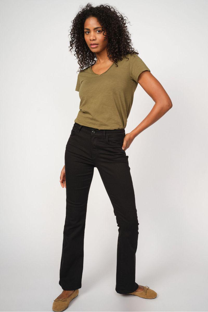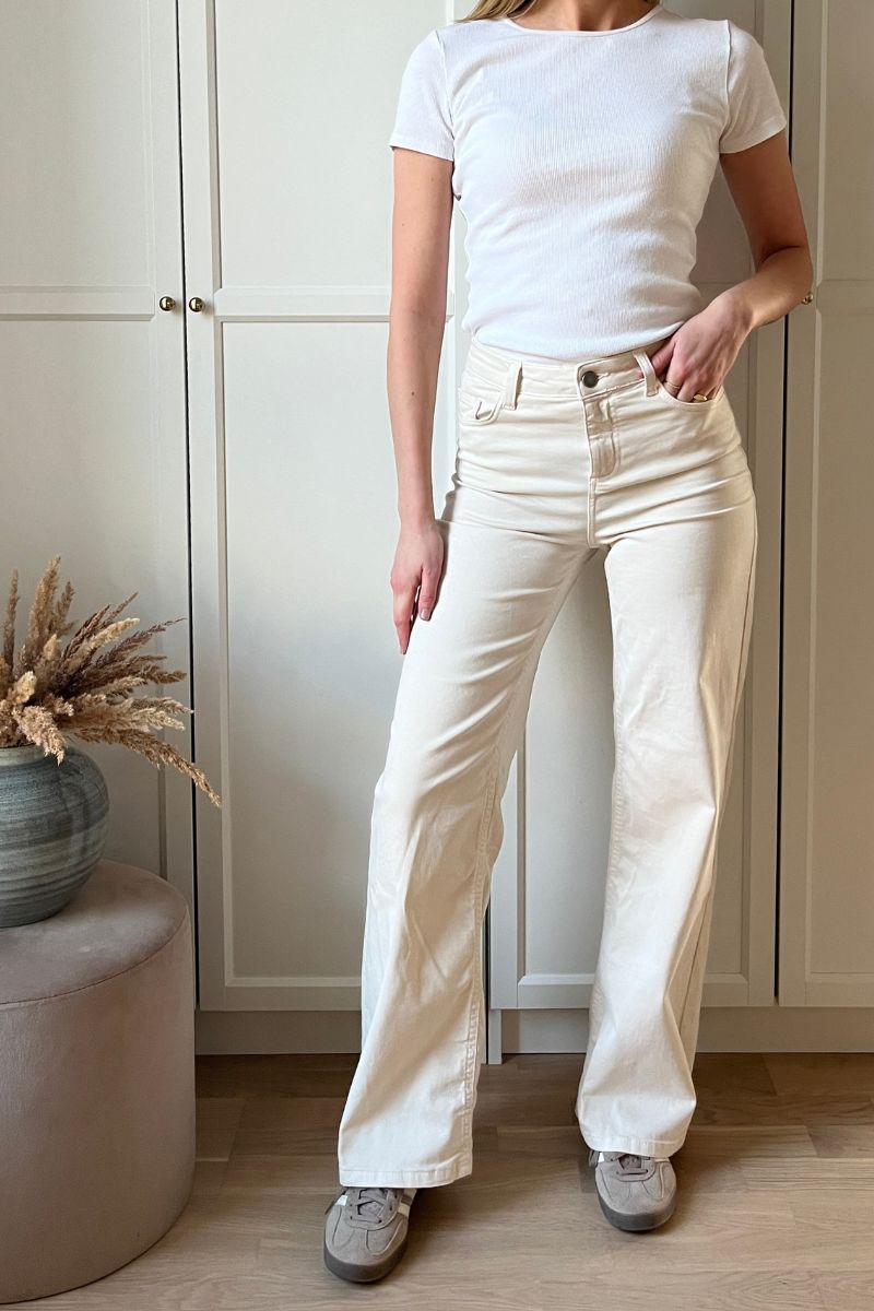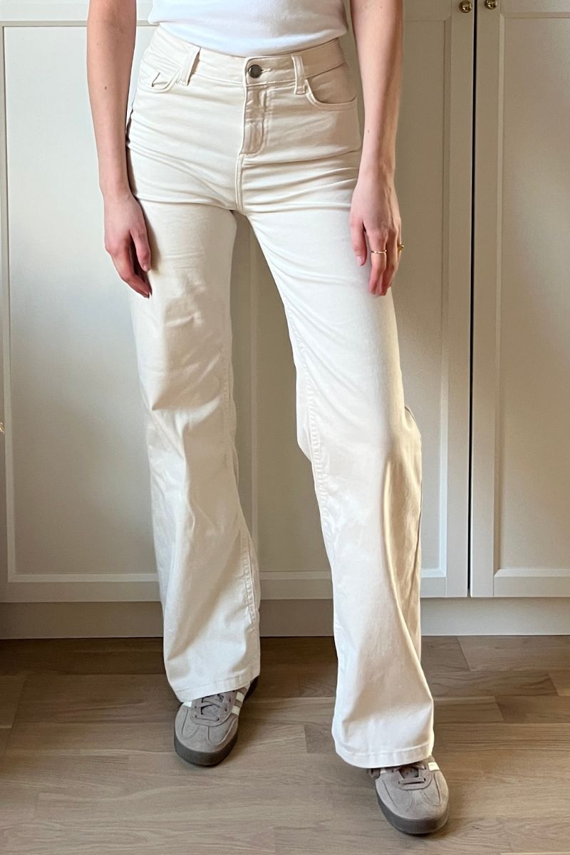 - Flared jeans: En modefavorit, der giver et retro-inspireret udtryk med sin brede bund. Kombiner med høje hæle og en tætsiddende top for et stilfuldt og moderne look.