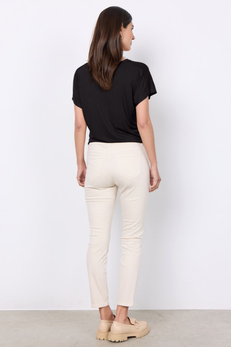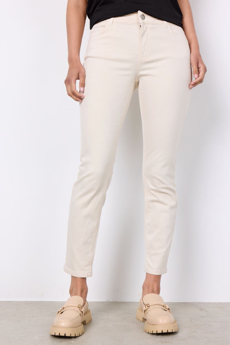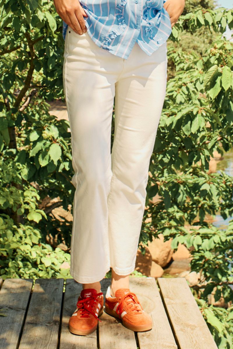 - Freequent: Modeller som "Shantal Pant Ankle Broken" anbefales med højere elastikindhold og er derfor mere fleksible.
