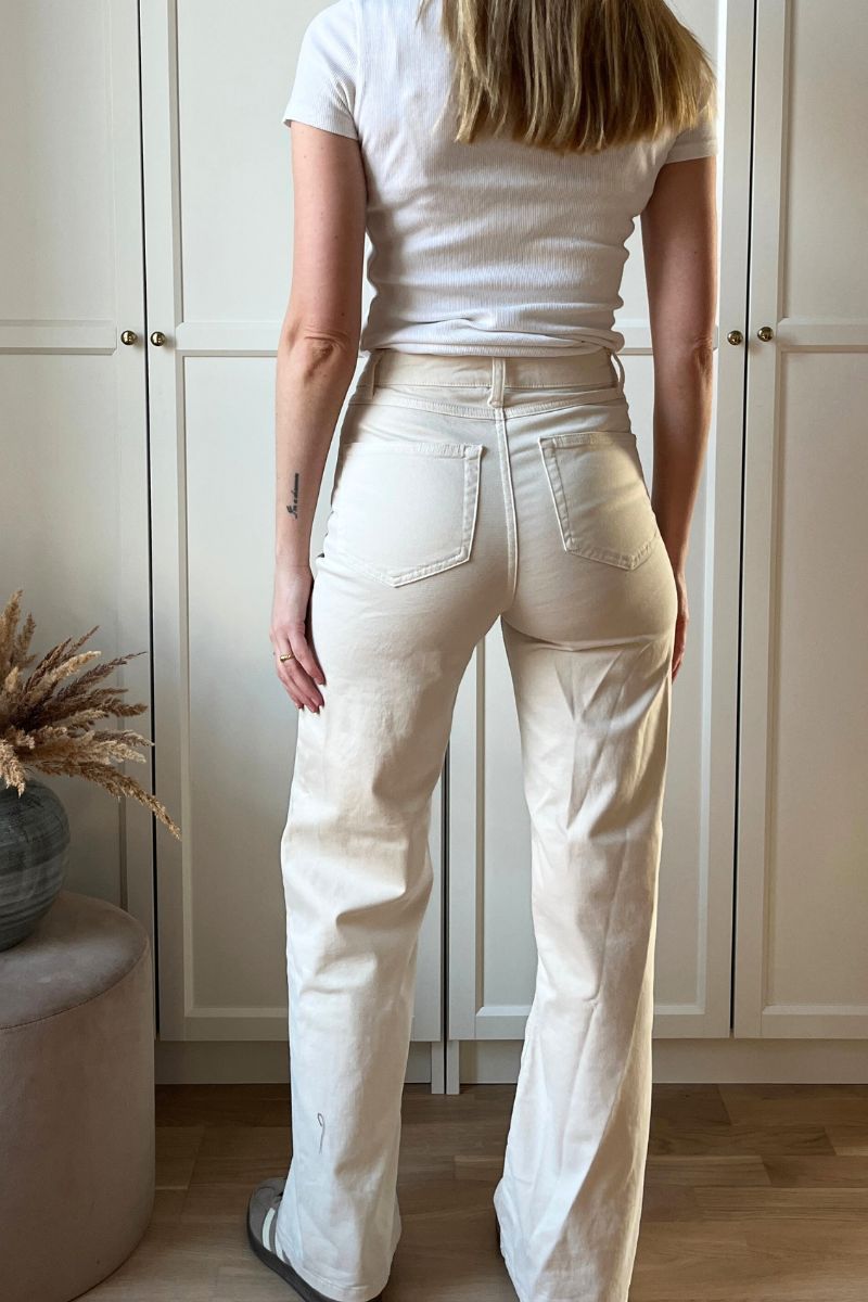 - Loose fit jeans: Hvis komfort og afslappet stil er dit fokus, er loose fit jeans et oplagt valg. Med deres løse snit giver de en ubesværet og moderne silhuet, der fungerer perfekt til et casual look med sneakers eller støvler.