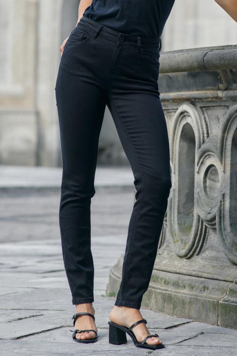 - Slim fit jeans: Tætsiddende jeans, der former og fremhæver dine kurver på elegant vis. Slim fit jeans er et sikkert valg til både hverdags- og aftenbrug, da de kan styles med alt fra en løs skjorte til en blazer eller en feminin bluse.