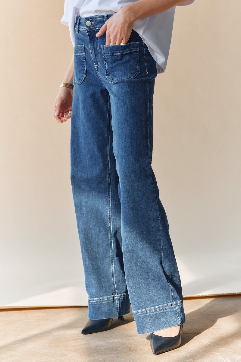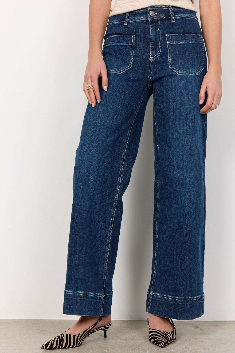 - Flade sko eller sneakers: Hvis du foretrækker fladt fodtøj som sneakers, bør dine jeans ikke være for lange, da de kan skabe en "bølge-effekt" ved anklen.