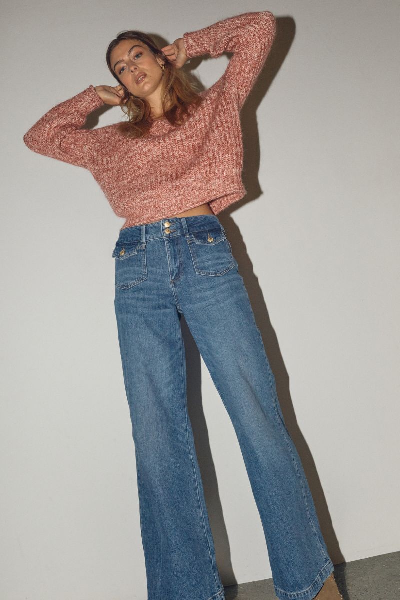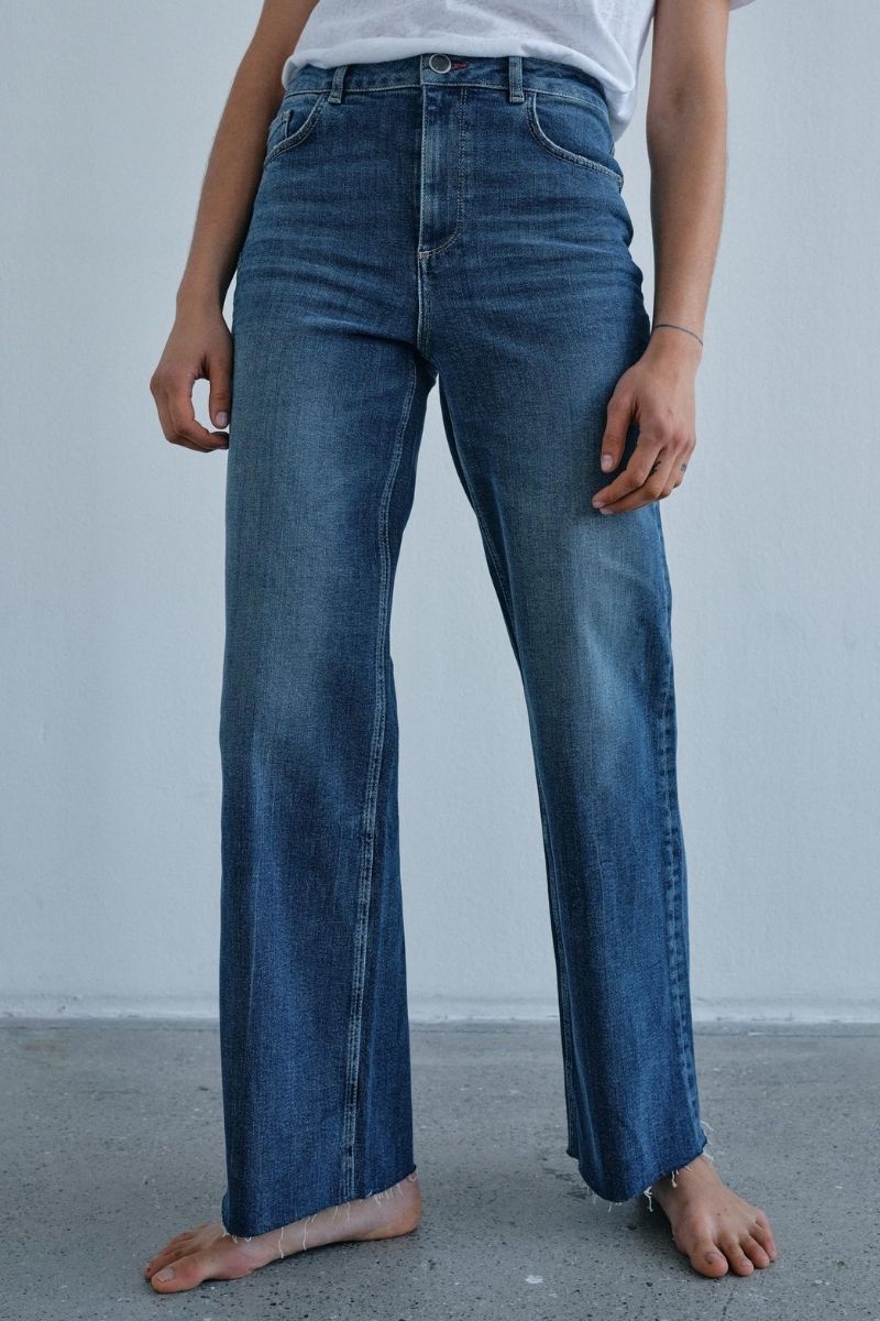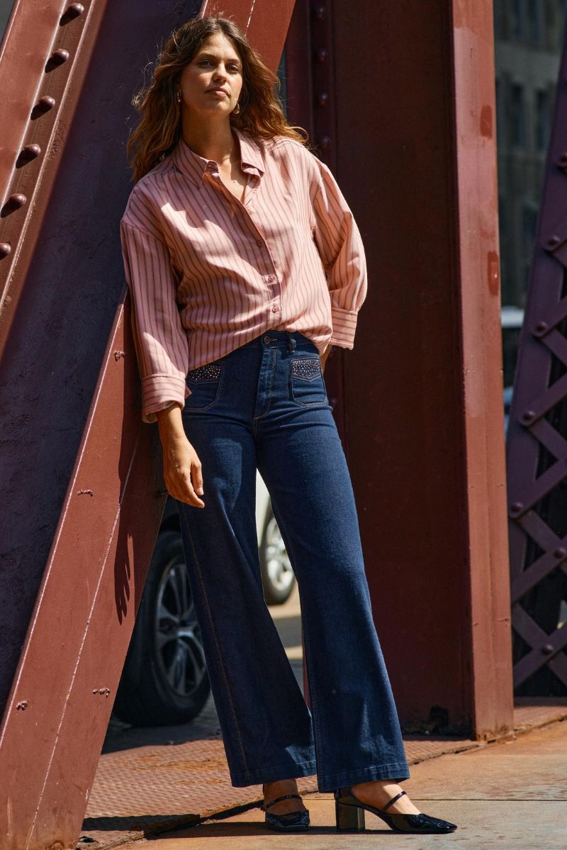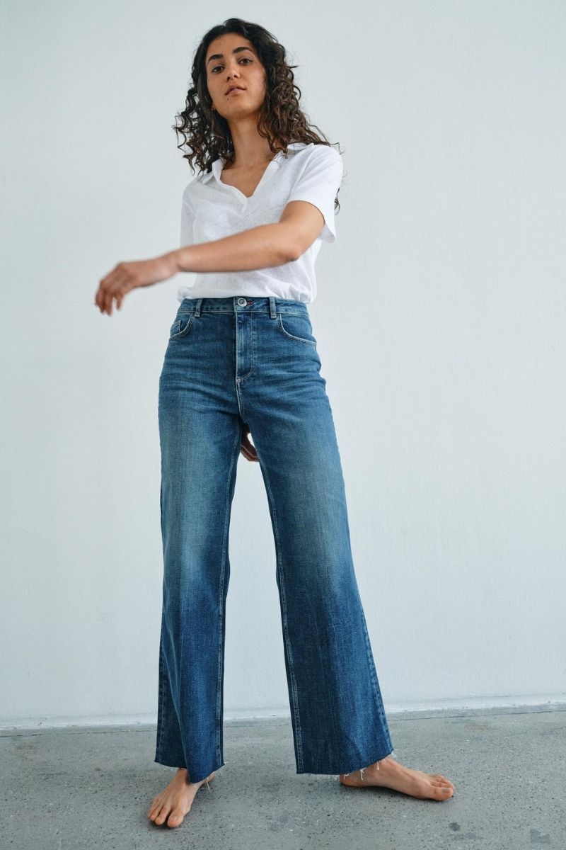 - Flared jeans: En modefavorit, der giver et retro-inspireret udtryk med sin brede bund. Kombiner med høje hæle og en tætsiddende top for et stilfuldt og moderne look.