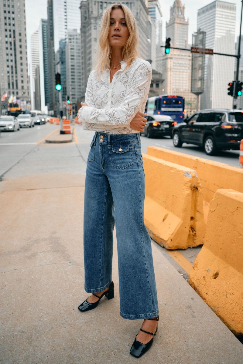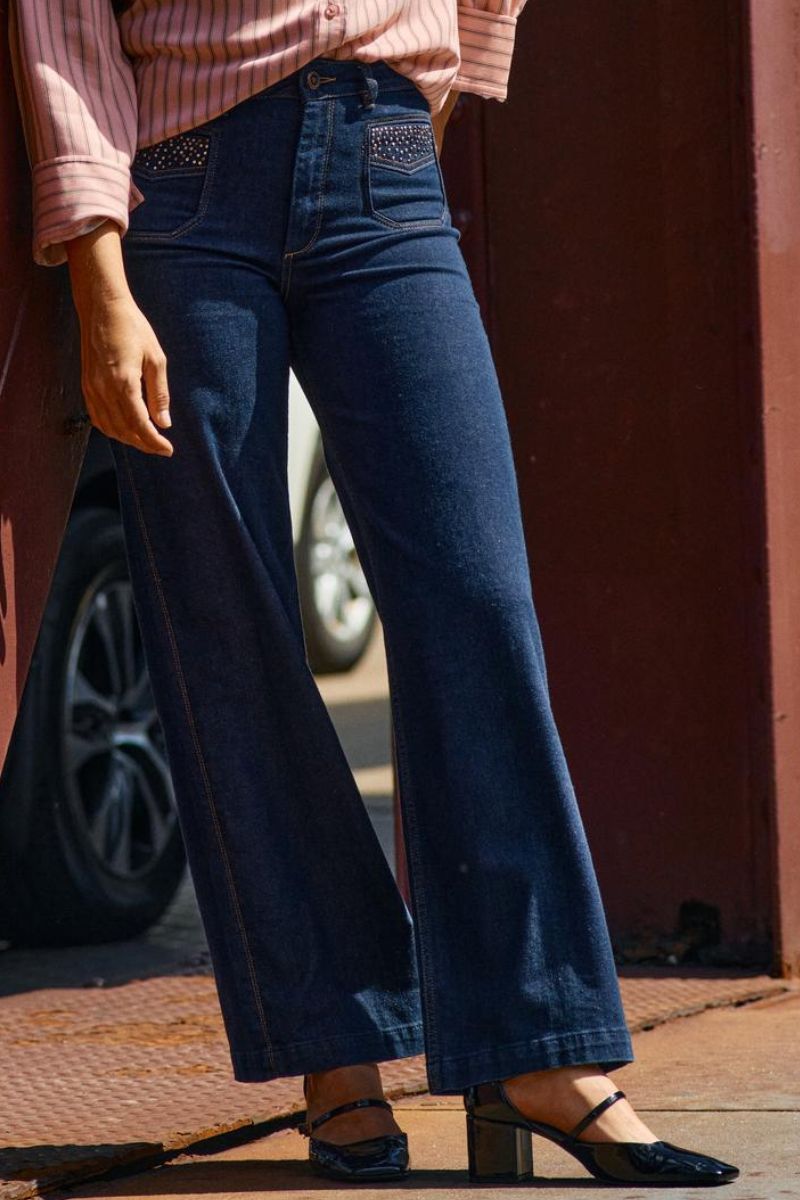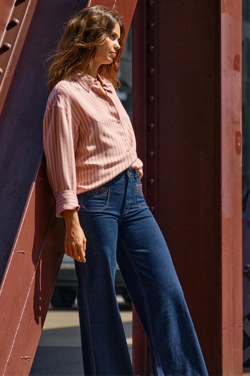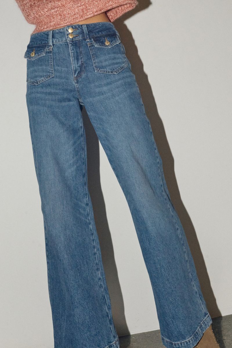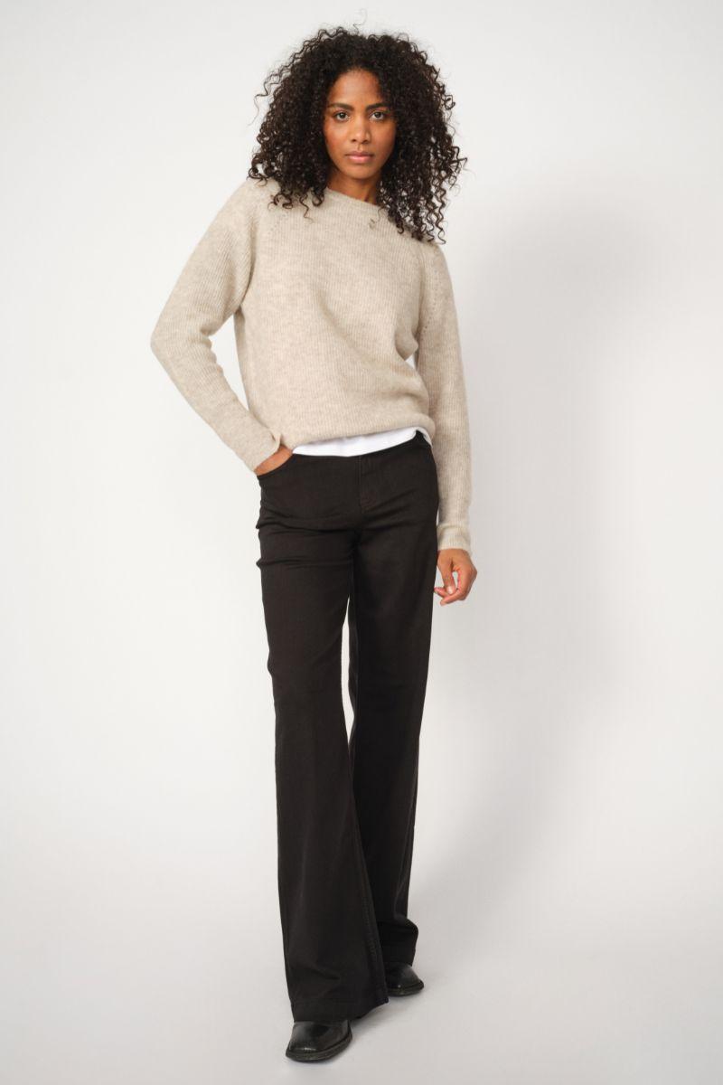 - Flared jeans: En modefavorit, der giver et retro-inspireret udtryk med sin brede bund. Kombiner med høje hæle og en tætsiddende top for et stilfuldt og moderne look.