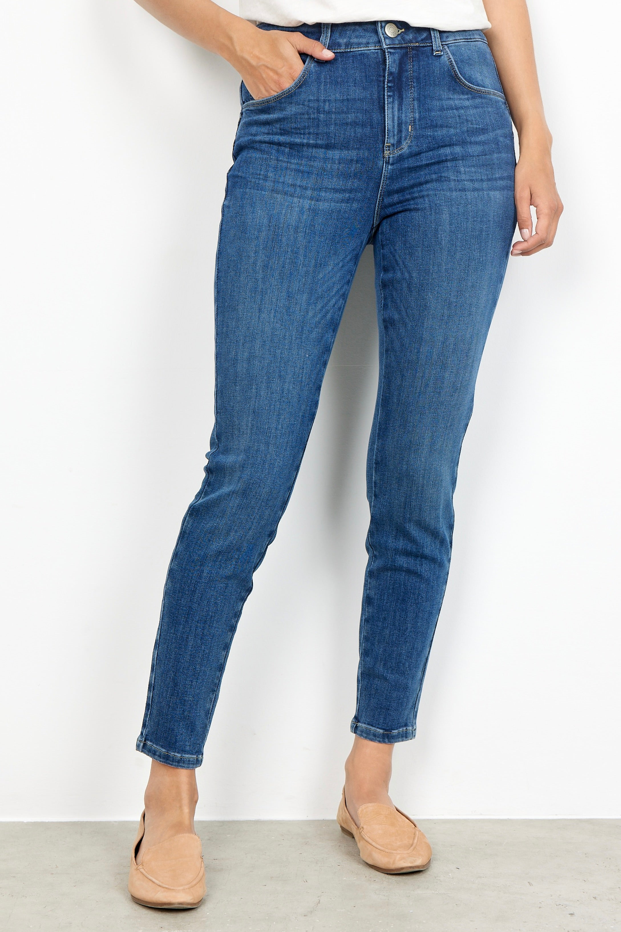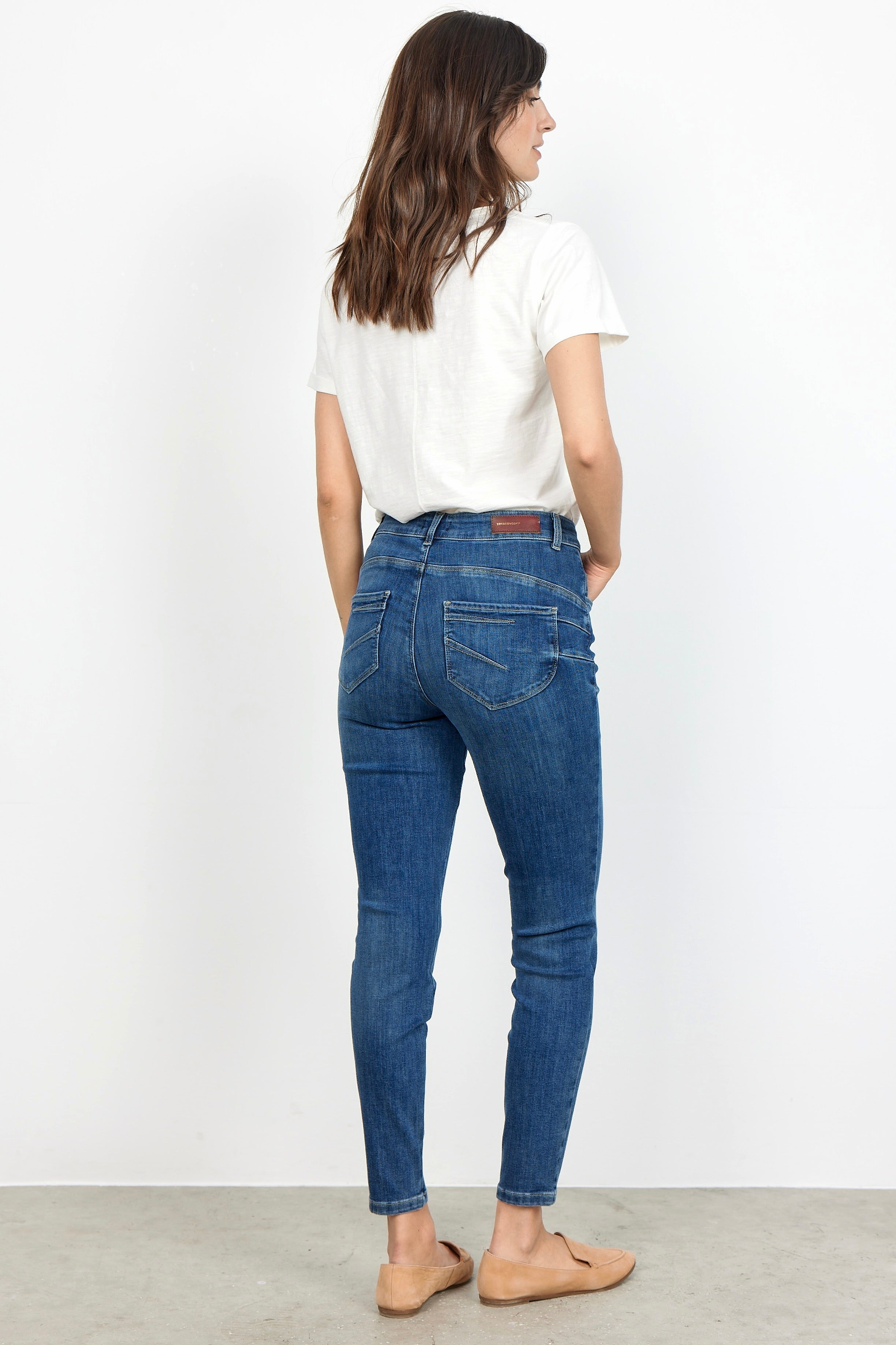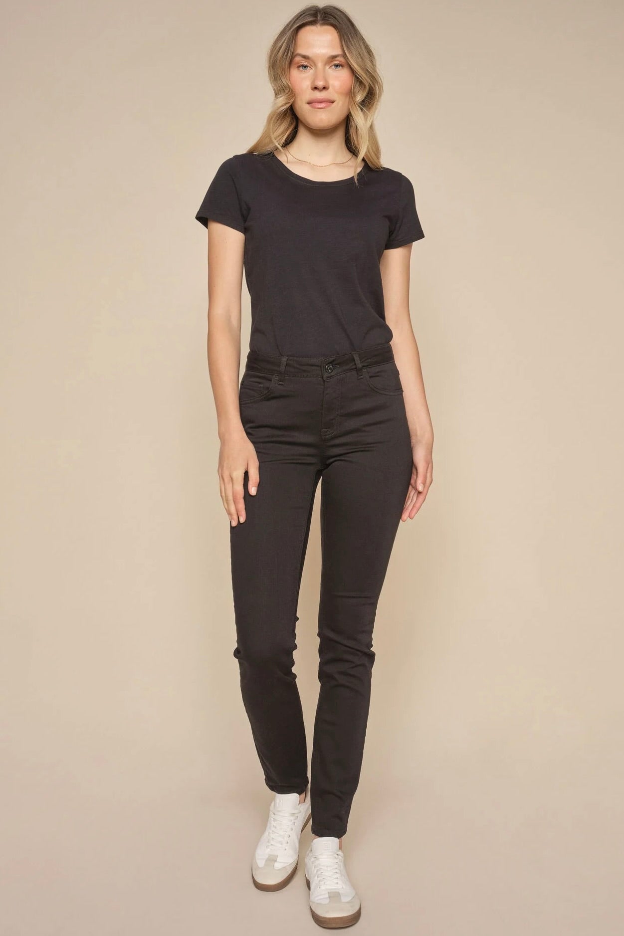 - Flade sko eller sneakers: Hvis du foretrækker fladt fodtøj som sneakers, bør dine jeans ikke være for lange, da de kan skabe en "bølge-effekt" ved anklen.