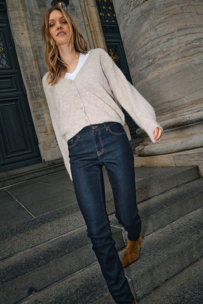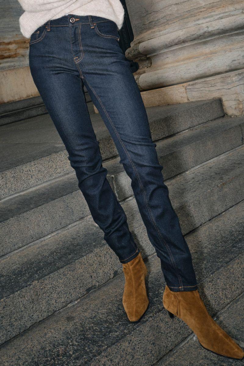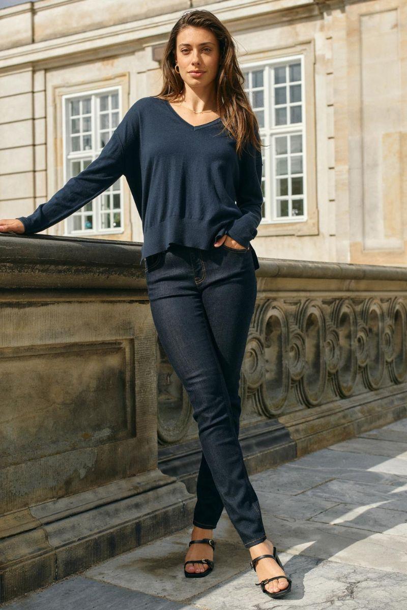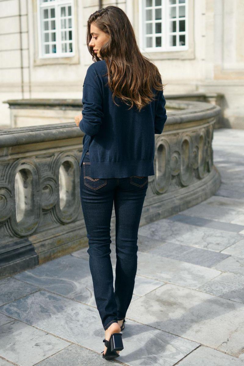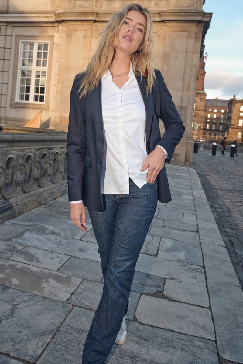 - Slim fit jeans: Tætsiddende jeans, der former og fremhæver dine kurver på elegant vis. Slim fit jeans er et sikkert valg til både hverdags- og aftenbrug, da de kan styles med alt fra en løs skjorte til en blazer eller en feminin bluse.