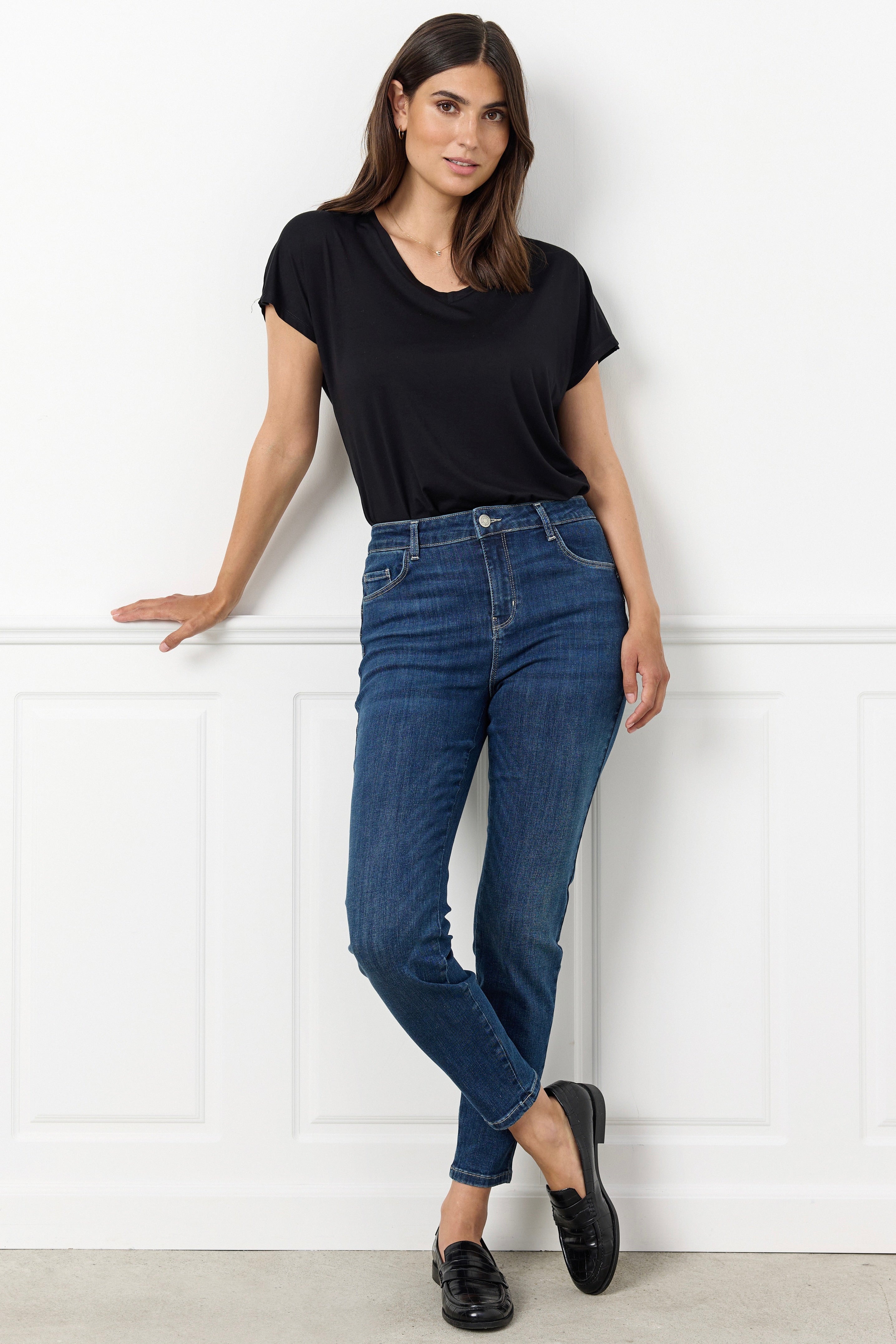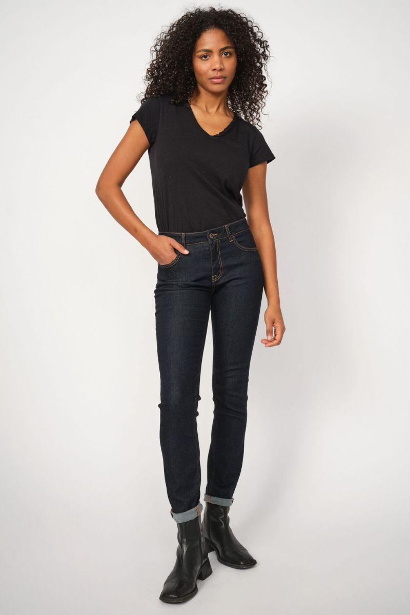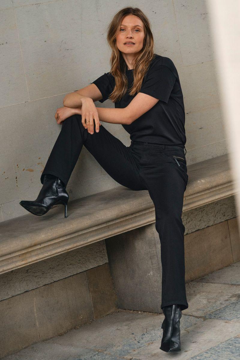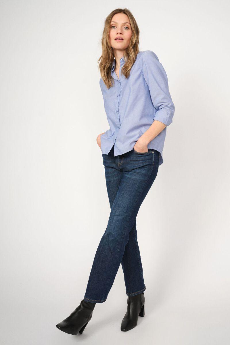 - Slim fit jeans: Tætsiddende jeans, der former og fremhæver dine kurver på elegant vis. Slim fit jeans er et sikkert valg til både hverdags- og aftenbrug, da de kan styles med alt fra en løs skjorte til en blazer eller en feminin bluse.
