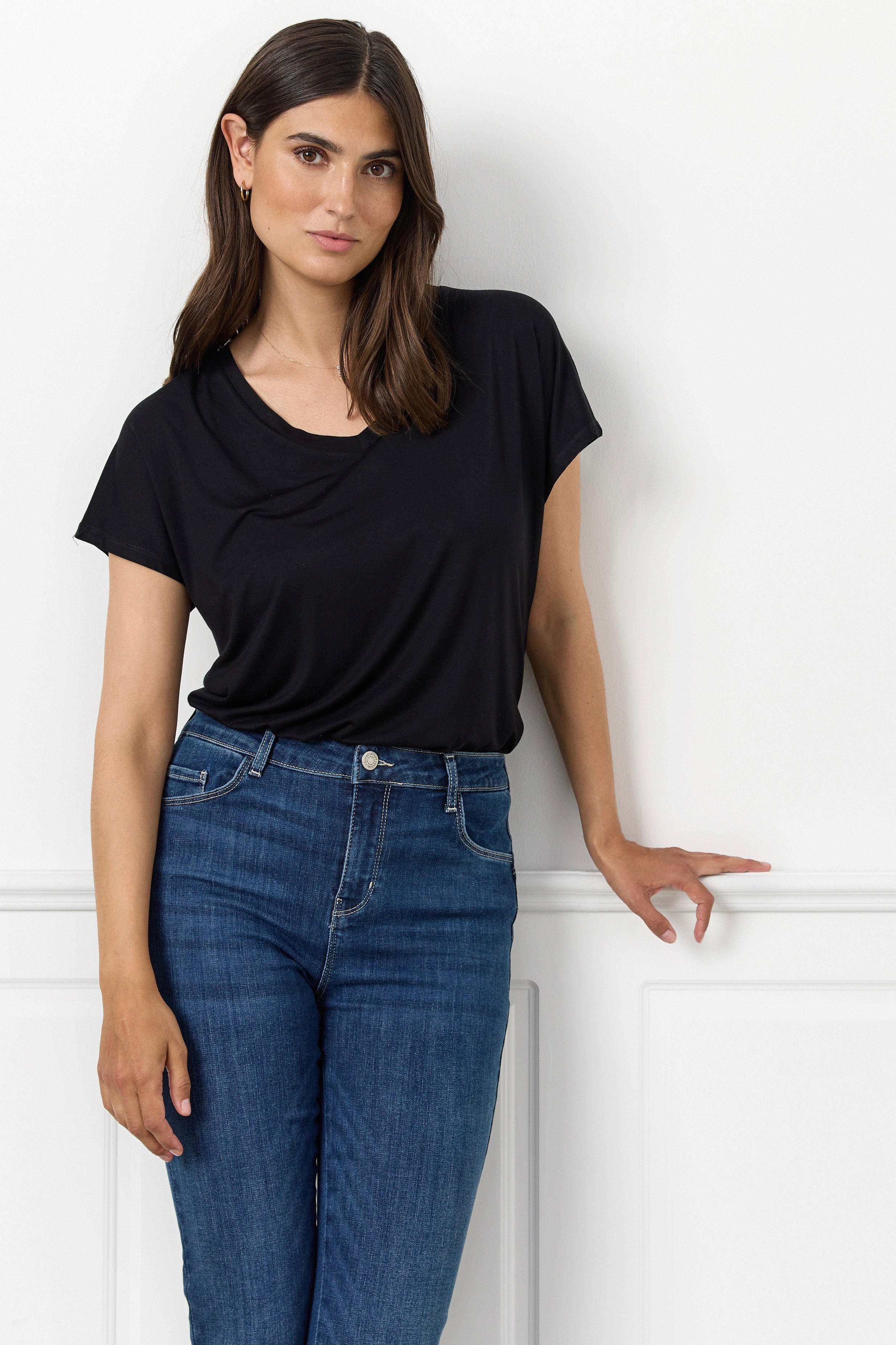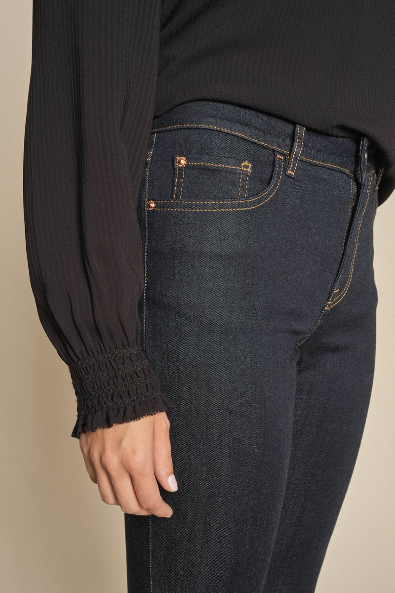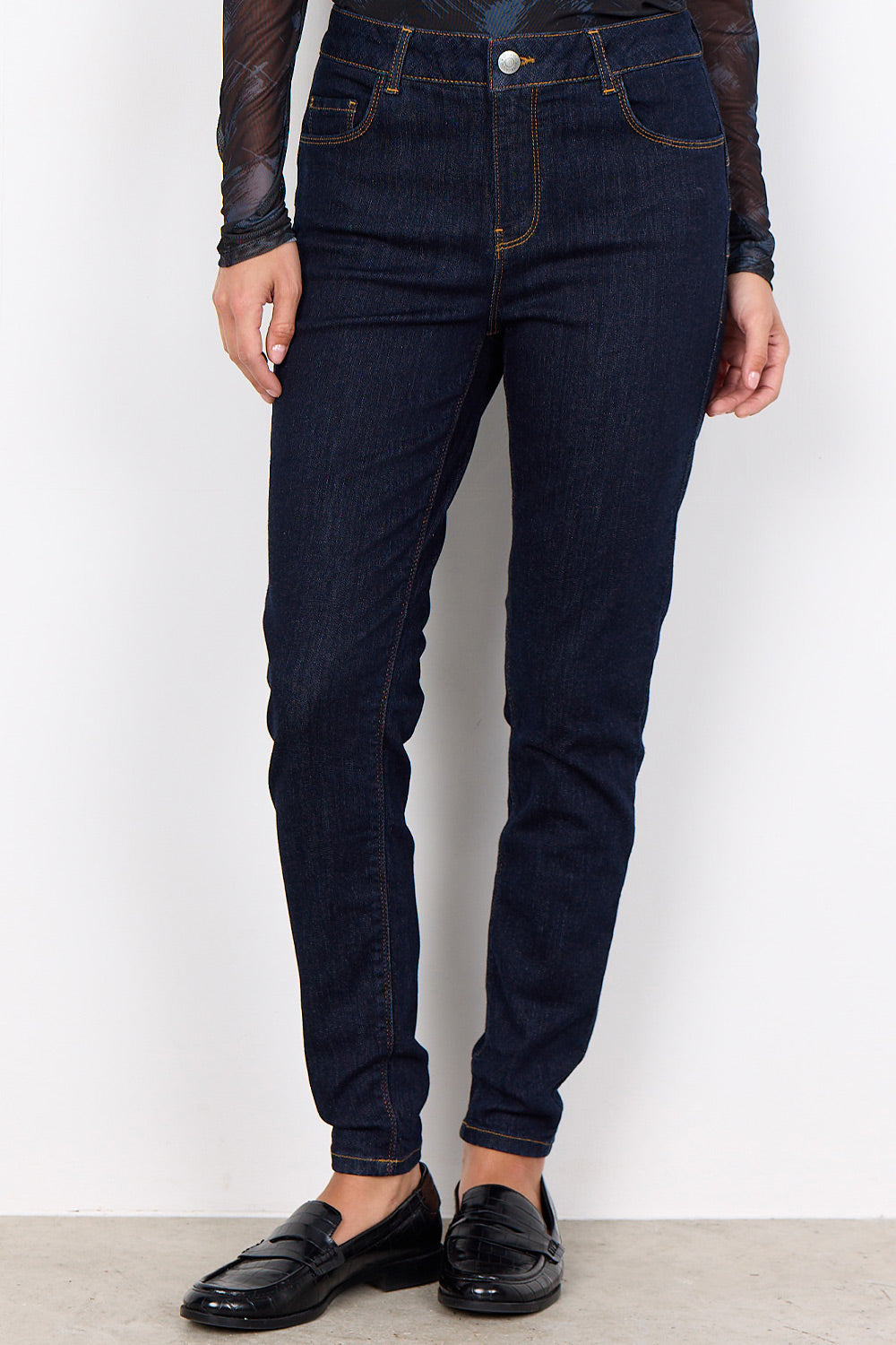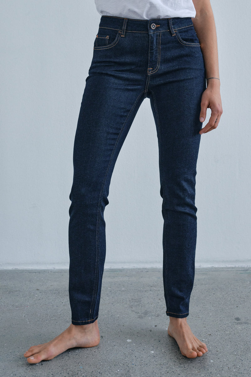 - Slim fit jeans: Tætsiddende jeans, der former og fremhæver dine kurver på elegant vis. Slim fit jeans er et sikkert valg til både hverdags- og aftenbrug, da de kan styles med alt fra en løs skjorte til en blazer eller en feminin bluse.