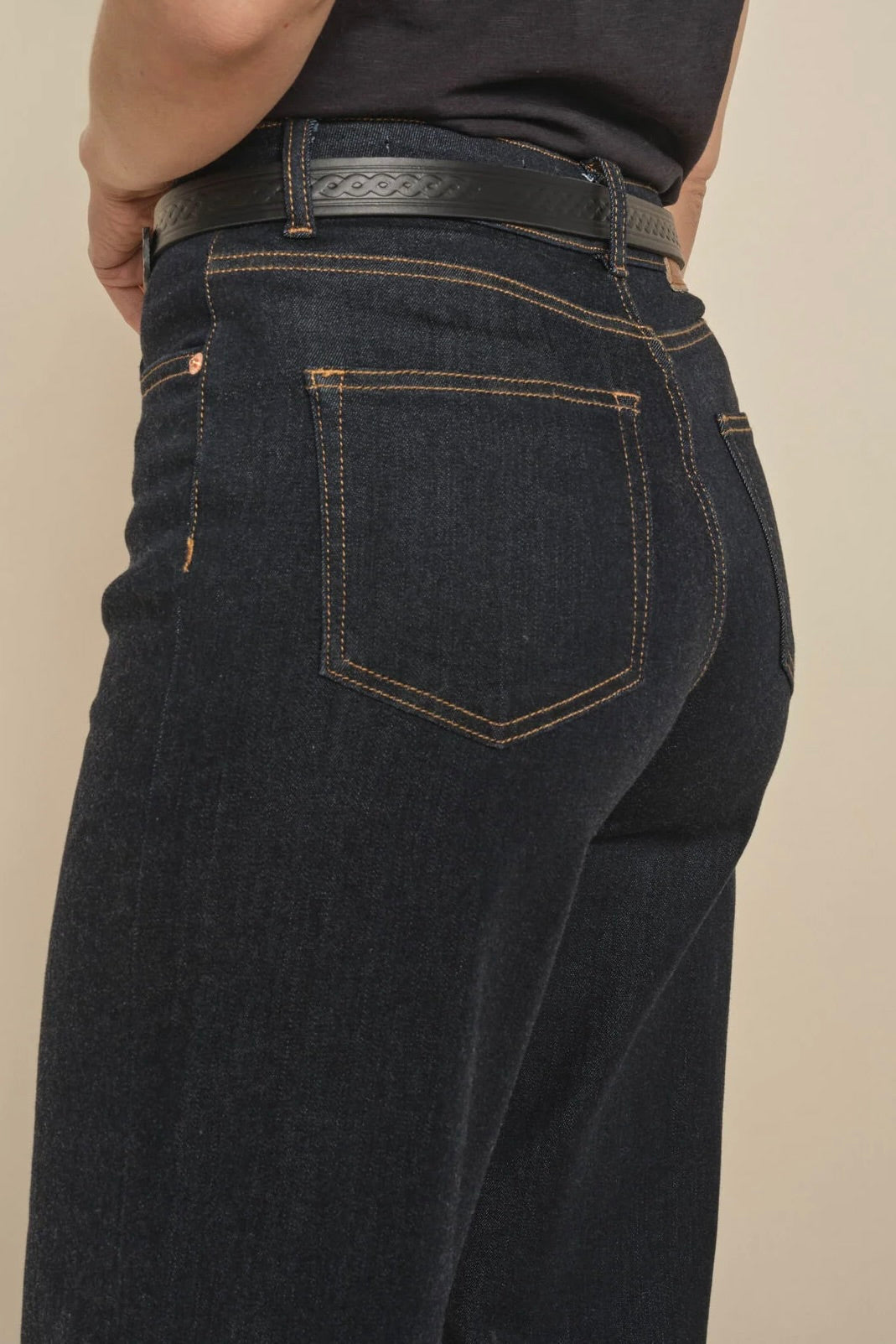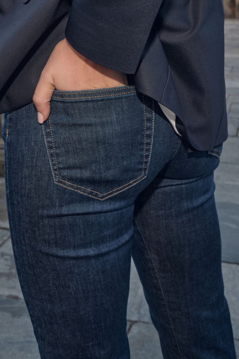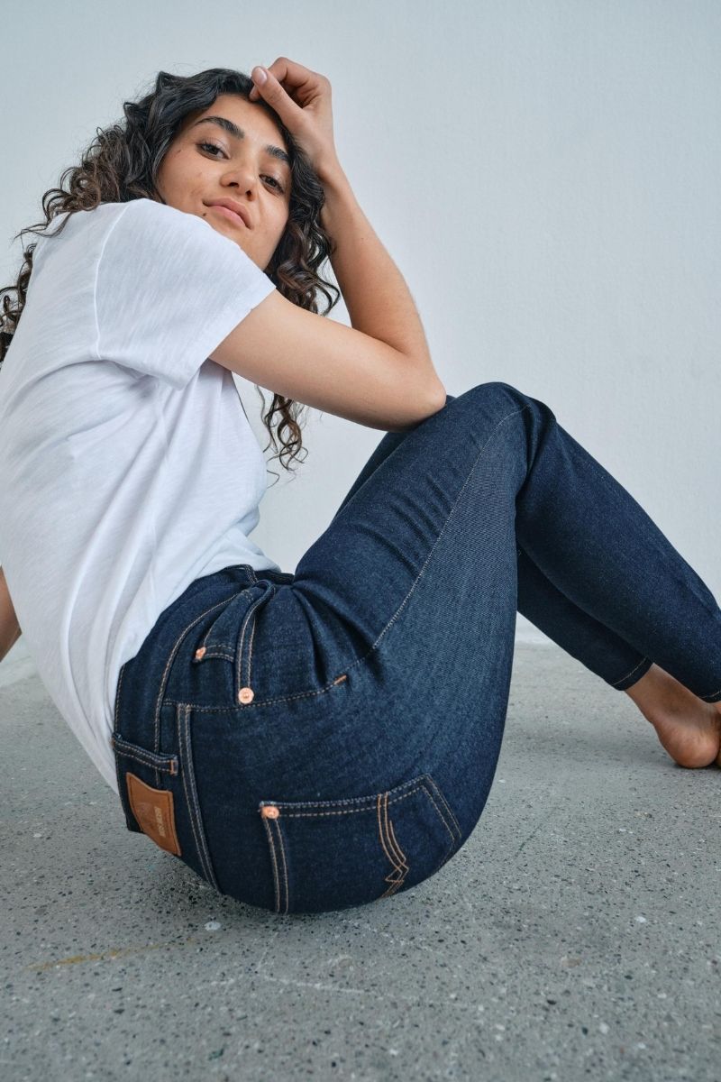 - Vær opmærksom på materialet: Jeans med høj stretch kan ofte bære, at du går en størrelse ned, mens jeans med lav stretch kræver mere præcision i målene.