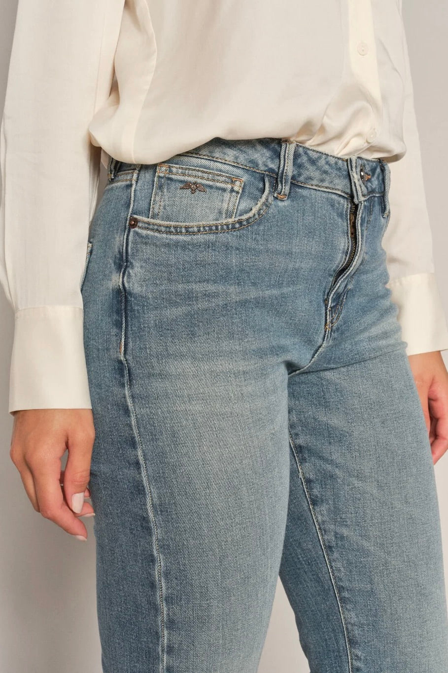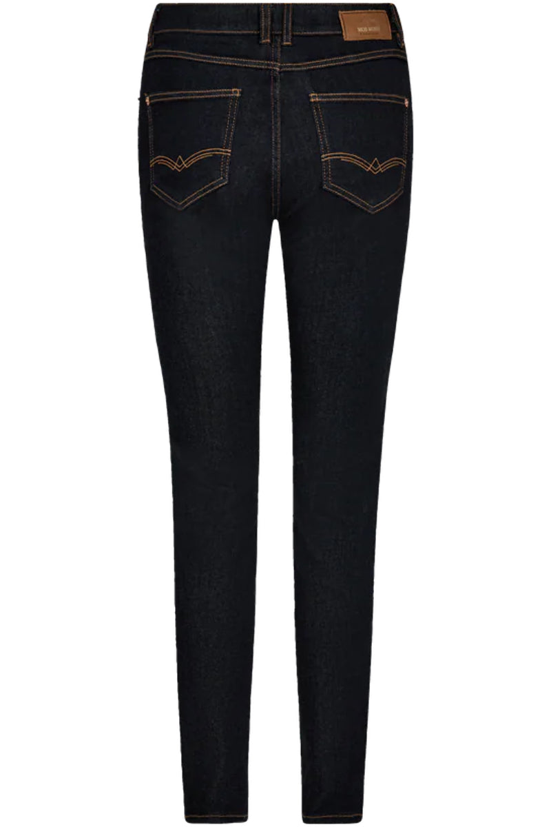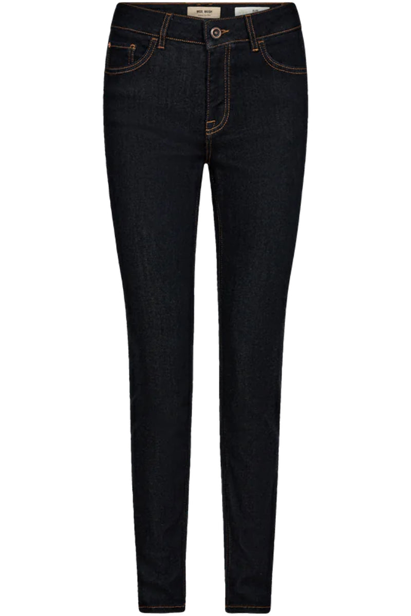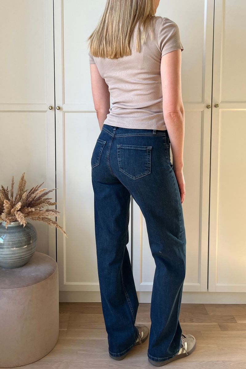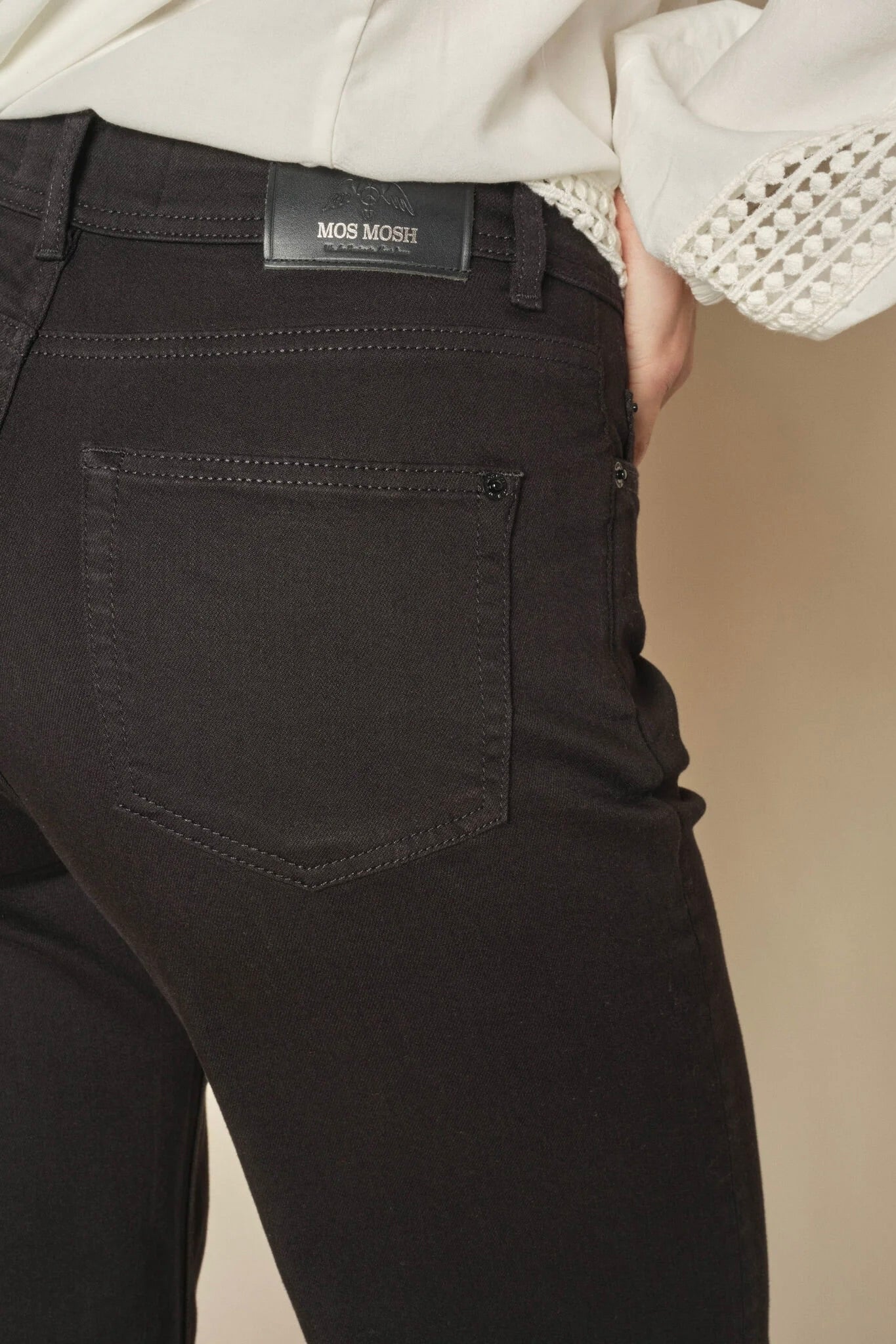 - Mos Mosh: Jeans som "Alli Cover Jeans" har et strammere snit, og pasformen kan derfor kræve mere præcise mål.