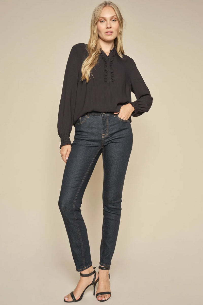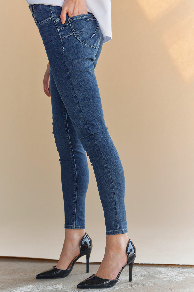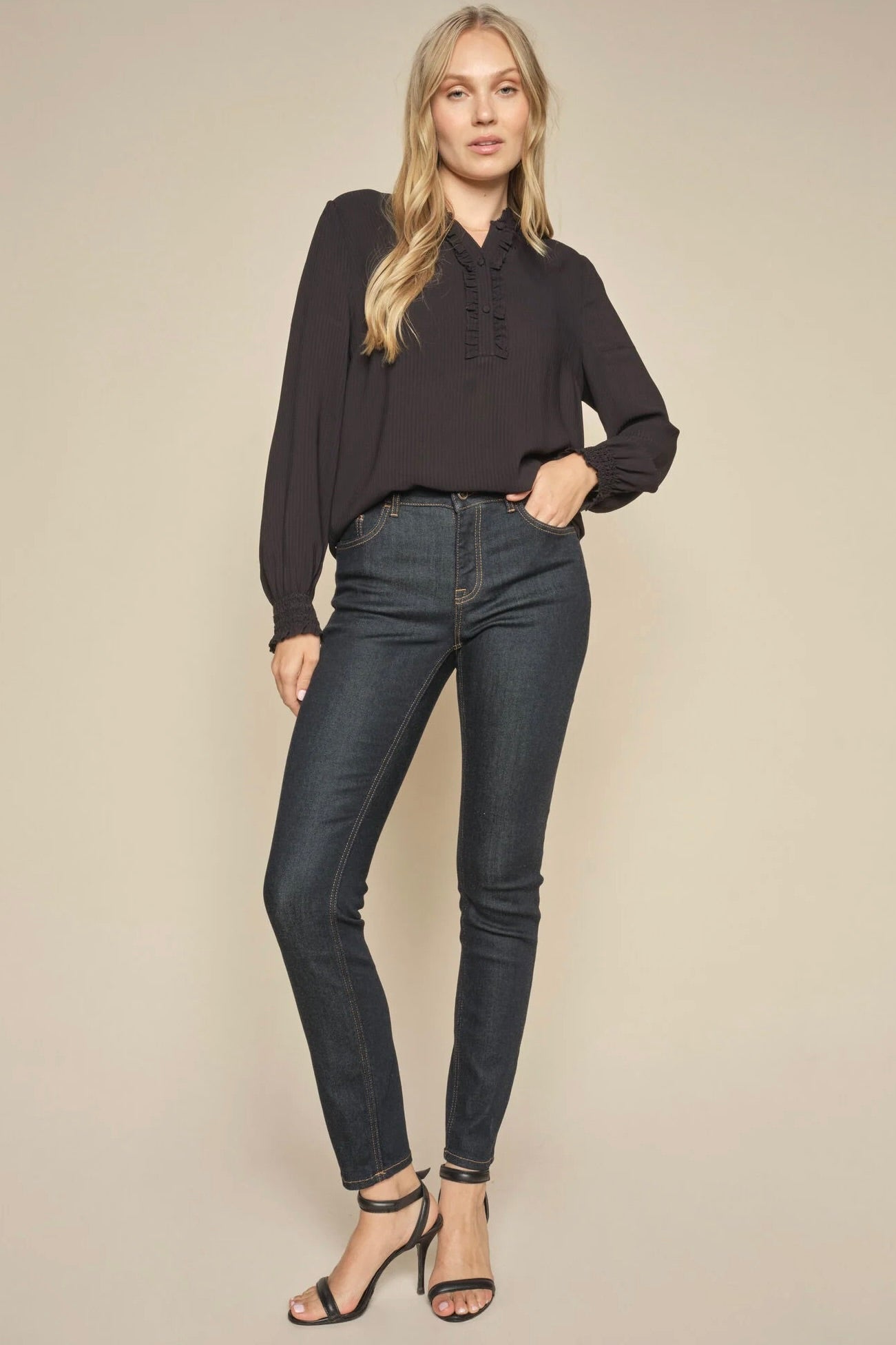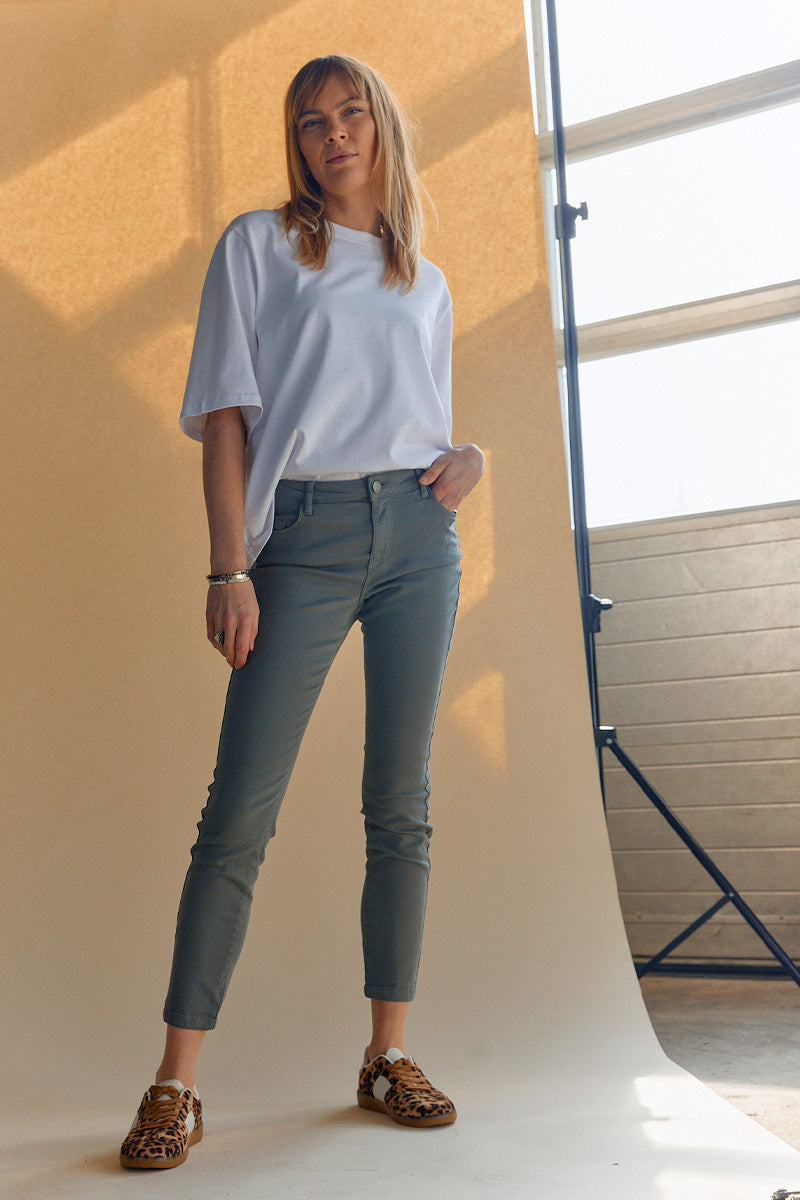 - Skinny jeans: Disse sidder tæt til benet og må gerne være en anelse kortere, så de sidder perfekt ved anklen.