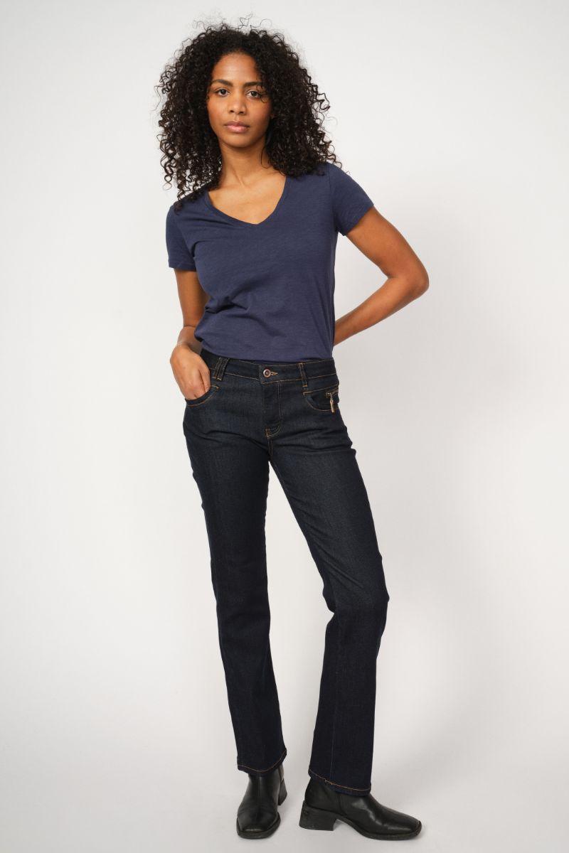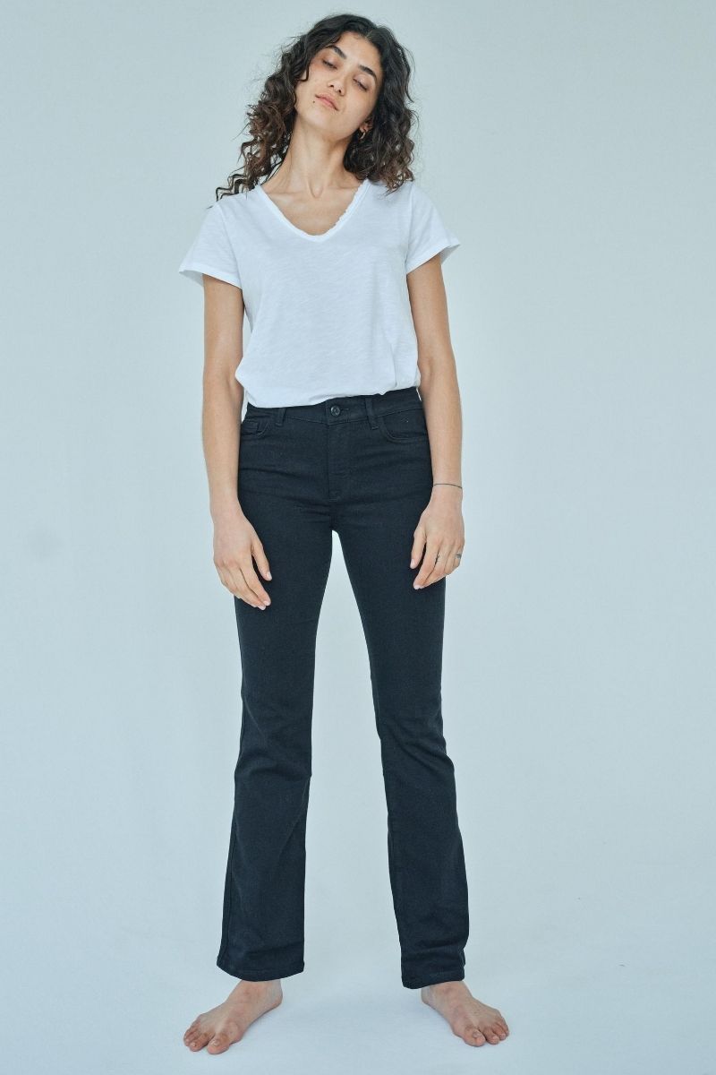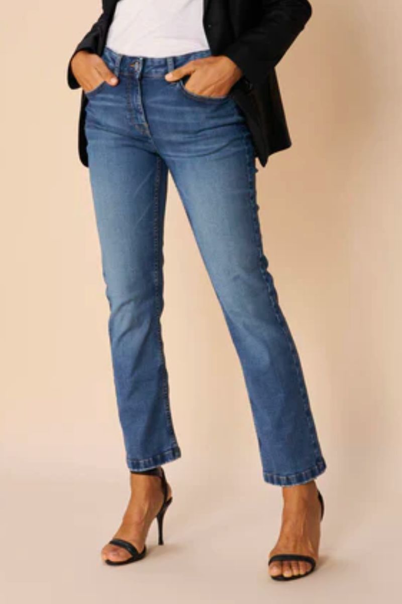 - Bootcut jeans: En pasform, der er tætsiddende på lårene og let udvider sig ved anklen. Denne stil er perfekt til dig, der ønsker at skabe balance i din silhuet og forlænge benene visuelt.