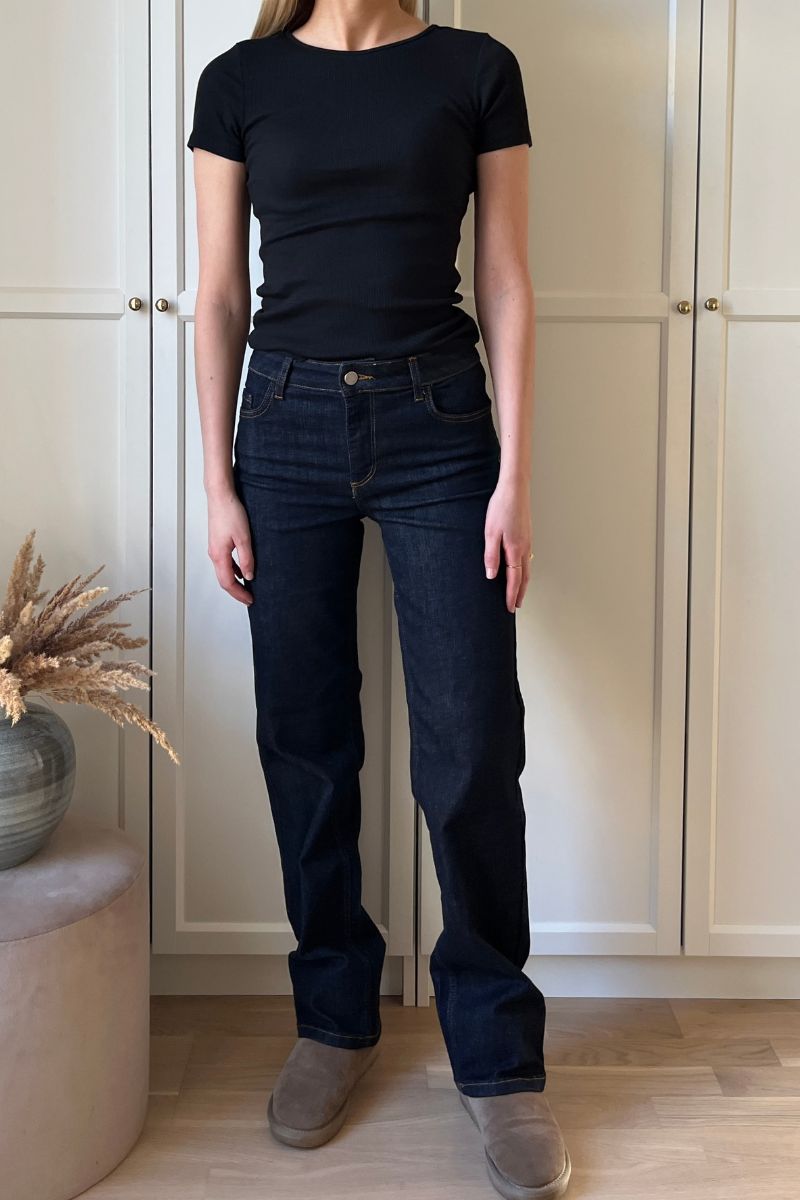 - Straight leg jeans: Denne klassiske pasform har et lige snit fra hofte til ankel og er ideel til dig, der ønsker et tidløst og alsidigt look. Straight leg jeans passer perfekt til både hverdag og mere formelle anledninger.