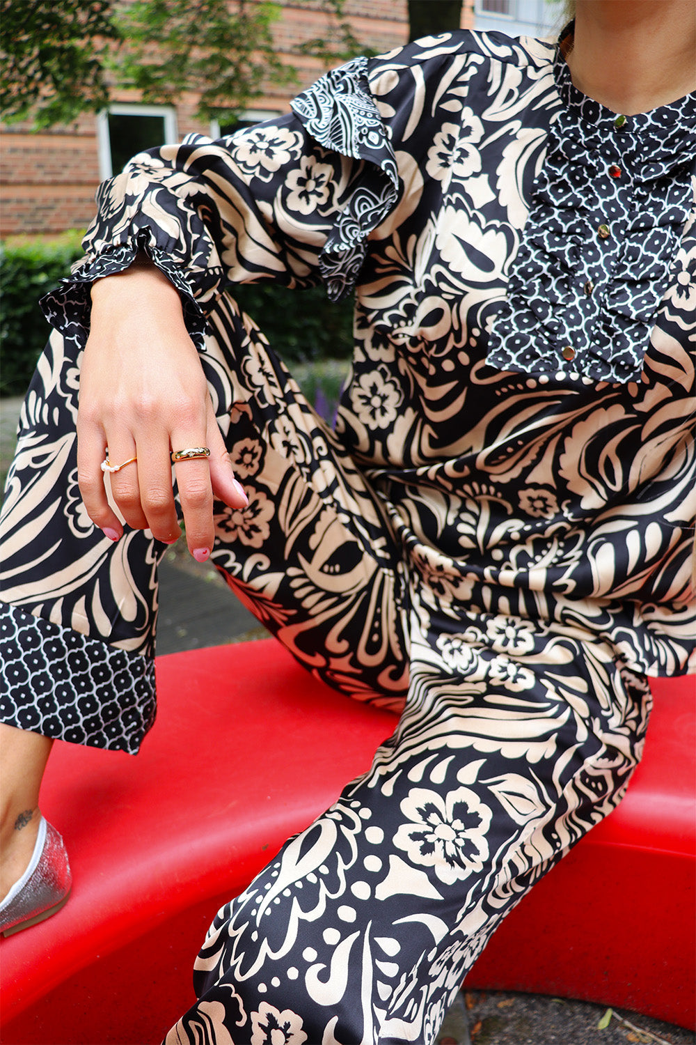 Tia Ls Frill Blouse | Black