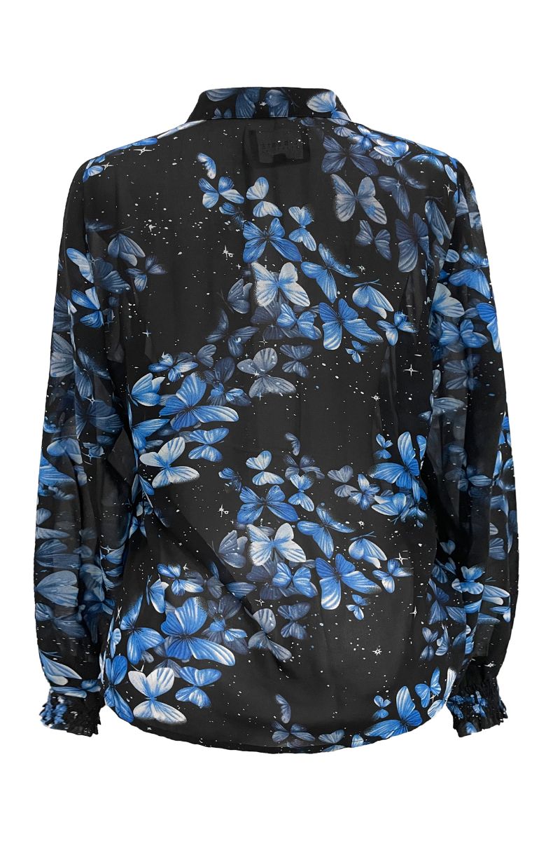 Mag Ls Vneck Shirt | Black Blue Butterfly