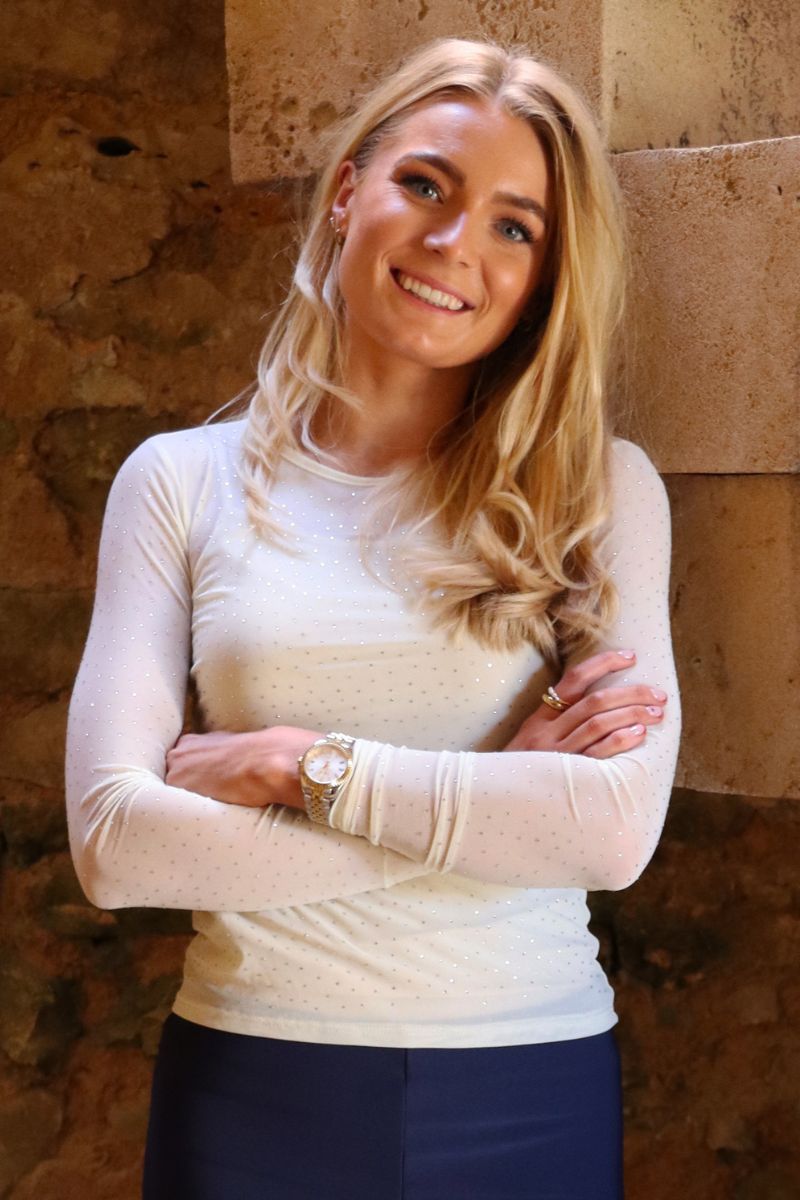 Mesh Ls Sparkle Tshirt | Creme Diamond Dot
