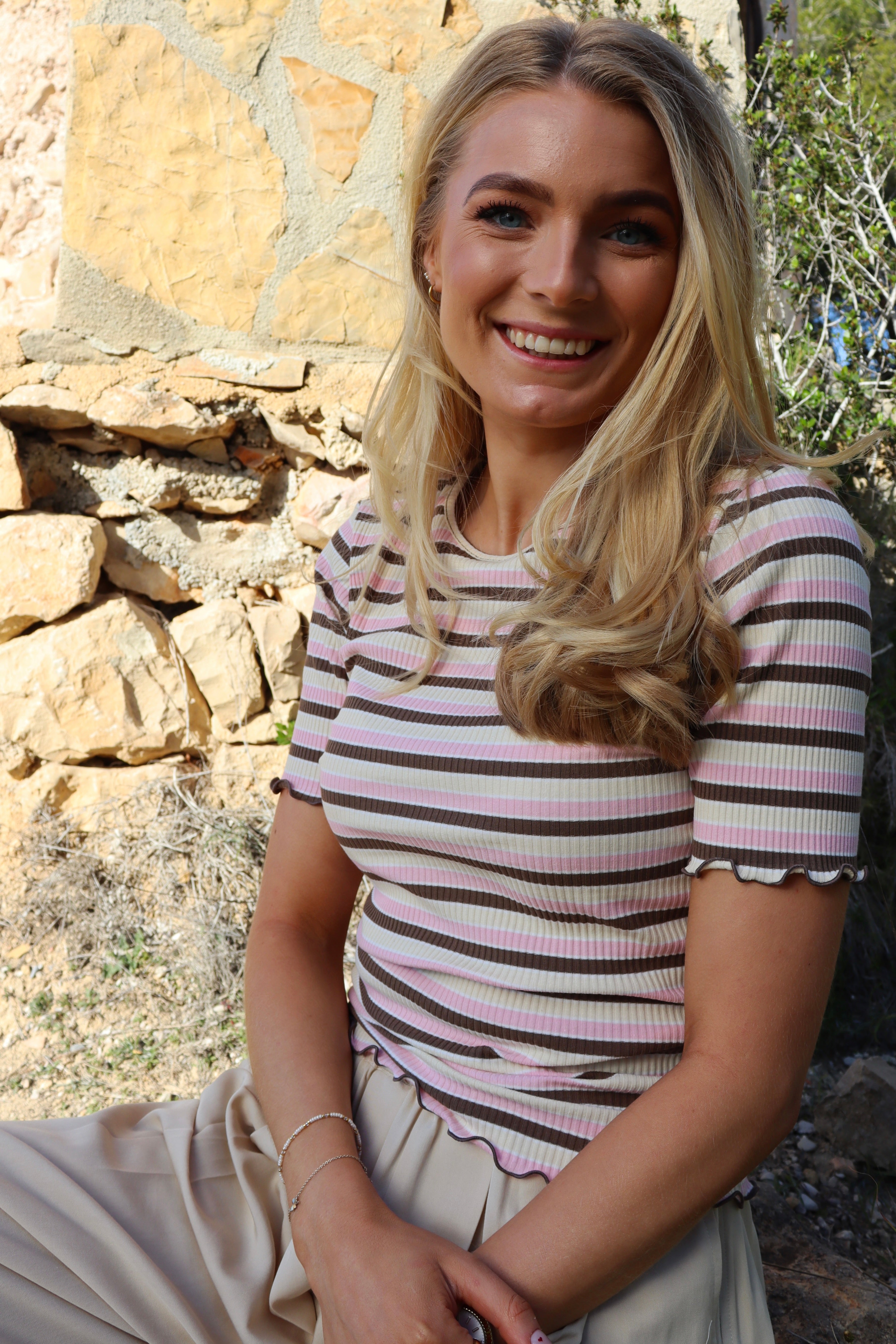 Natalia Ss Blouse | Brown Rose Creme Stripe