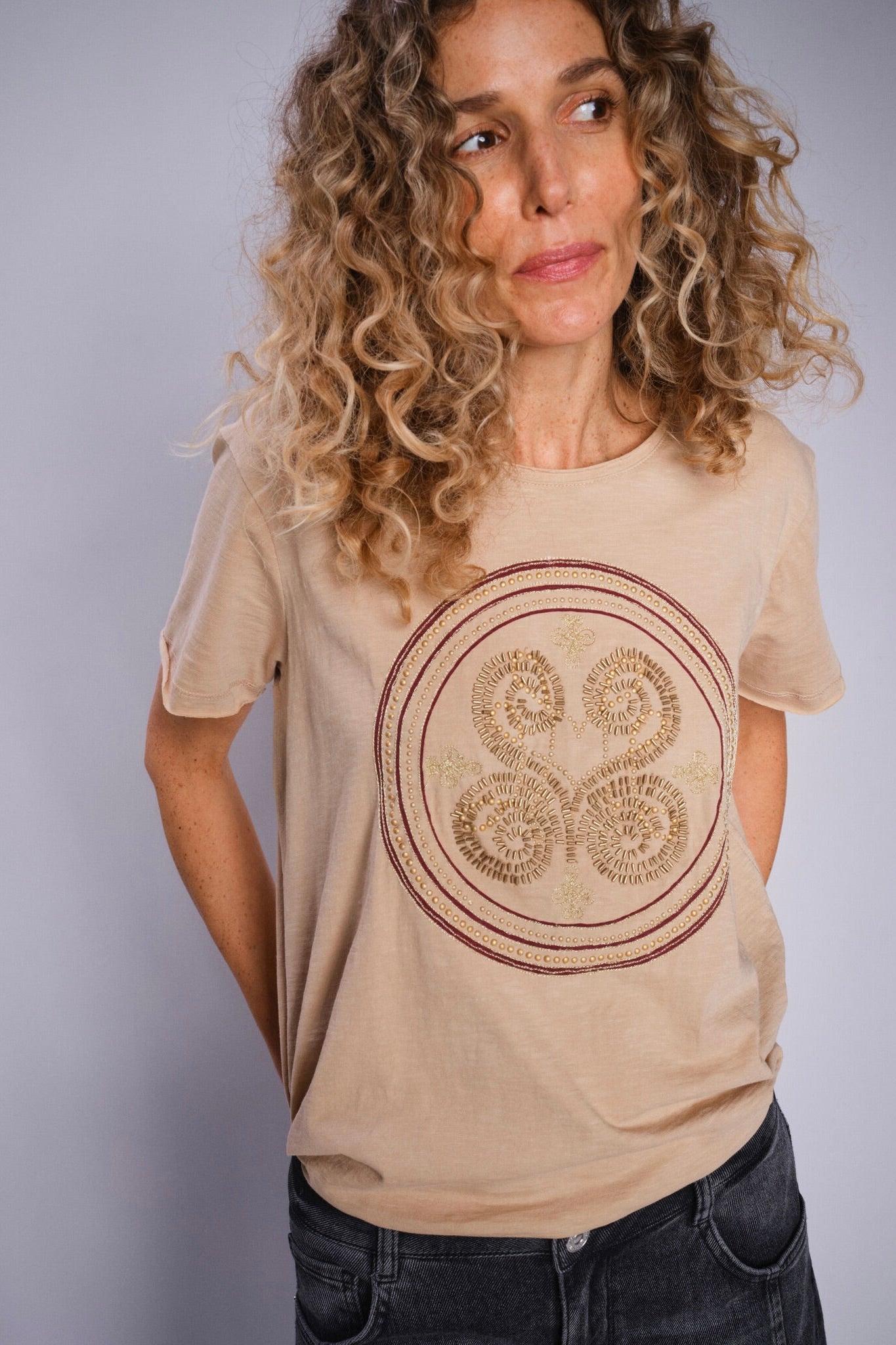 Zano O-Ss Embroidery Tee |  Sesame