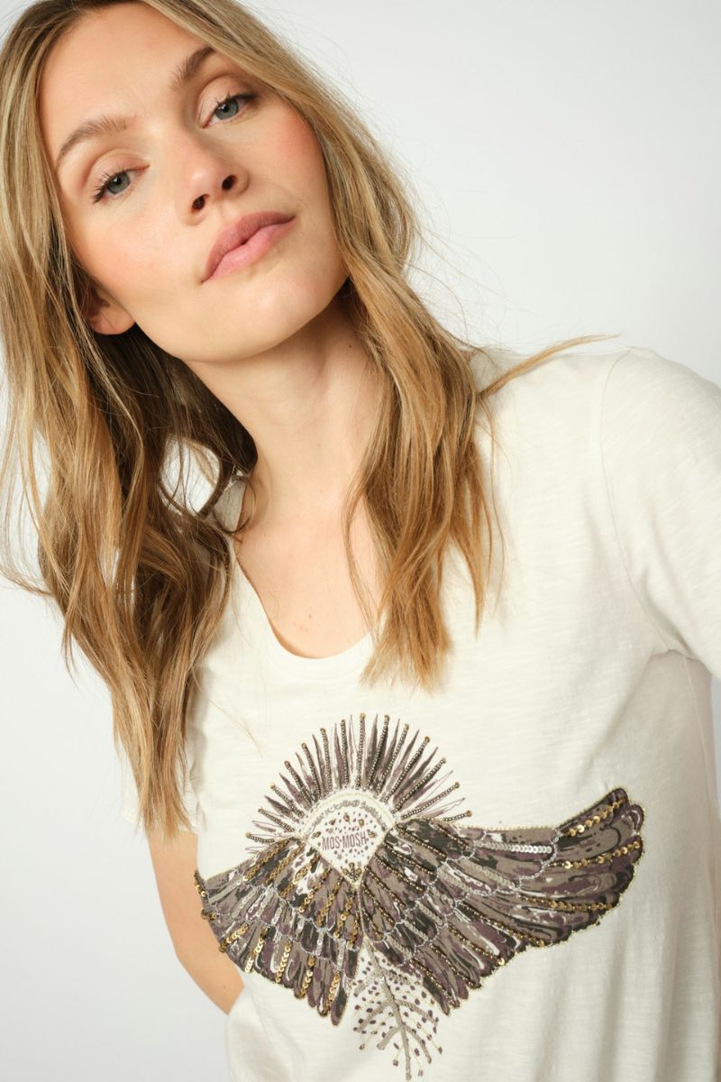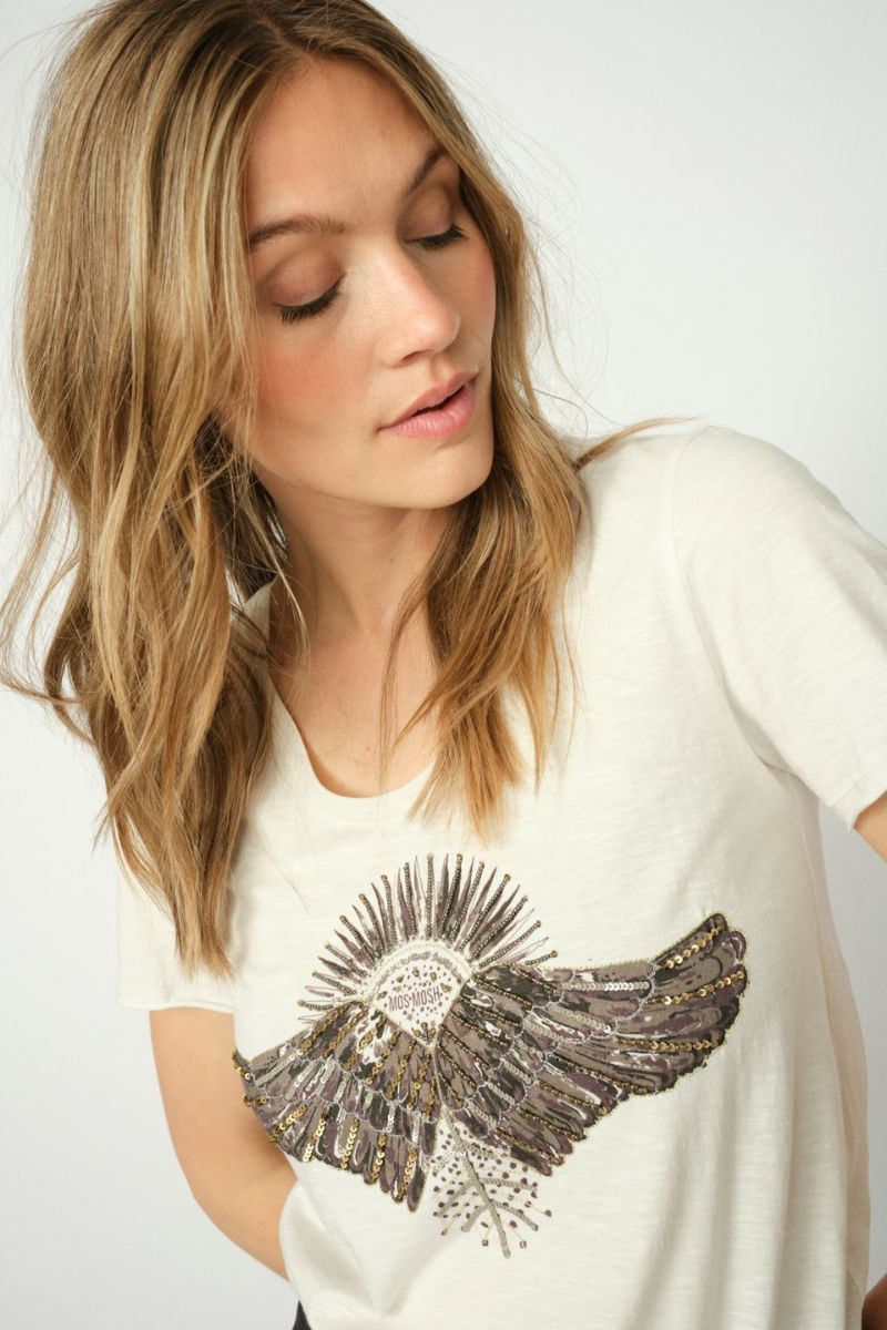 Danske Mos Mosh producerer de lækreste t-shirts, både helt basis t-shirts i hør, f.eks. den skønne Troy Tee t-shirt, der fås i mange forskellige, lækre farver og den populære Crave Tee, med tekst - nogle gange i tryk, andre gange i pailetter, hvor der står PASSION LOVE HEART. Du finder hele udvalget af lækre t-shirts fra Mos Mosh her. Hvis du ønsker at se hele udvalget fra Mos Mosh, kan du klikke her