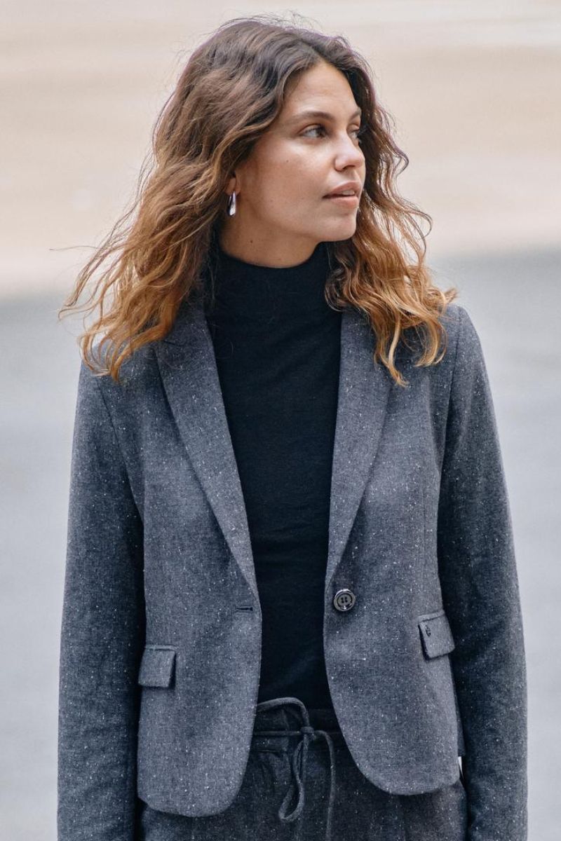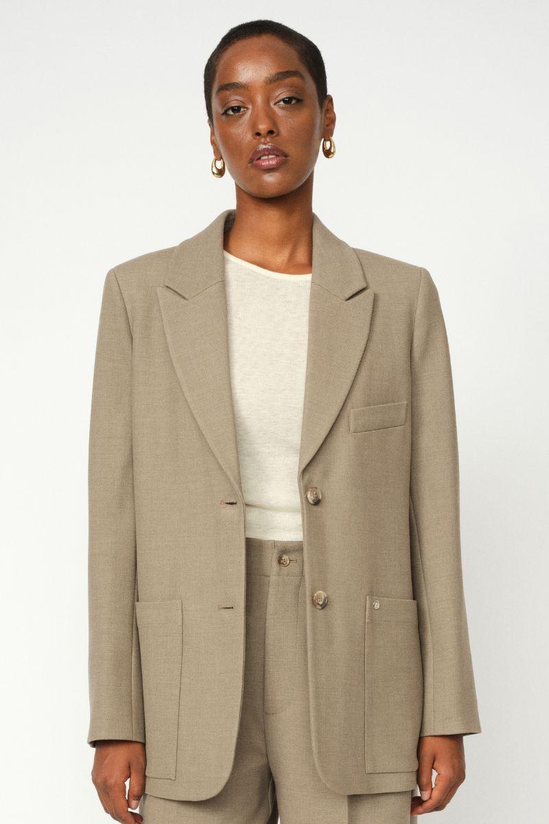 - Skræddersyet elegance: Mos Mosh blazere er designet til at skabe et sofistikeret look, der kombinerer det skarpe snit fra herretøj med feminine detaljer. Resultatet er et stykke tøj, der udstråler professionalisme og stil.