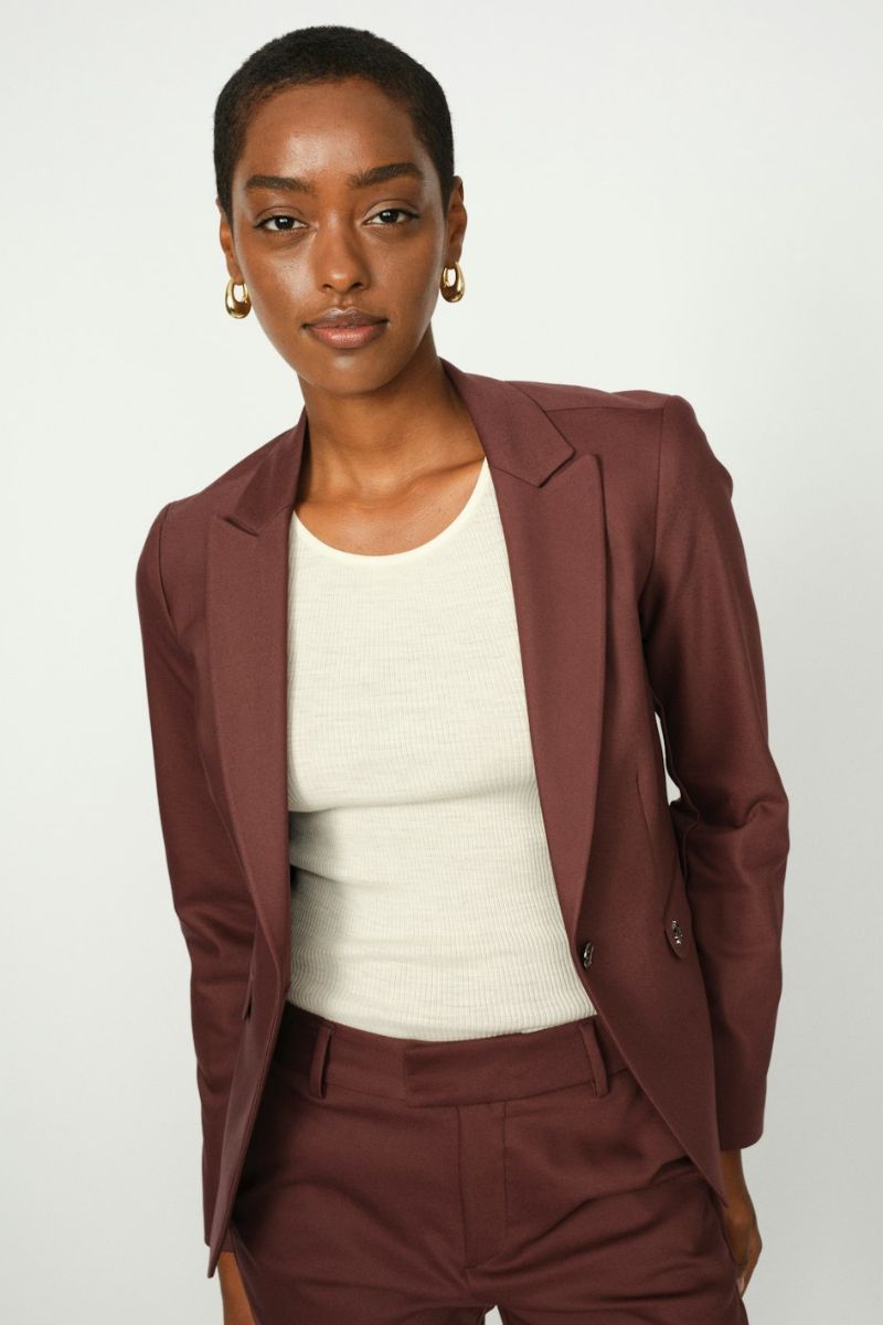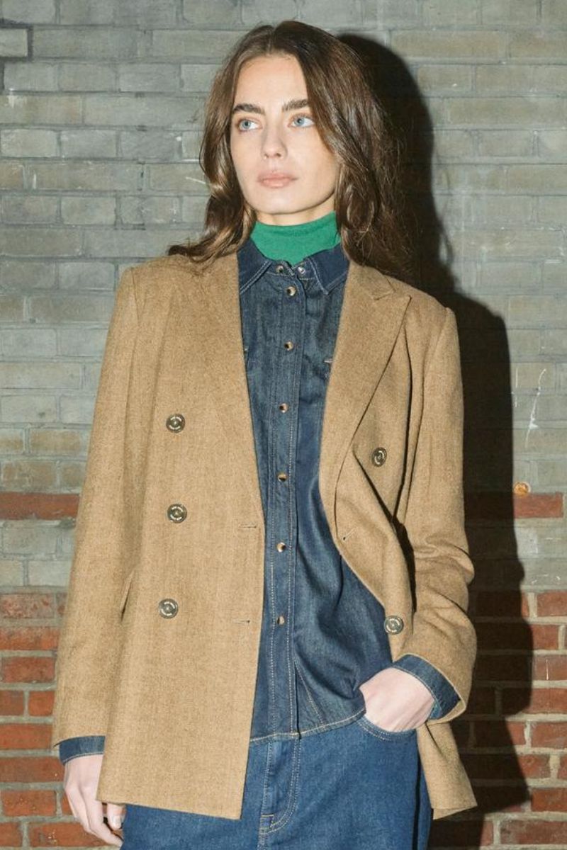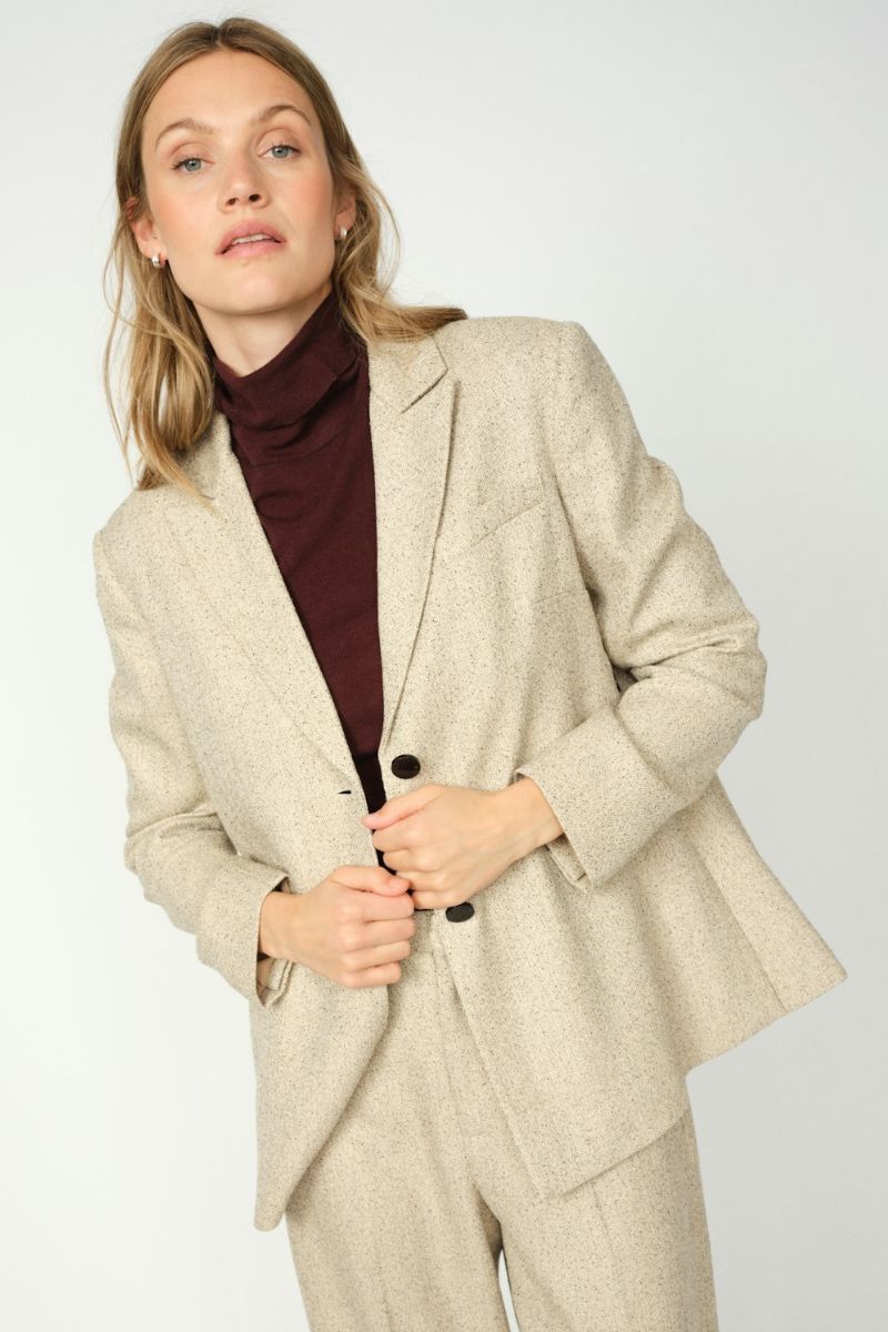 - Skræddersyet elegance: Mos Mosh blazere er designet til at skabe et sofistikeret look, der kombinerer det skarpe snit fra herretøj med feminine detaljer. Resultatet er et stykke tøj, der udstråler professionalisme og stil.