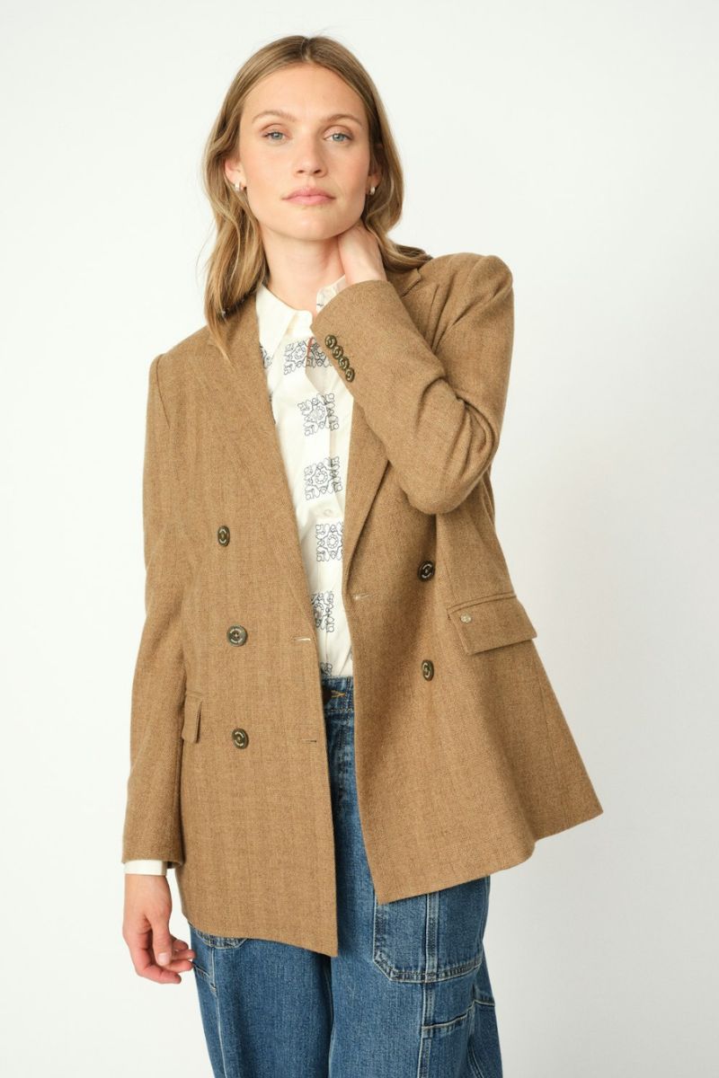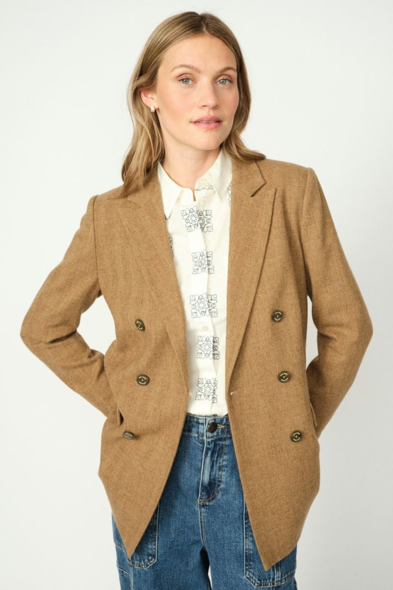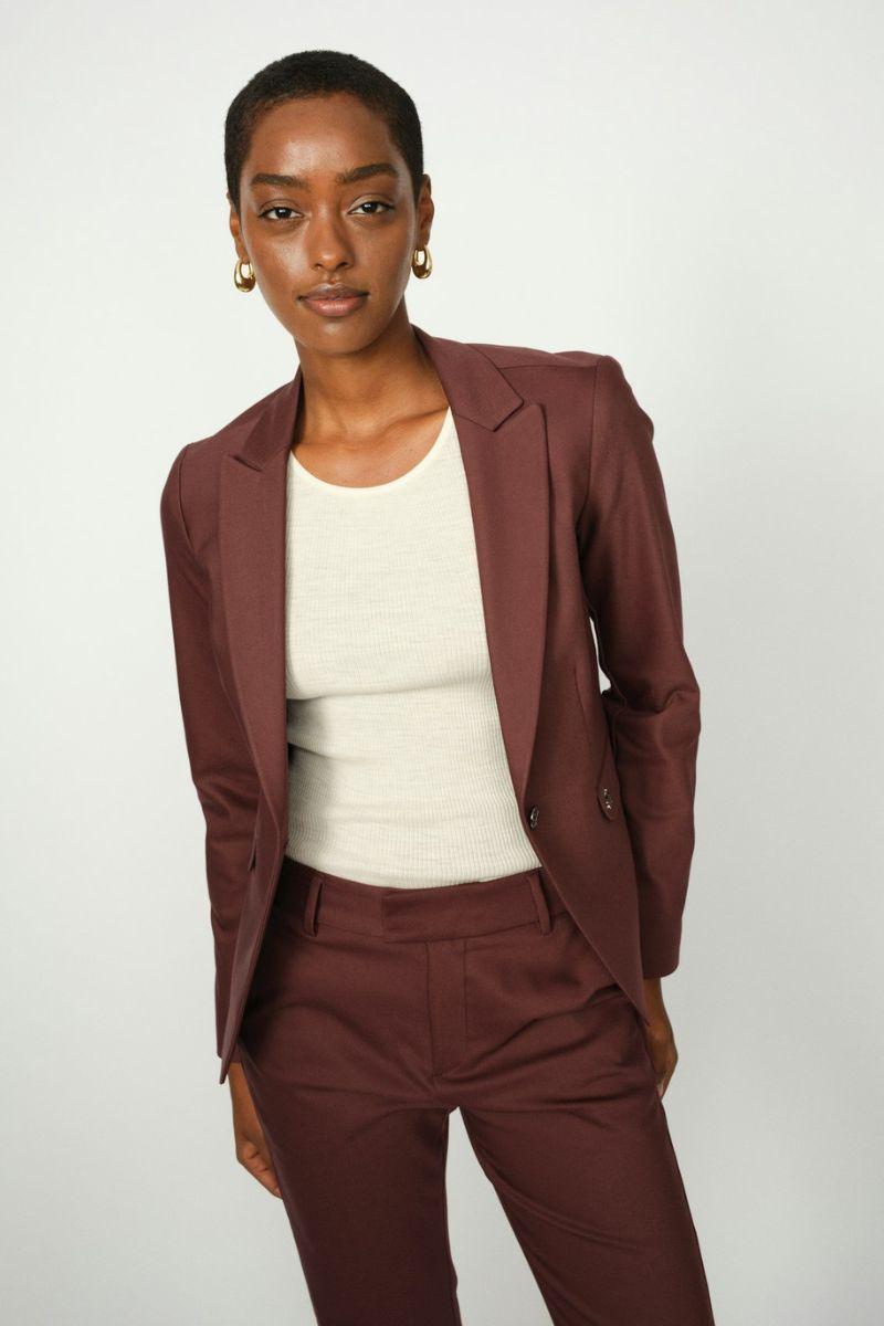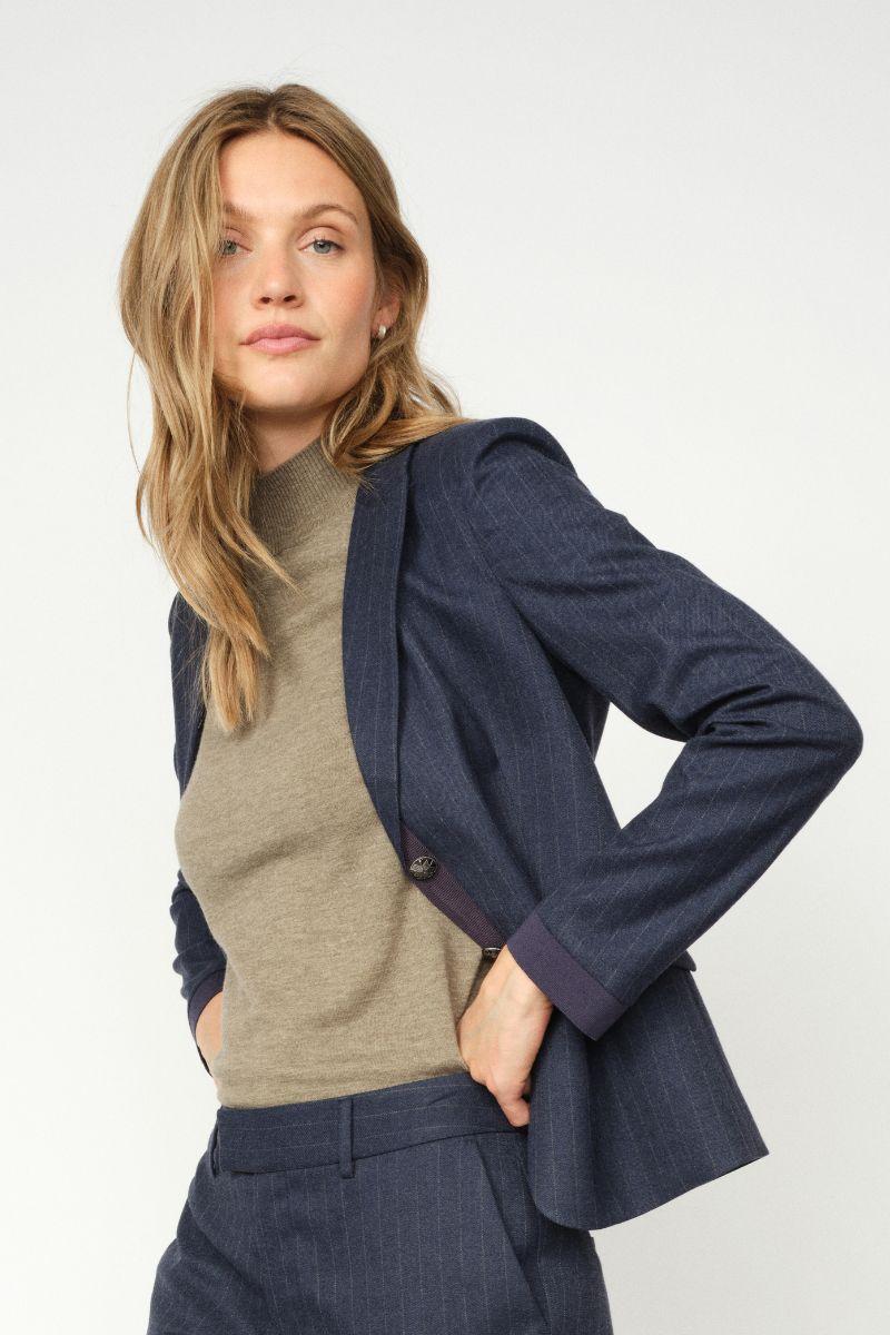 - Skræddersyet elegance: Mos Mosh blazere er designet til at skabe et sofistikeret look, der kombinerer det skarpe snit fra herretøj med feminine detaljer. Resultatet er et stykke tøj, der udstråler professionalisme og stil.