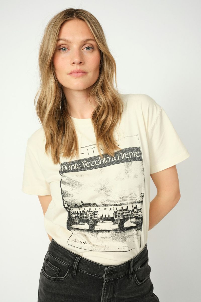 T-shirts er bare ét af de mange områder, som Mos Mosh har overtaget efter de indtog førstepladsen på jeans markedet, og det er der god grund til. Mos Mosh producerer de lækreste t-shirts, både helt basis t-shirts, som f.eks.; den skønne hør t-shirt, Troy Tee, som fås i mange forskellige, lækre farver; deres klassiske, lækre bomulds t-shirt, Arden, som fås i et udvalg af dæmpede farver, men altid er let genkendelig på den fine v-udskæring i halsen samt korte ærmer og feminine pasform; samt den populære Crave Tee med teksten “PASSION LOVE HEART” - nogle gange i tryk, andre gange i palietter eller andet materiale for bedst at matche den sæson, som de udkommer i.