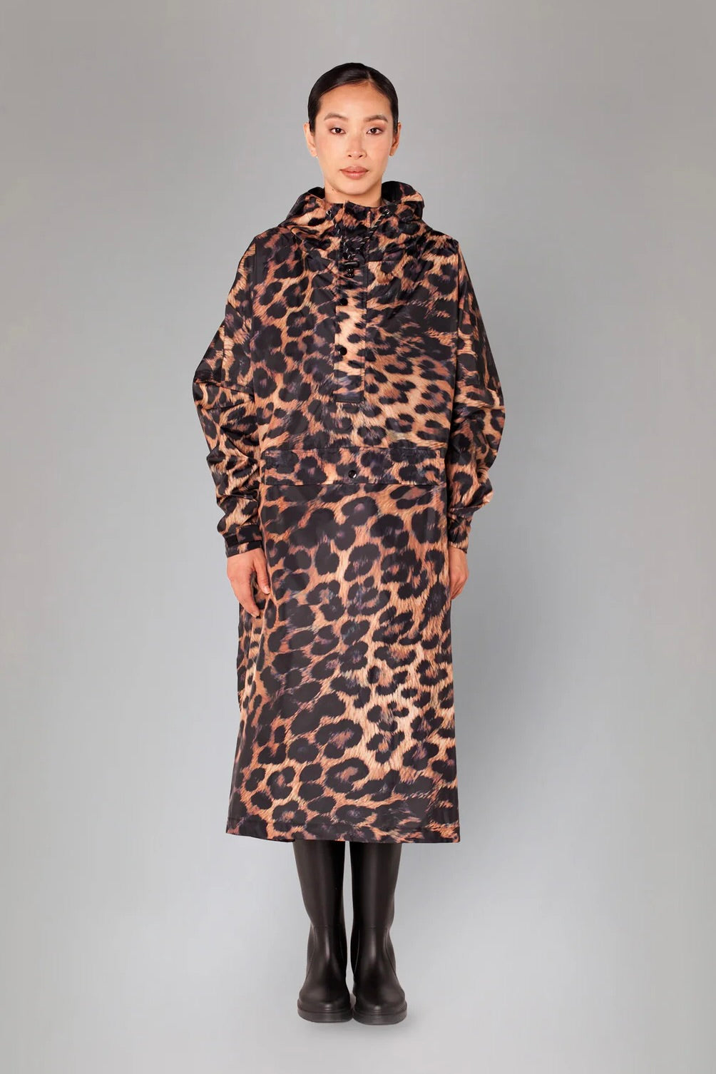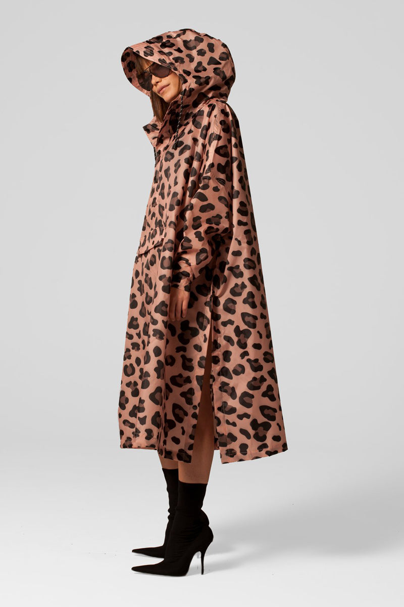 Denne regnponcho i klassisk sort har et spændende slangemønster, der tilføjer et råt og trendy twist til din garderobe. Den sorte farve gør den alsidig og nem at kombinere med mange andre styles. -