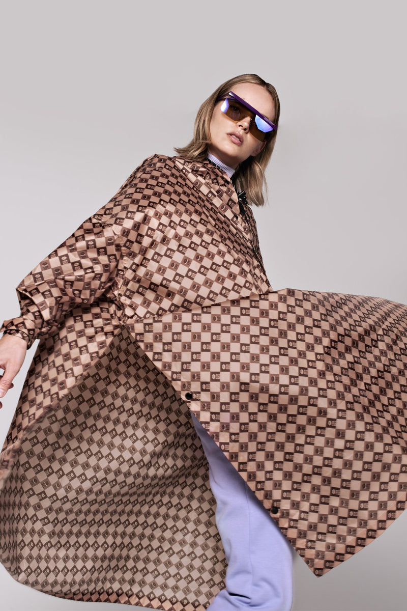 Den brune Damier poncho er et stilfuldt valg med sit klassiske ternede mønster. Den tidløse farvekombination af brun og lysebrun, gør denne poncho ideel til den modebevidste kvinde, der ønsker et sofistikeret look.