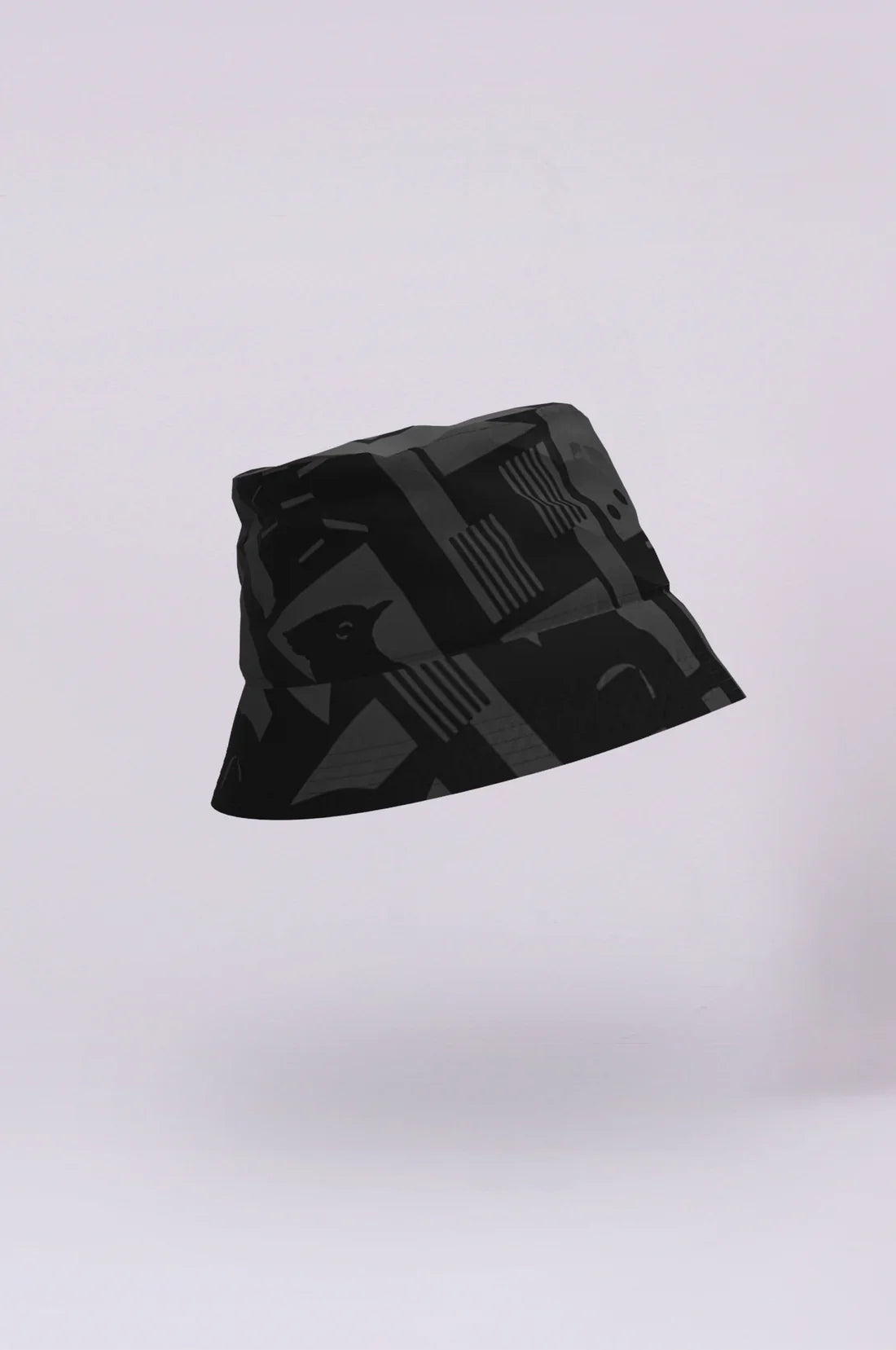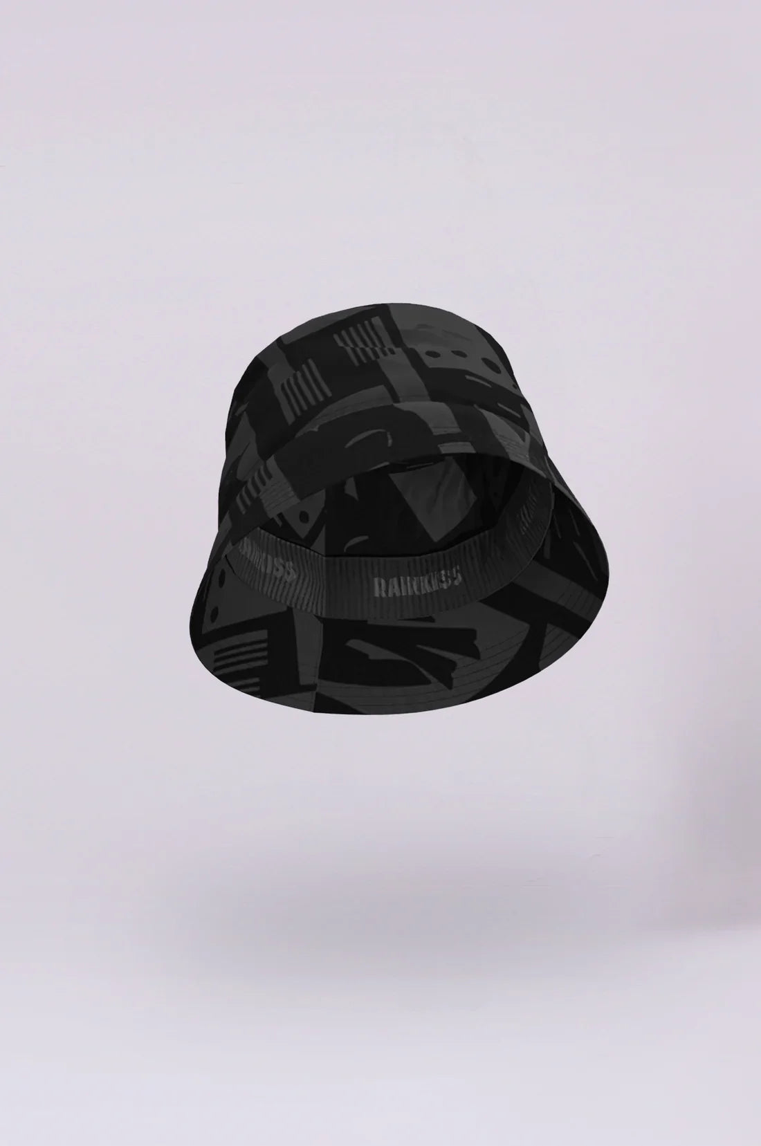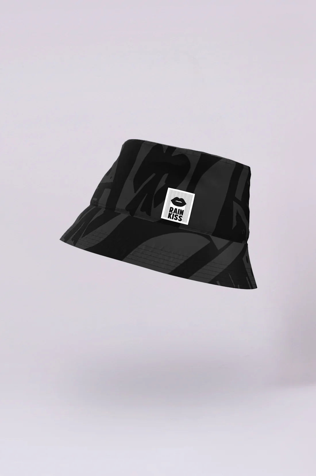 En sort bøllehat med et unikt camo-mønster. Den er både stilfuld og praktisk, perfekt til at holde regnen væk og samtidig give dit outfit et moderne touch. -