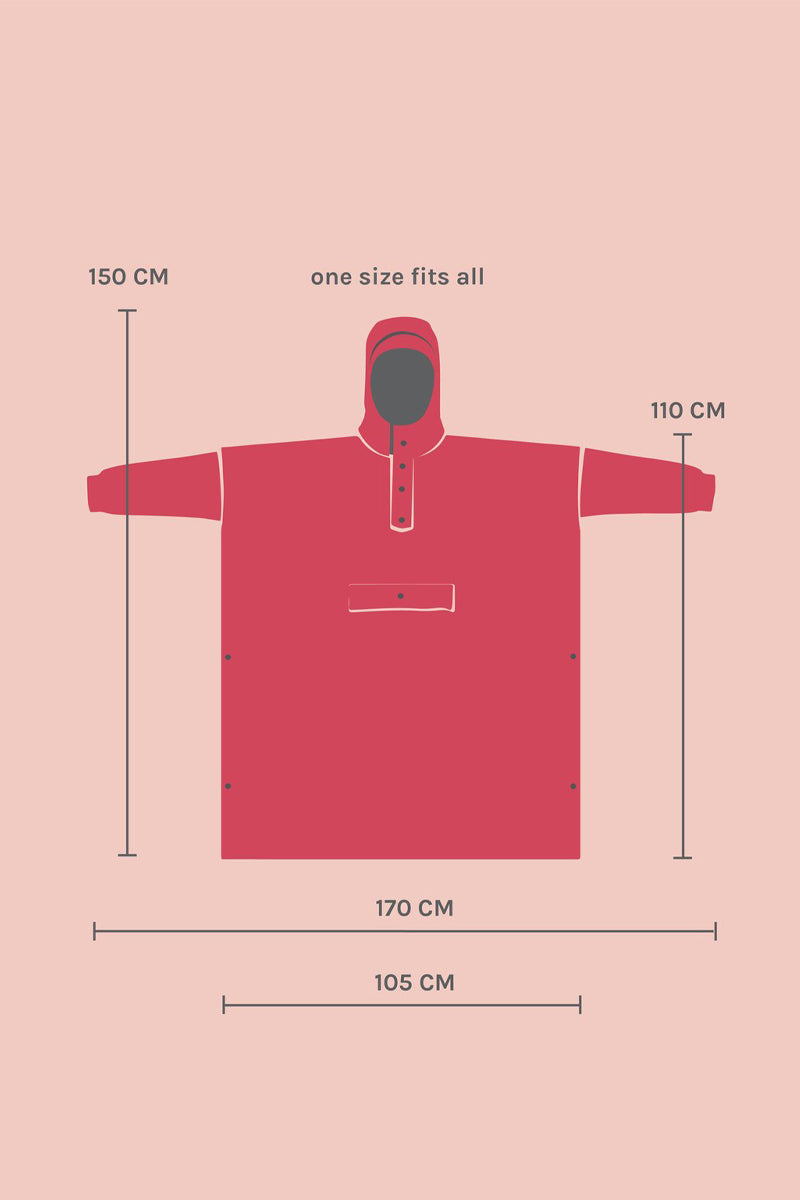Et af de særlige træk ved Rainkiss regnponchoer er deres "one-size-fits-all" design. Dette gør dem ekstremt alsidige, da de kan passe til alle kropstyper og størrelser. Det betyder, at du ikke behøver at bekymre dig om at vælge den rigtige størrelse, når du køber en poncho fra Rainkiss. Derudover mindsker dette design behovet for returneringer, hvilket igen også reducerer miljøpåvirkningen ved at mindske transport og potentielt affald.