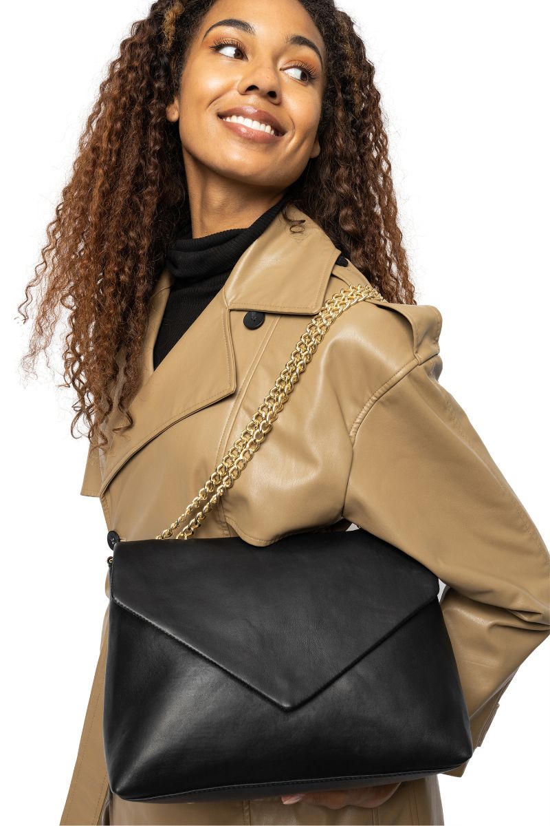 - Genesis 6092 (Sort og Walnut): Genesis er en clutch, der udstråler enkelthed og elegance. Den er ideel til de dage, hvor du kun har brug for de mest nødvendige ting og ønsker en taske, der ikke fylder for meget.