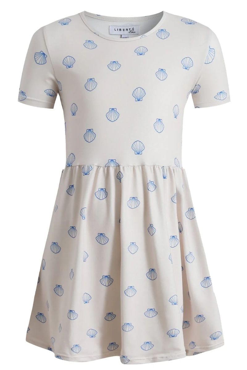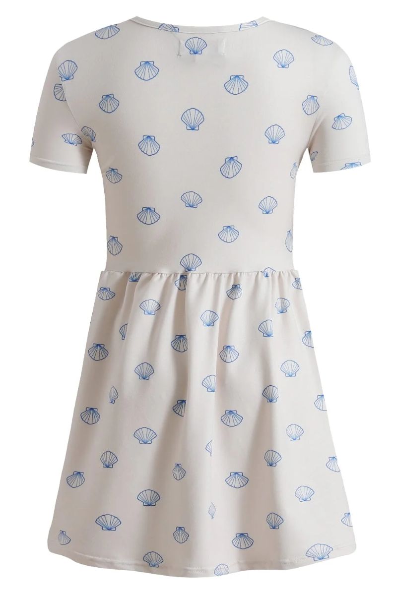 Alma Ss Babydoll Dress (Kids) | Ivory Cobolt Shell