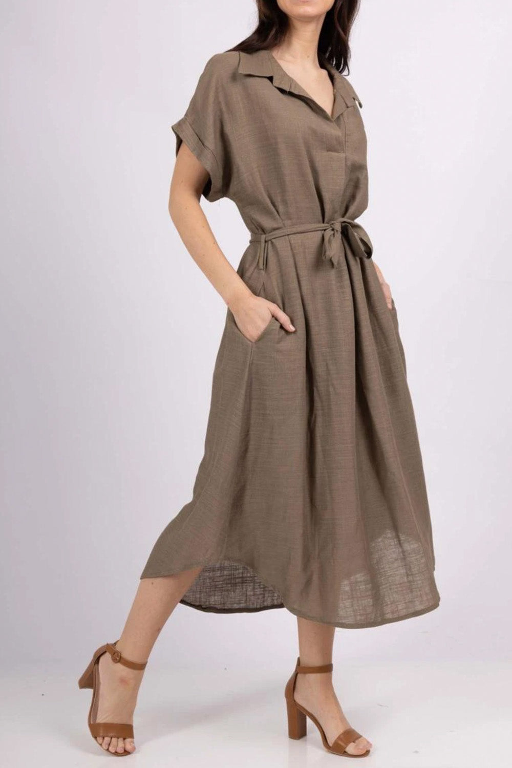 Catherine Solid Dress | Kaki