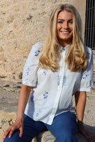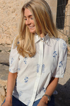 Flora Ss Blouse | White Blue Flower