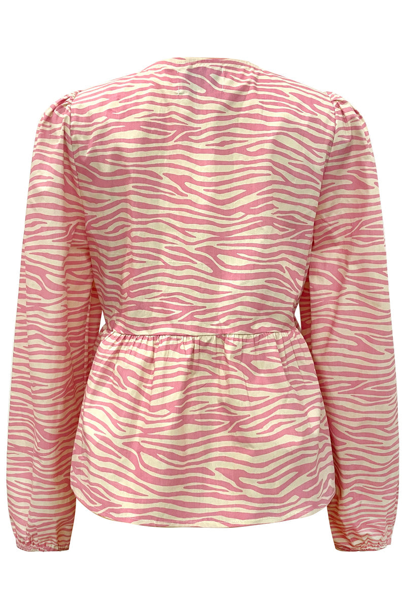 Manni Ls V Neck Blouse | Bubblegum Zebra