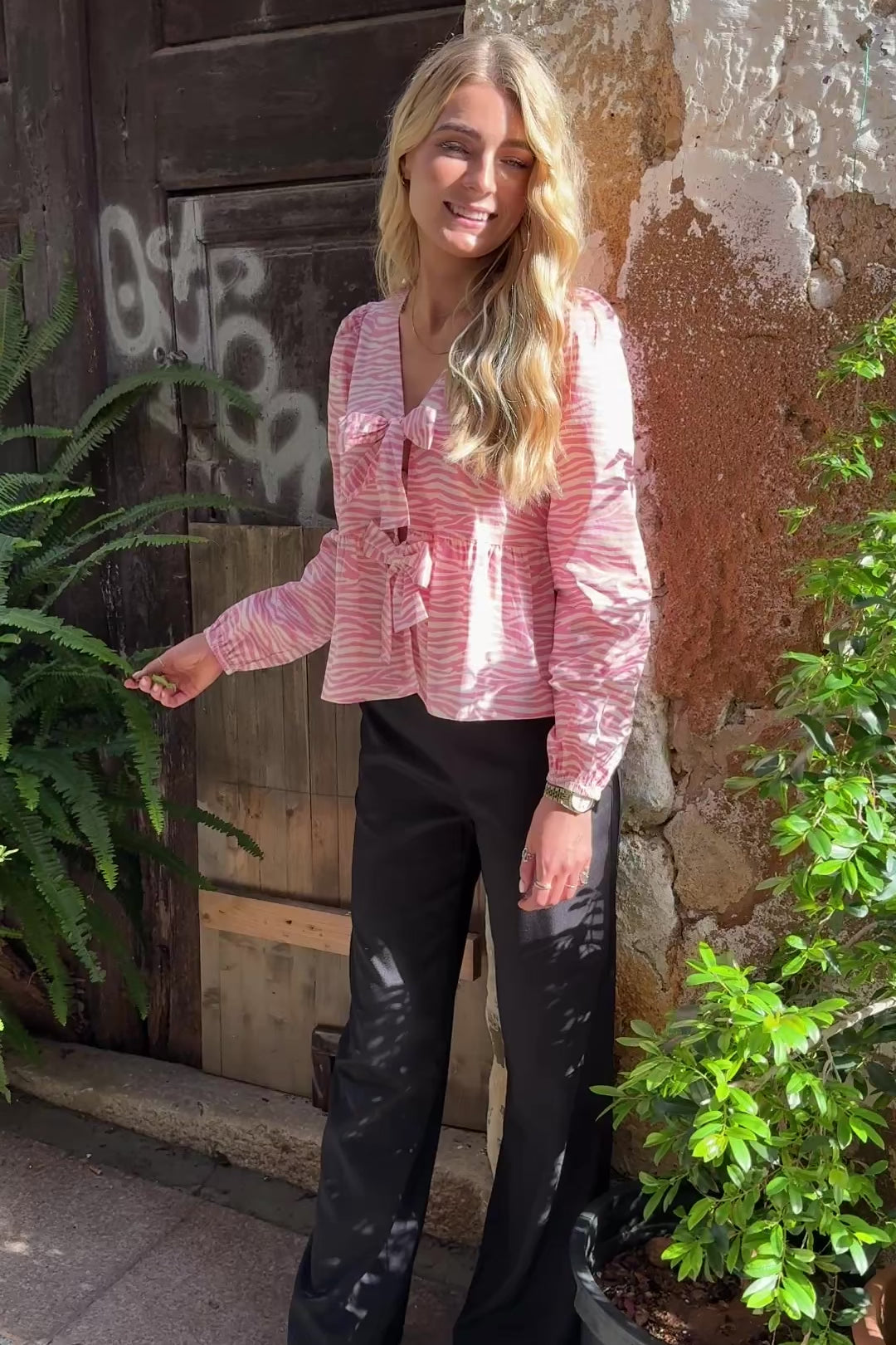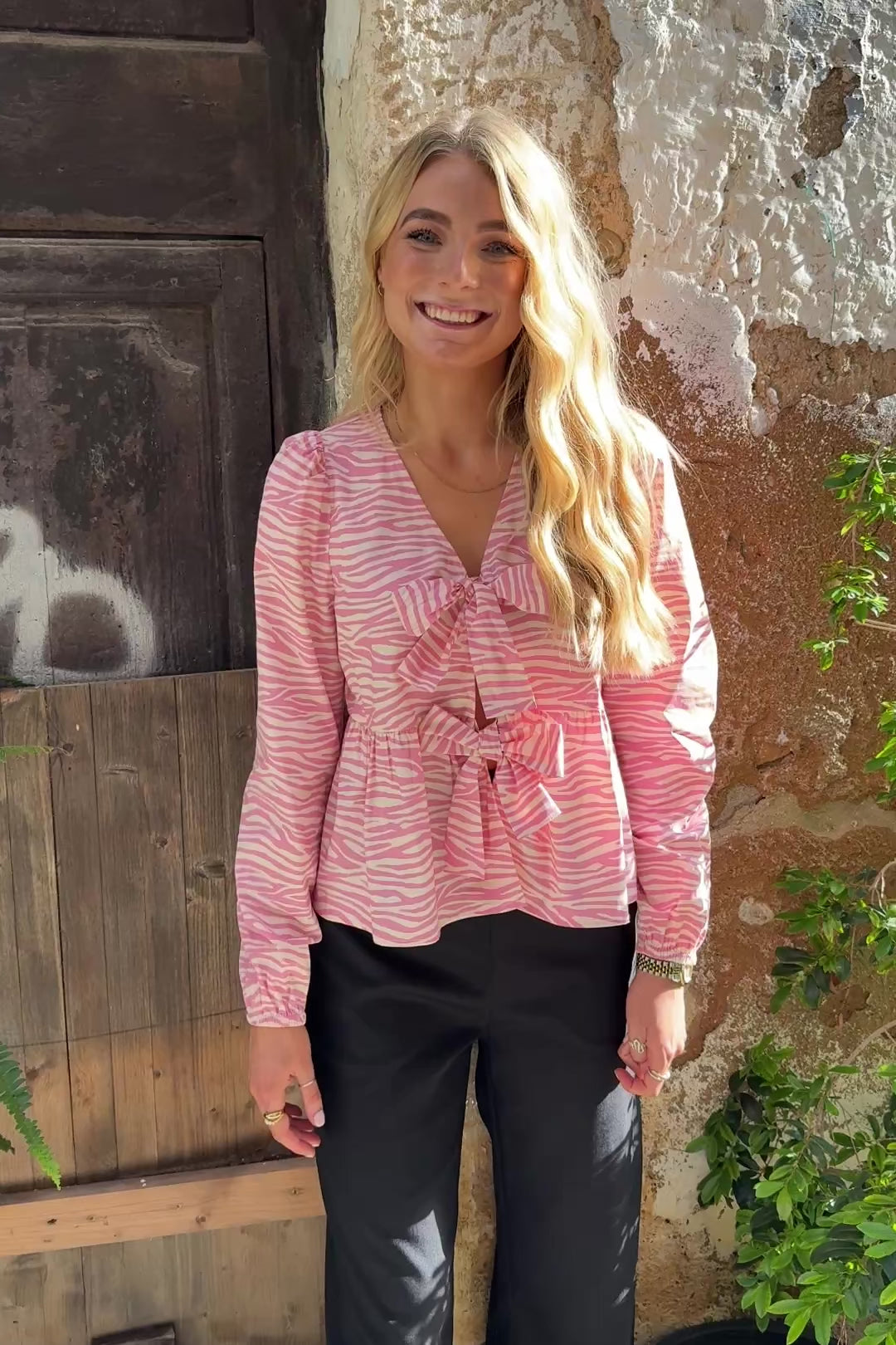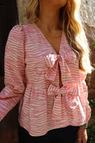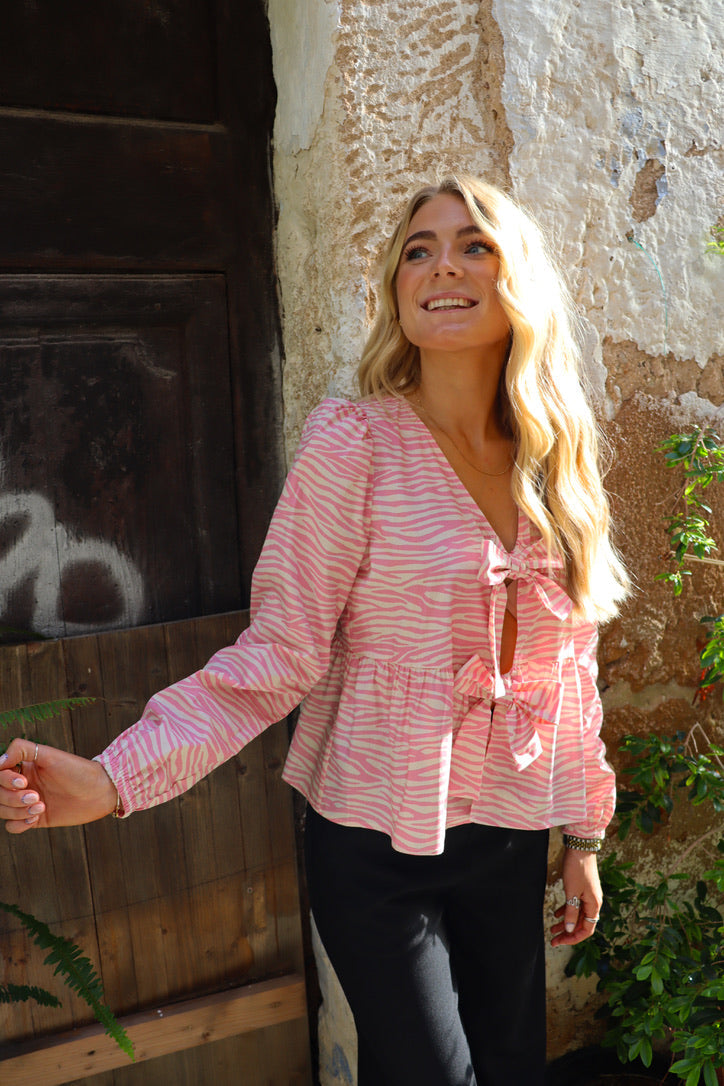 Manni Ls V Neck Blouse | Bubblegum Zebra
