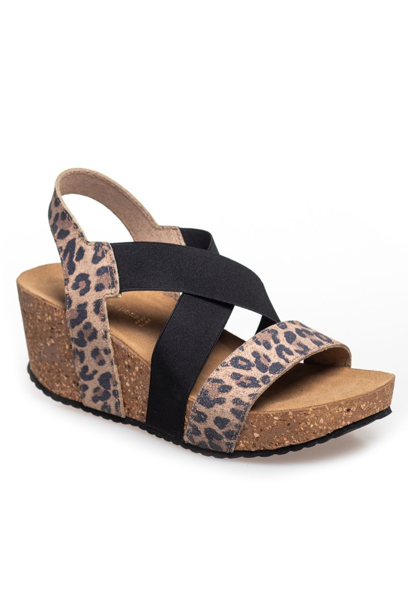 Stacia Sandal Wedge | Brownleopardblackelastic