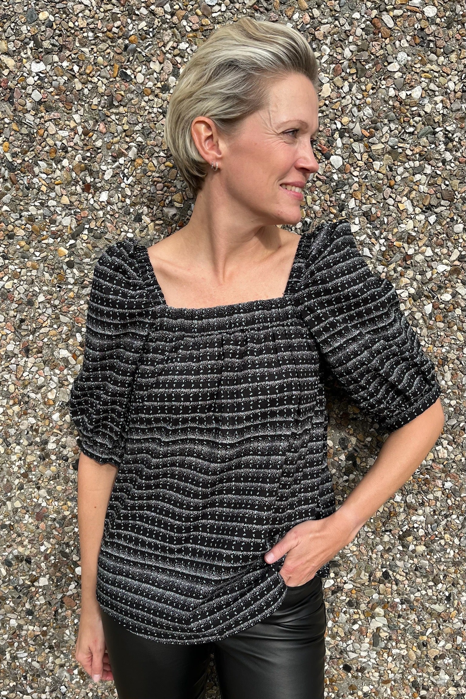 Tiia-Blouse | Black Offwhite