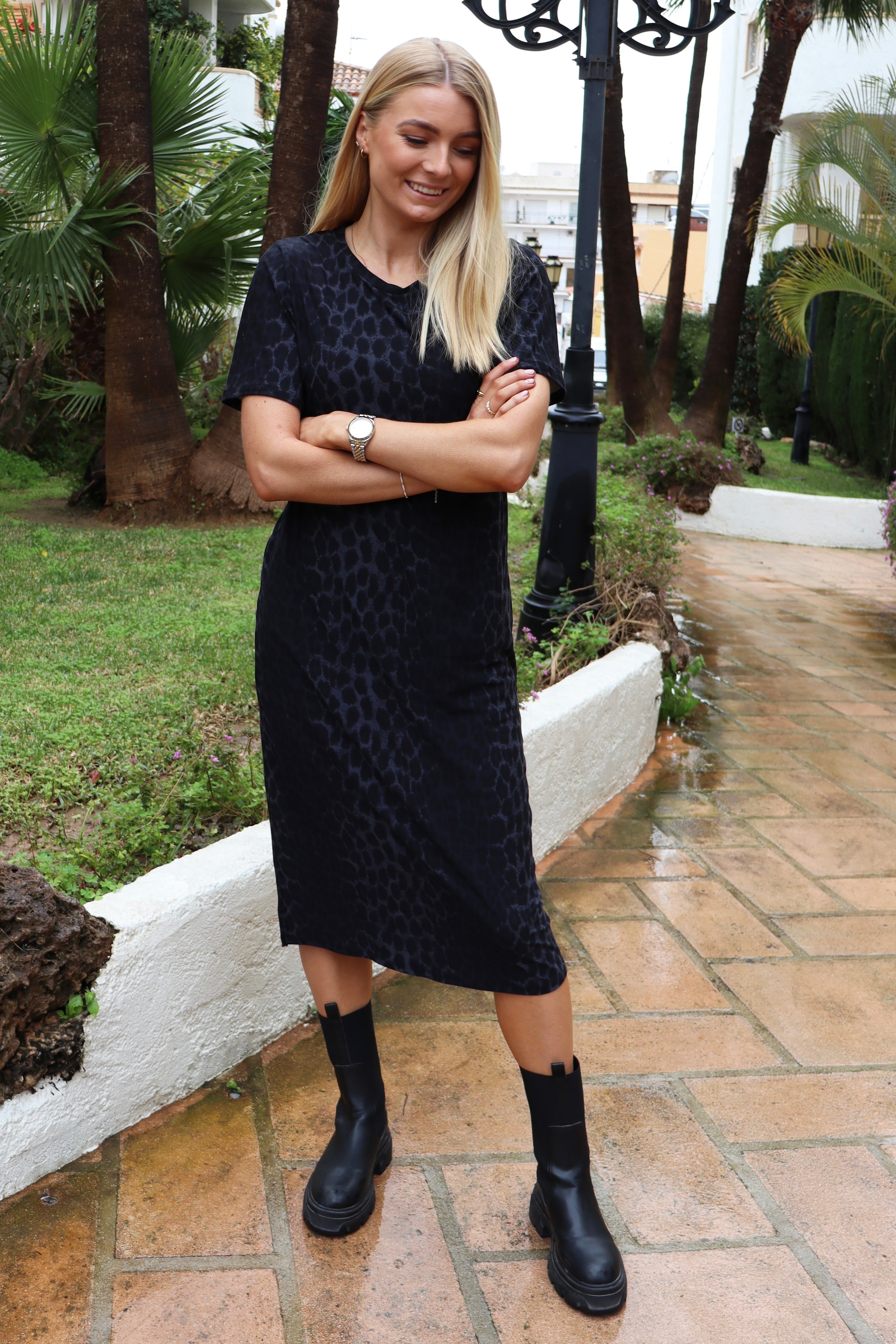 Alma Tshirt Dress | Dark Grey Leo