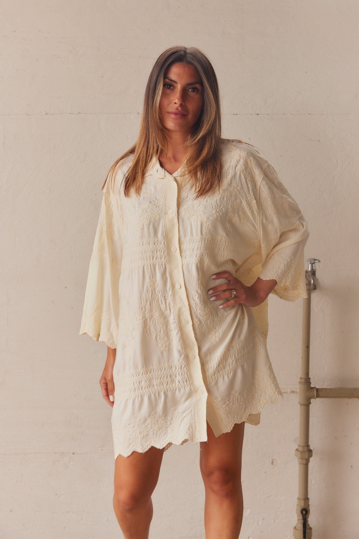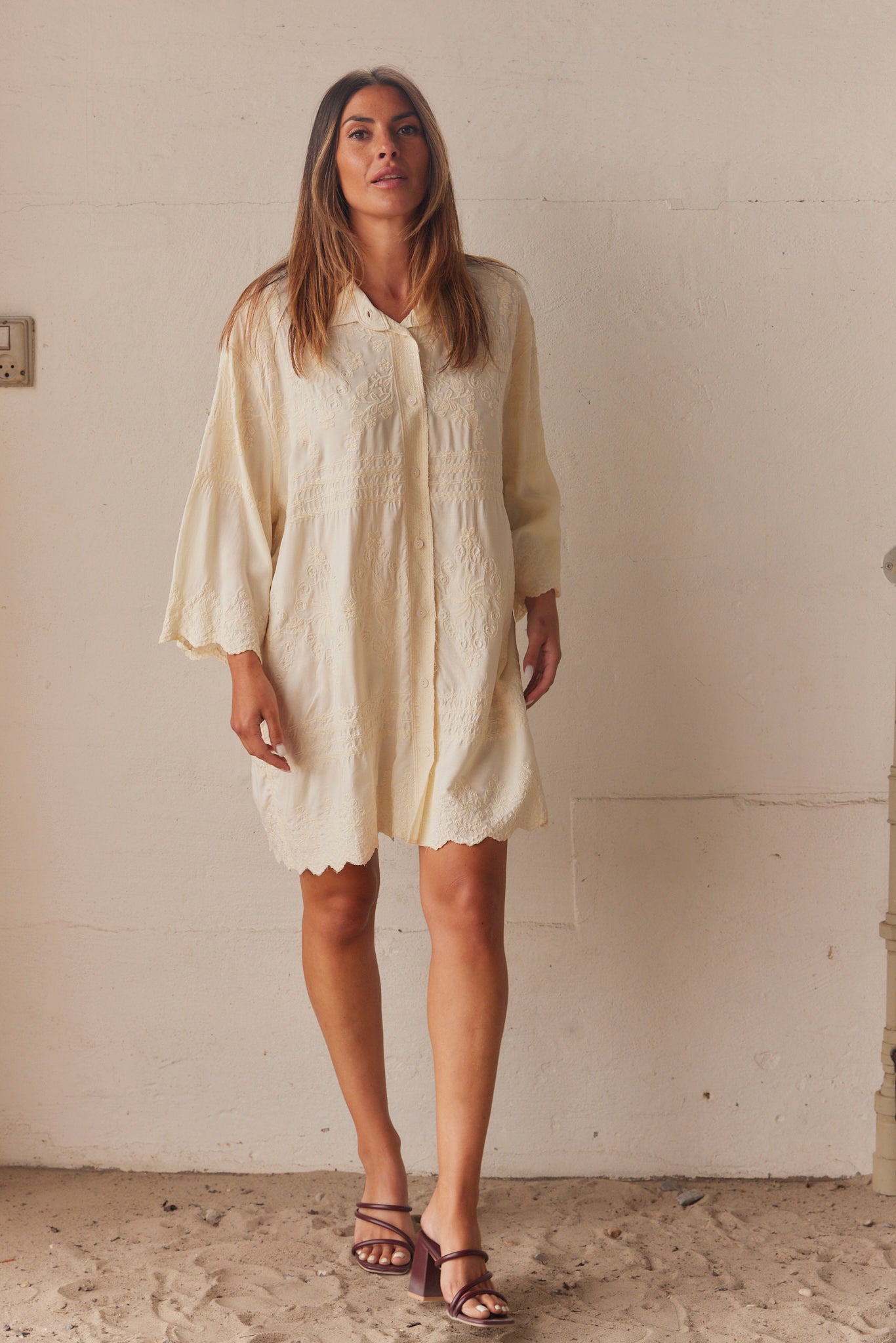 Embla Embroidered Shirt Dress | Beige